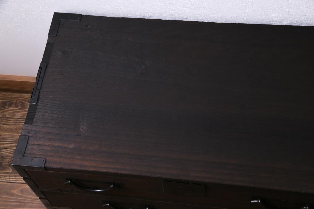 ラフジュ工房> 和箪笥> 刀箪笥 > アンティーク家具 和製アンティーク 総桐材 浮造り仕上げ 渋さが漂う刀箪笥ローボード・3段(チェスト、和タンス、桐箪笥、桐たんす)
