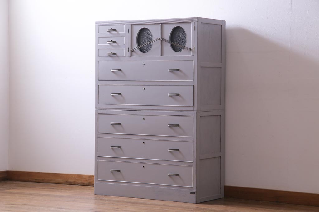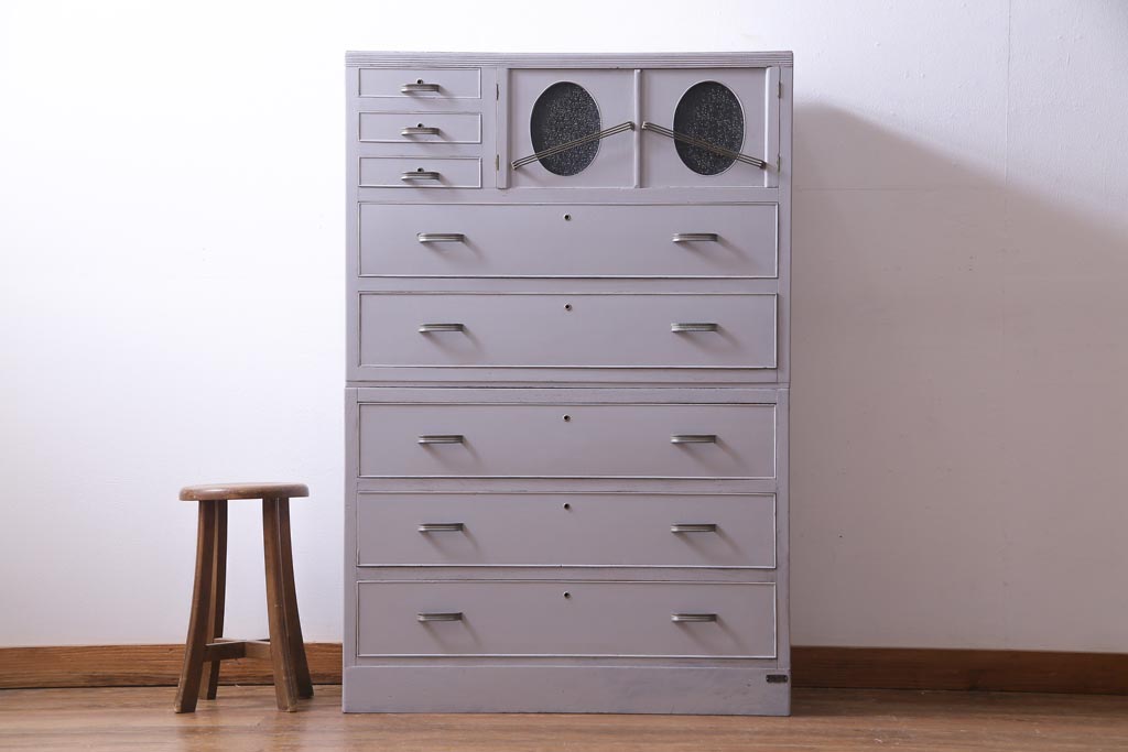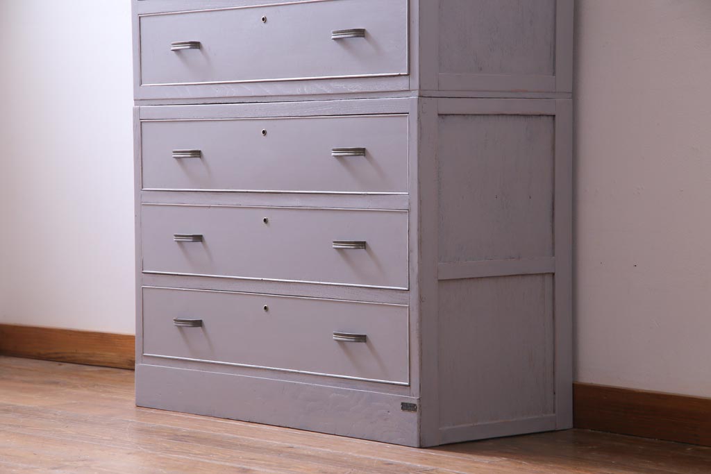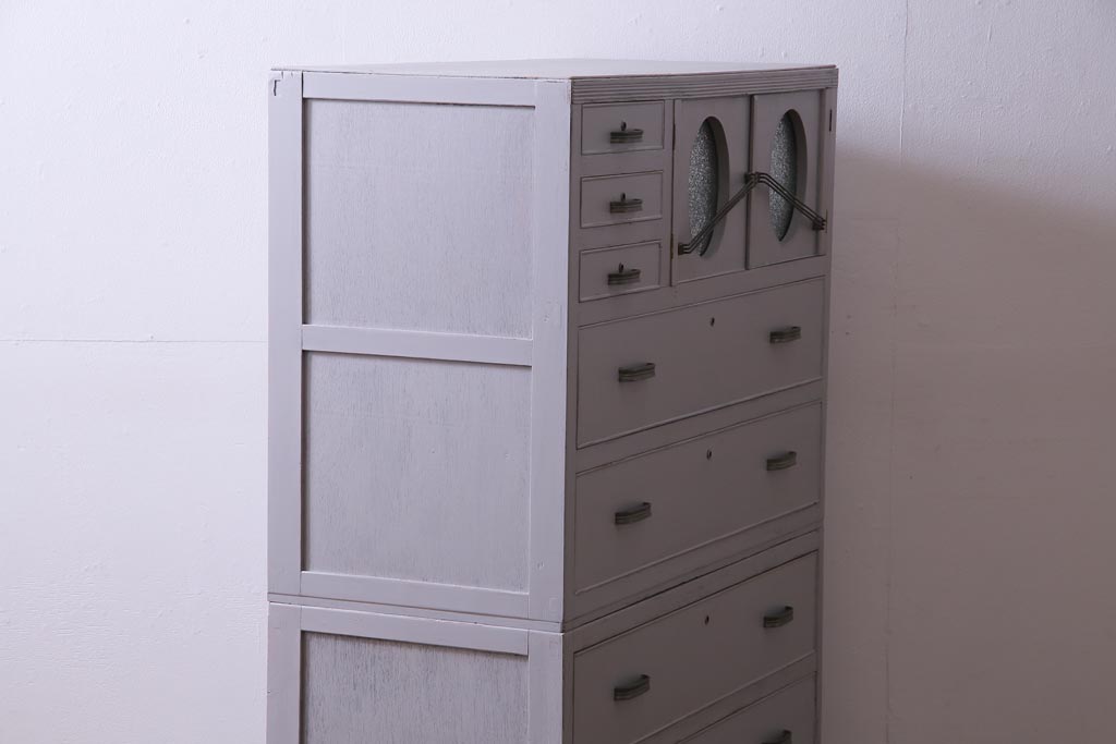 和製アンティーク ペイント家具 レトロなデザインとシャビーな雰囲気がお洒落な重ねチェスト(引き出し、収納たんす、整理箪笥)(R-034541)