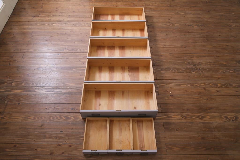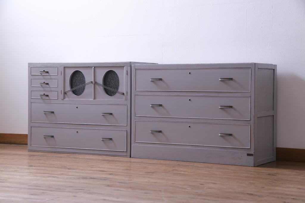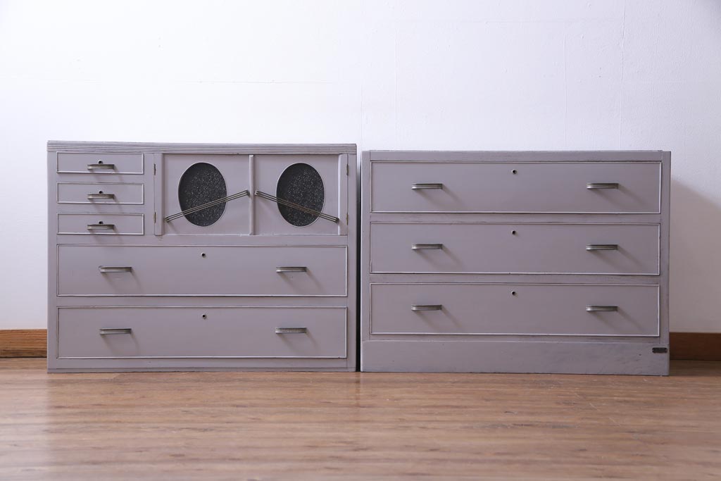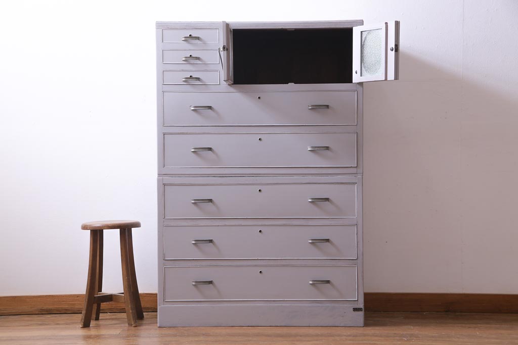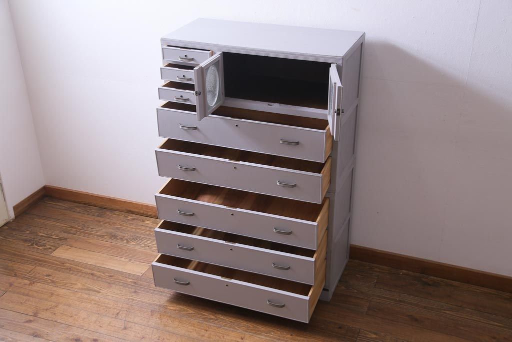 和製アンティーク ペイント家具 レトロなデザインとシャビーな雰囲気がお洒落な重ねチェスト(引き出し、収納たんす、整理箪笥)(R-034541)