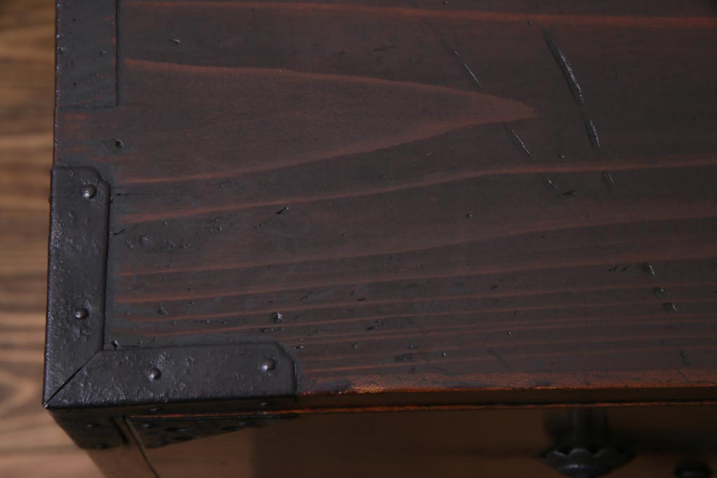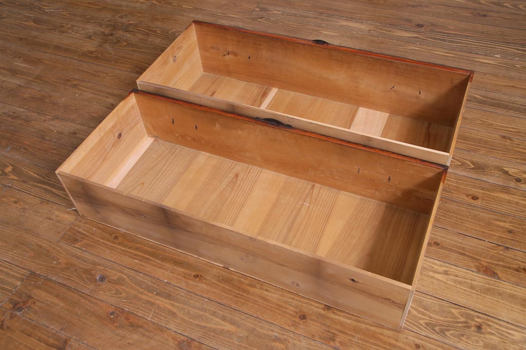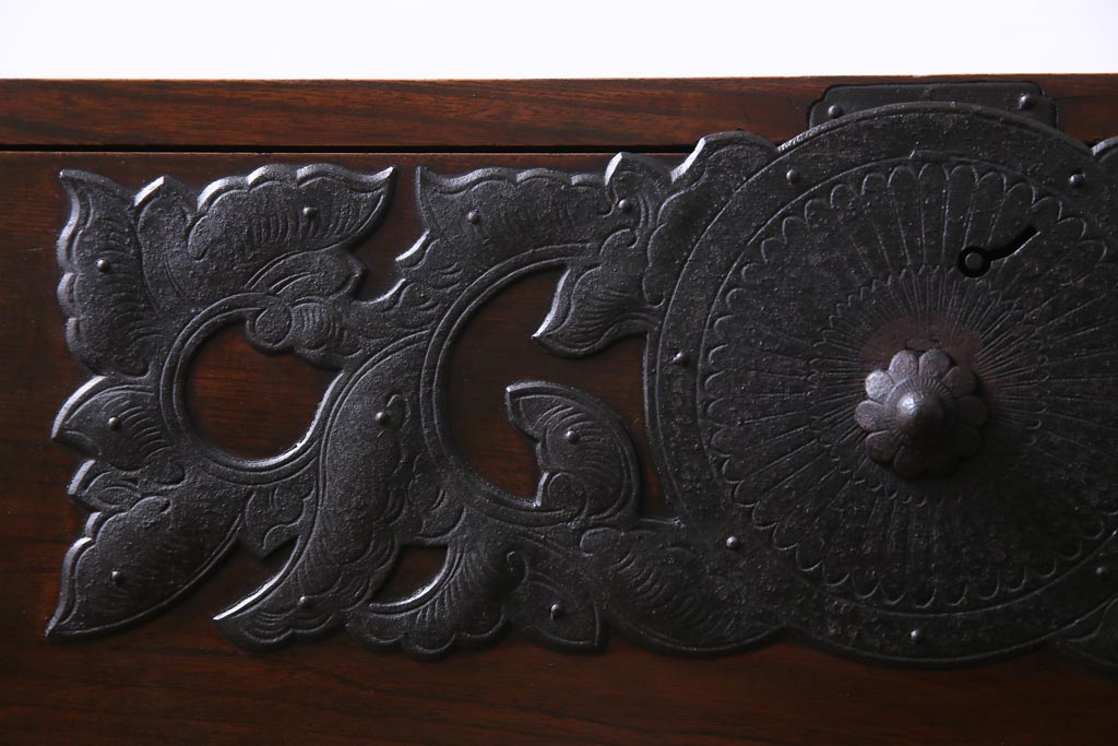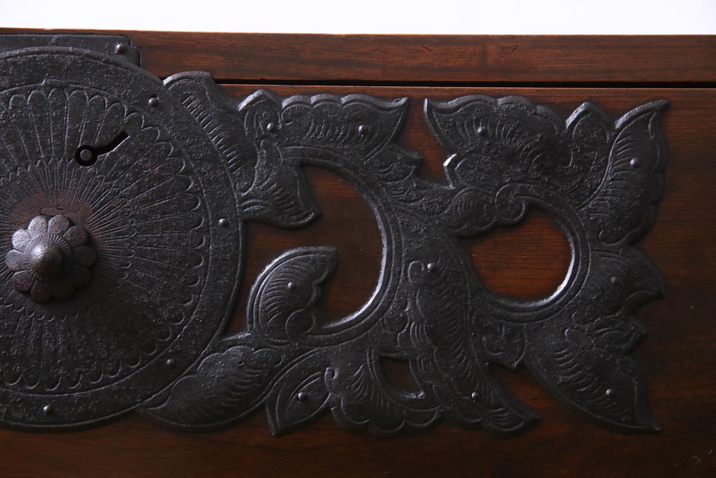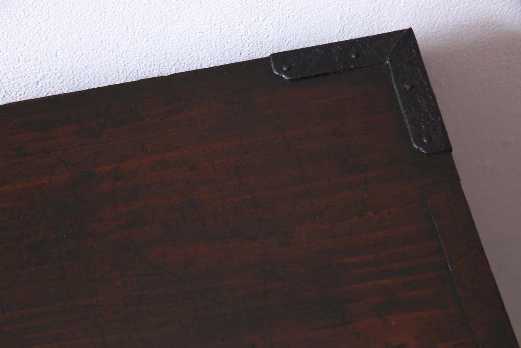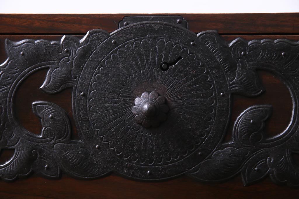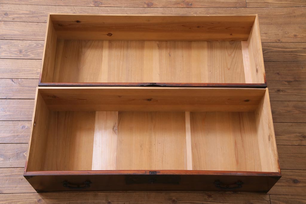 アンティーク家具 和製アンティーク 前面・供縁ケヤキ材 上品な印象あたえる脚付き仙台箪笥ローボード(衣装箪笥、引き出し、チェスト)