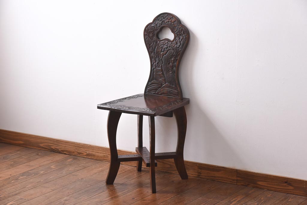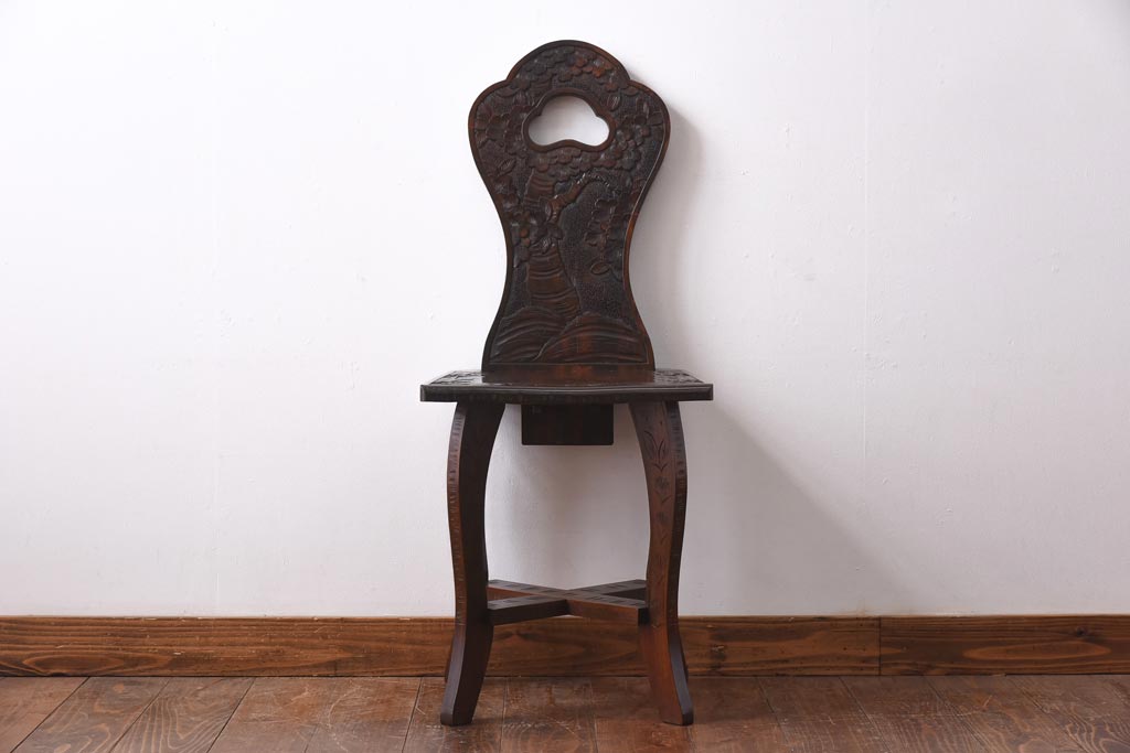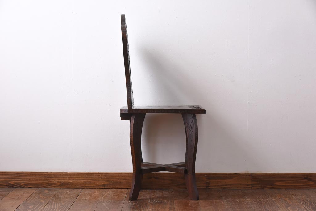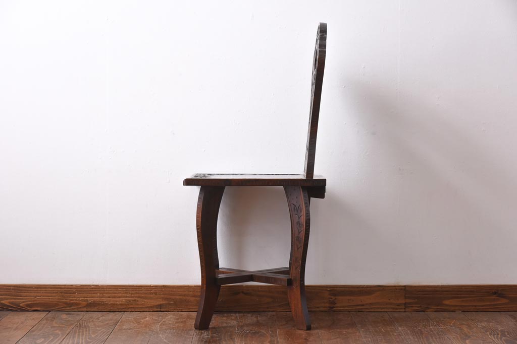 中古 伝統工芸 軽井沢彫り 意匠を凝らした美しいダイニングチェア(2)です。