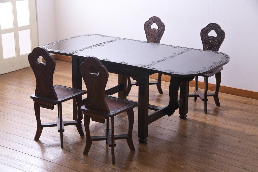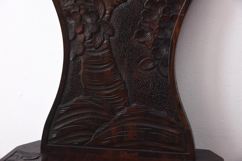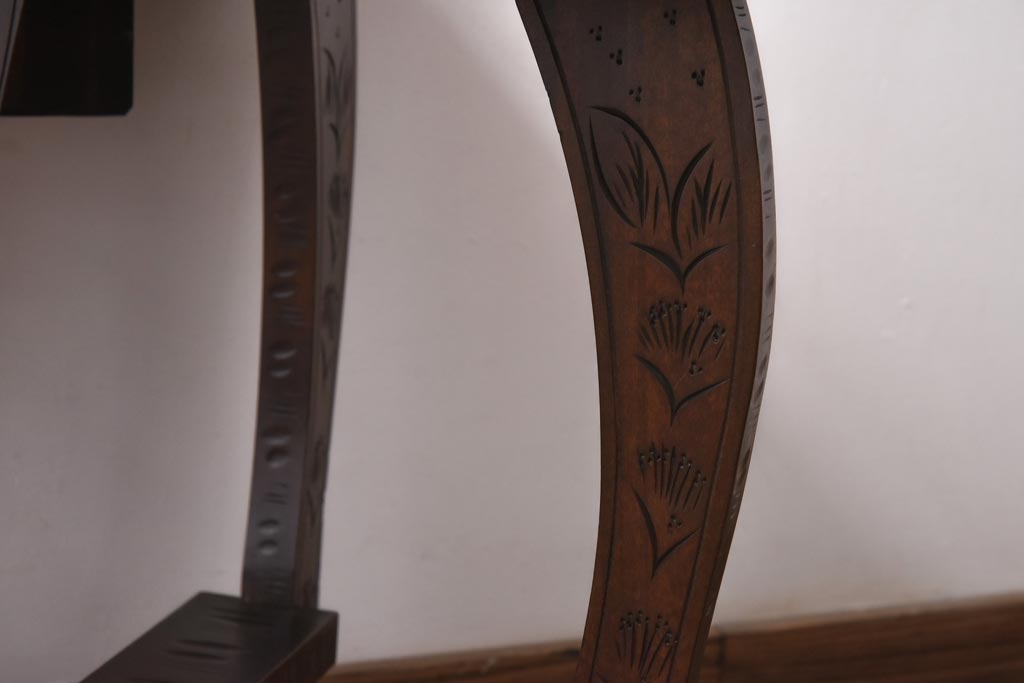 中古 伝統工芸 軽井沢彫り 意匠を凝らした美しいダイニングチェア(2)