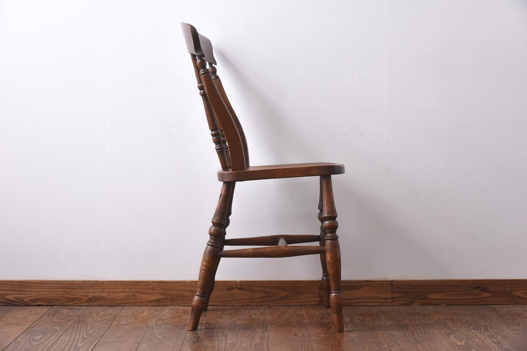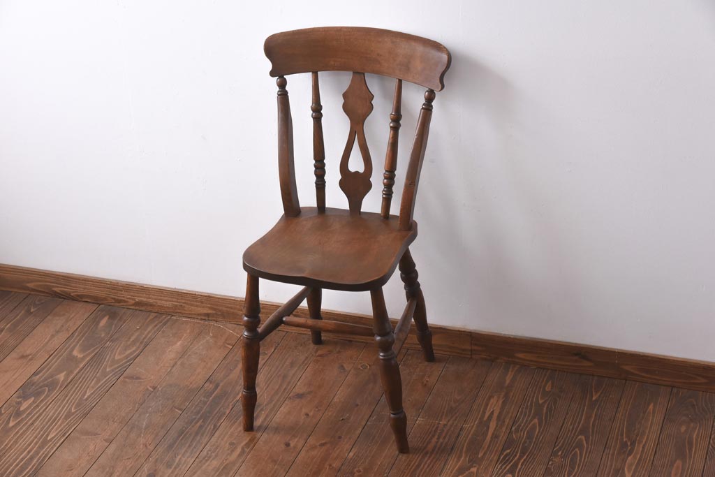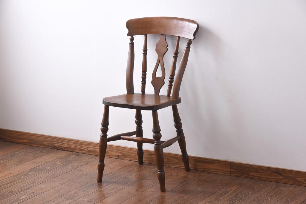 アンティーク家具 イギリスアンティーク 木のぬくもりと品のある佇まいが魅力的なチェア(ダイニングチェア、板座チェア)(1)