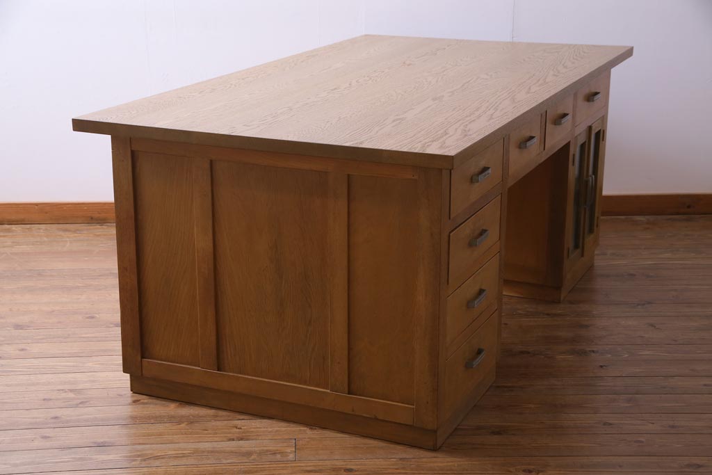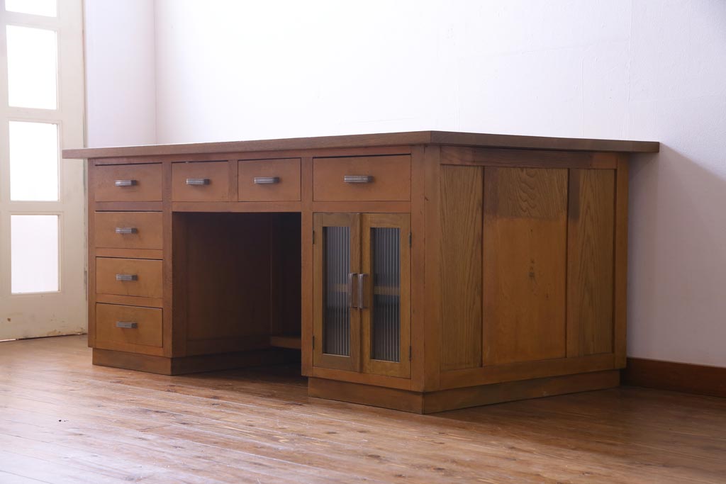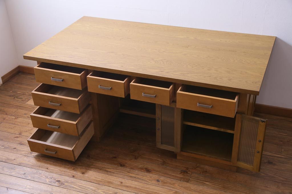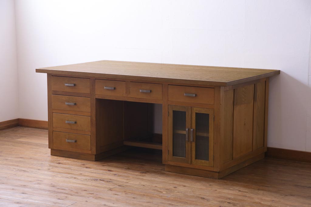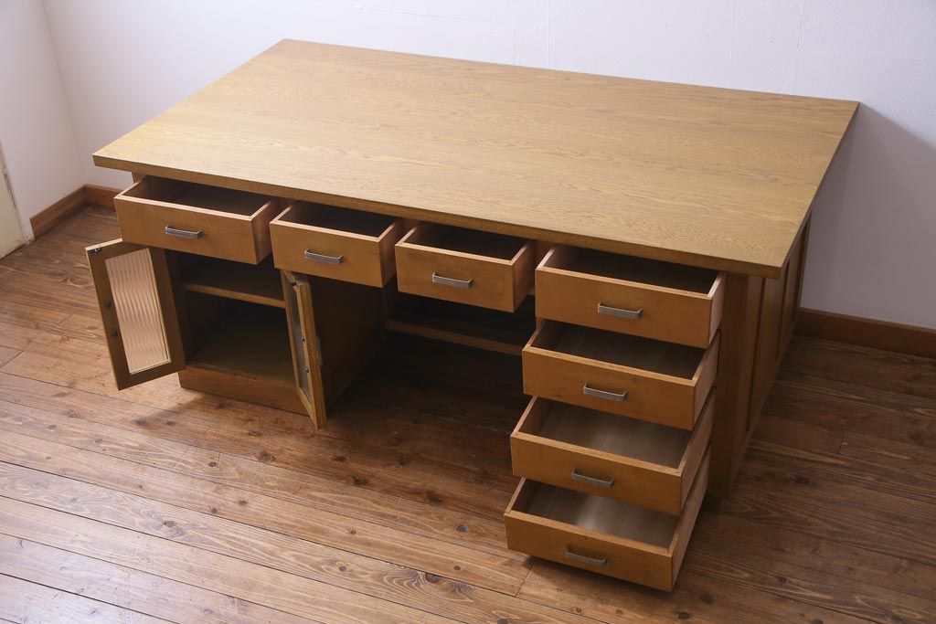 ラフジュ工房> テーブル> 作業台 > レトロ家具 昭和レトロ 天板ホワイトオーク材 特大サイズ!温もり溢れるナラ材製の両面両袖デスク(パートナーデスク、作業台、ワークデスク、在宅ワーク、在宅用)