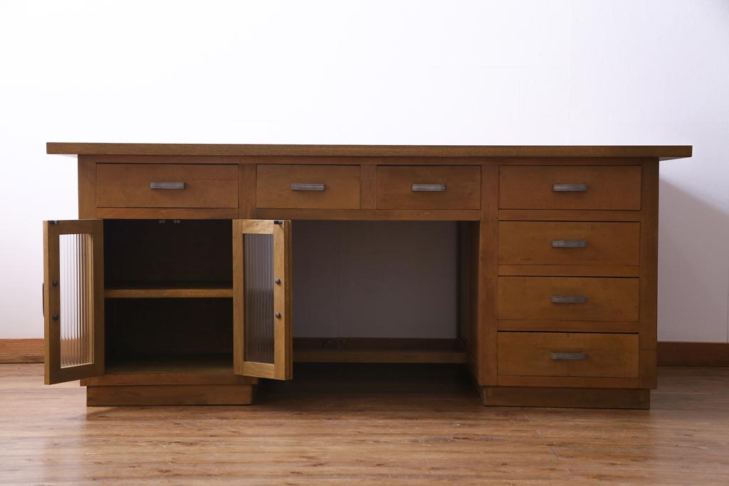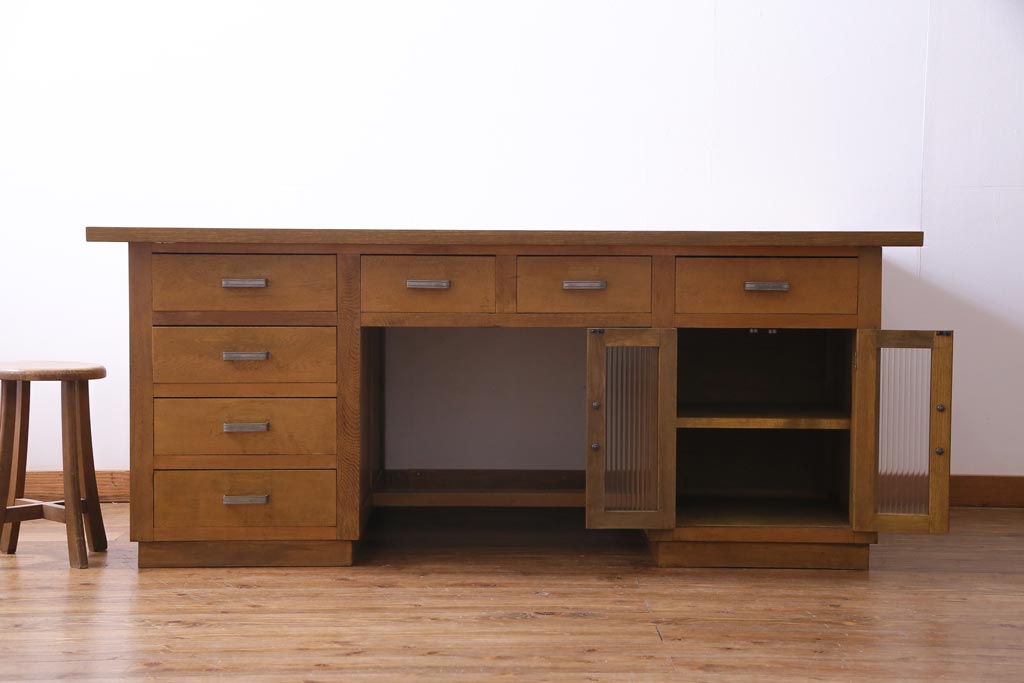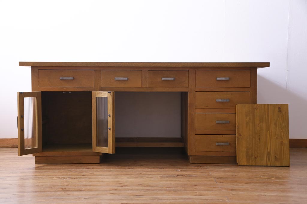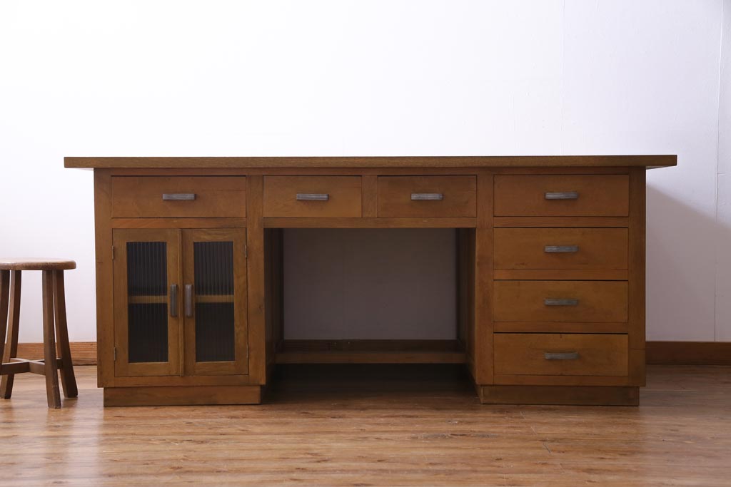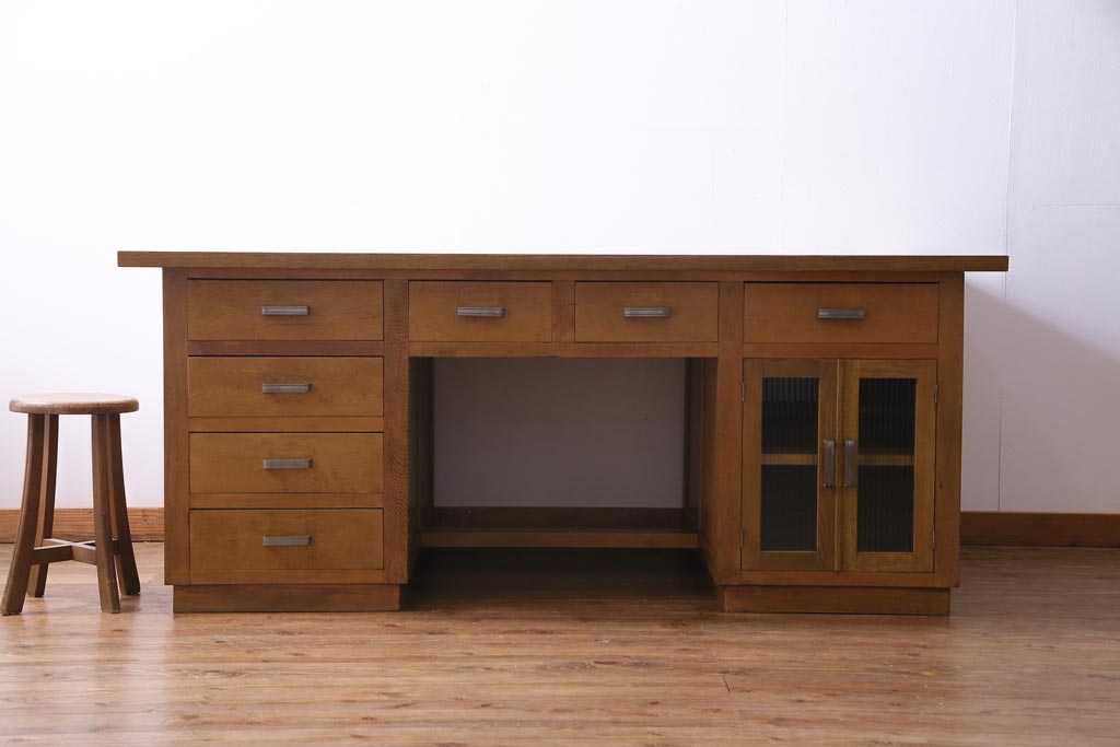 ラフジュ工房> テーブル> 作業台 > レトロ家具 昭和レトロ 天板ホワイトオーク材 特大サイズ!温もり溢れるナラ材製の両面両袖デスク(パートナーデスク、作業台、ワークデスク、在宅ワーク、在宅用)