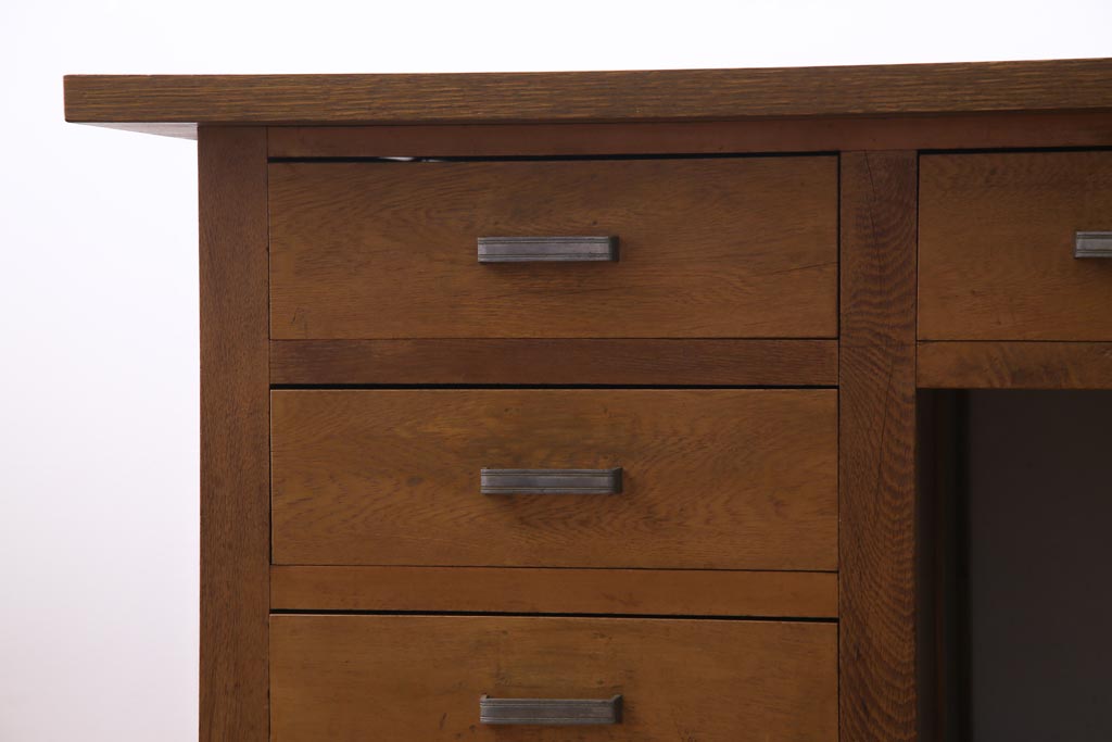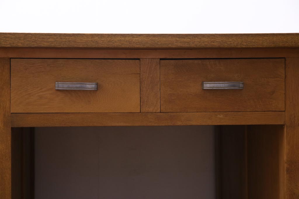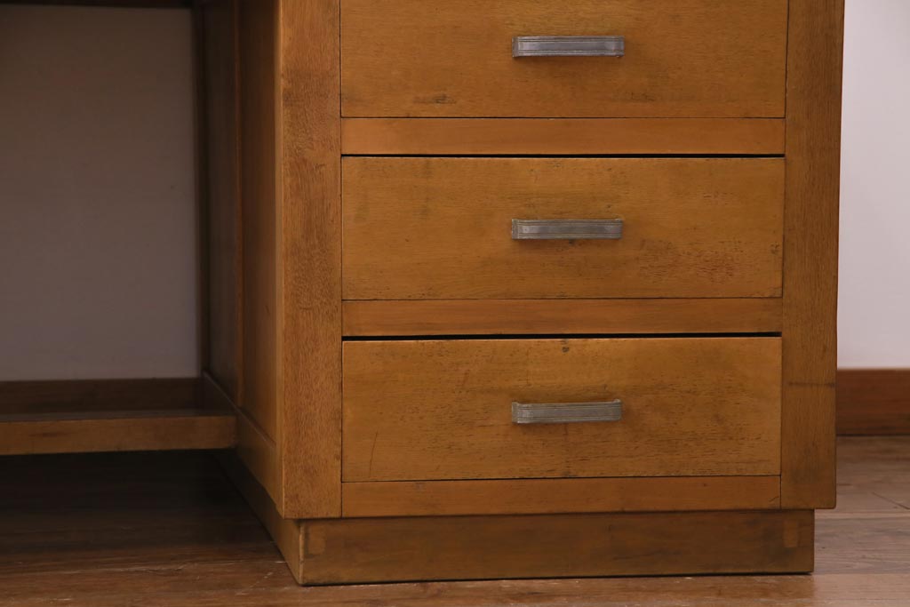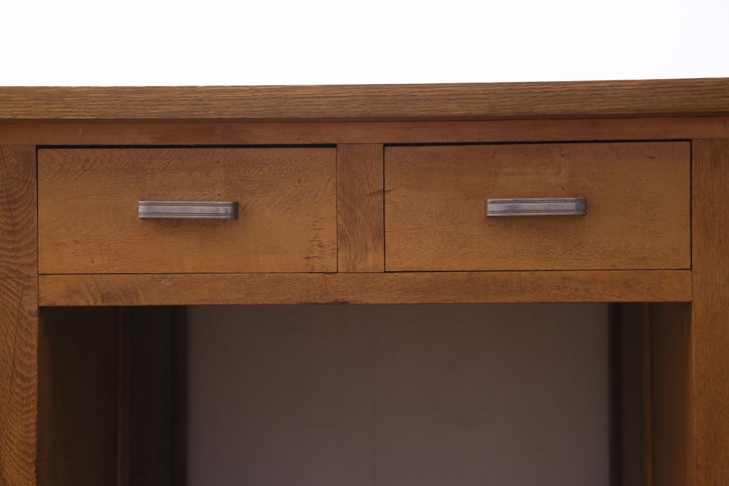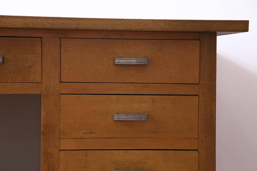 ラフジュ工房> デスク> 片袖机・両袖机 > レトロ家具 昭和レトロ 天板ホワイトオーク材 特大サイズ!温もり溢れるナラ材製の両面両袖デスク(パートナーデスク、作業台、ワークデスク、在宅ワーク、在宅用)