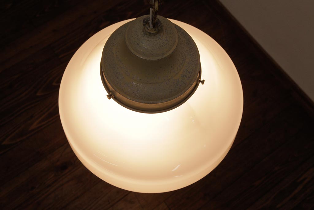 和製アンティーク 大振りサイズ 昭和レトロなデザインのガラスシェード照明(吊り下げ照明、天井照明)