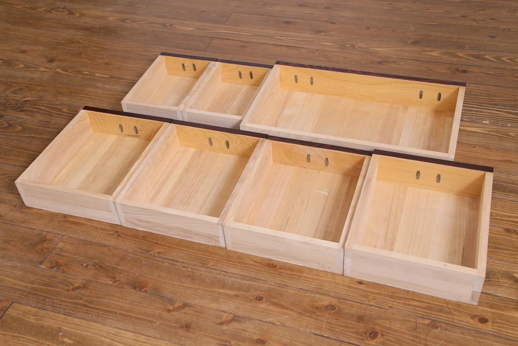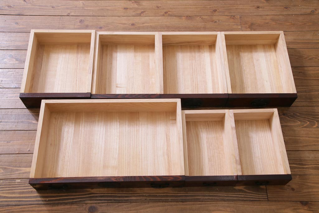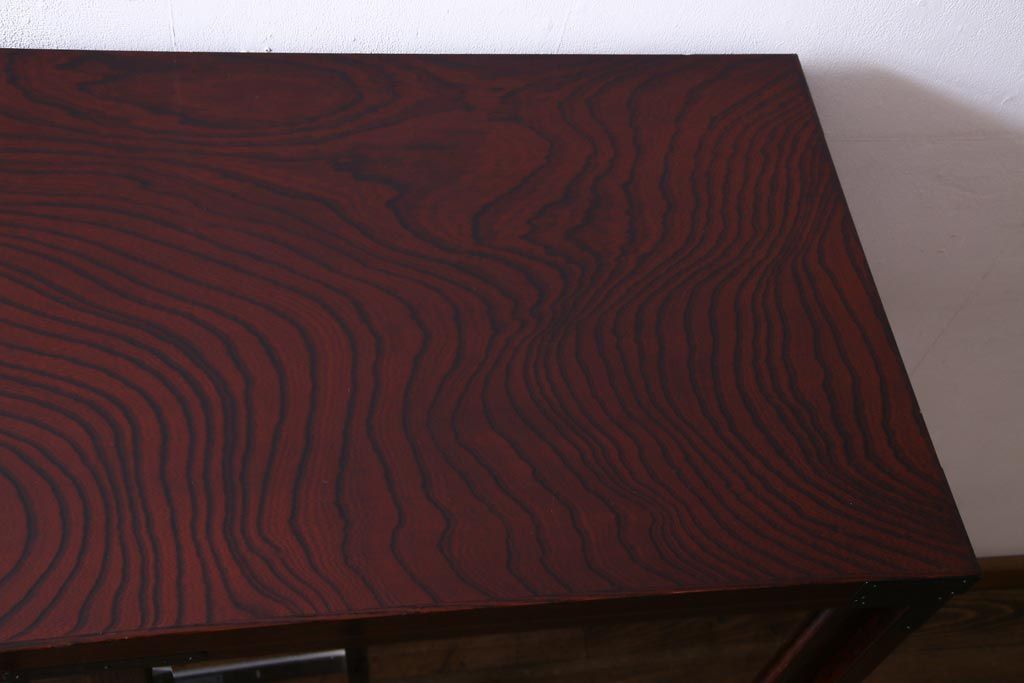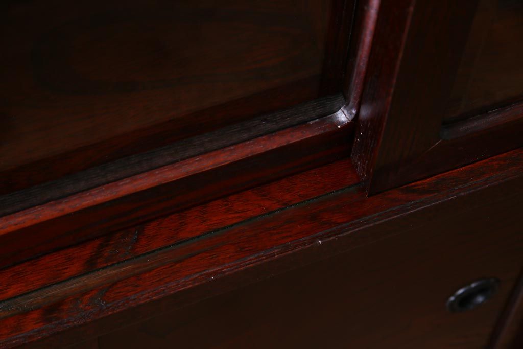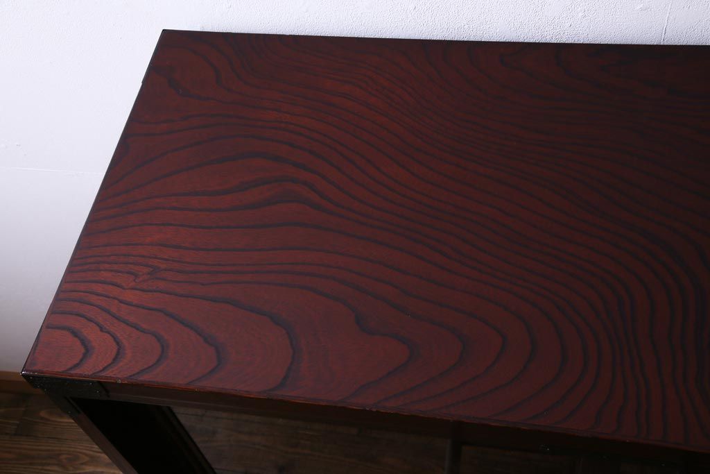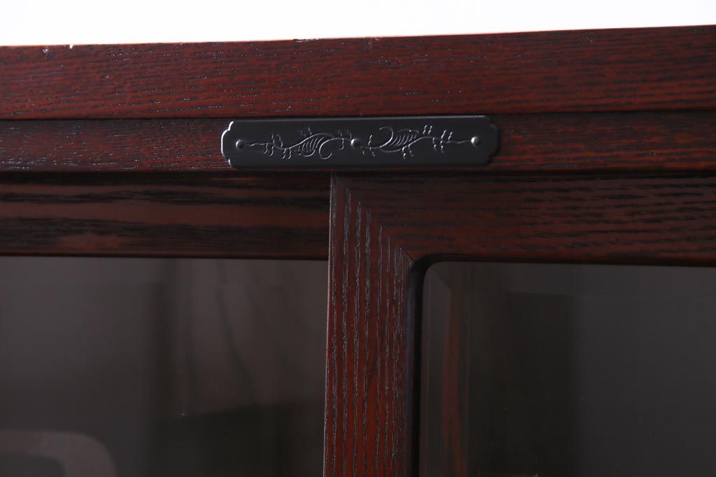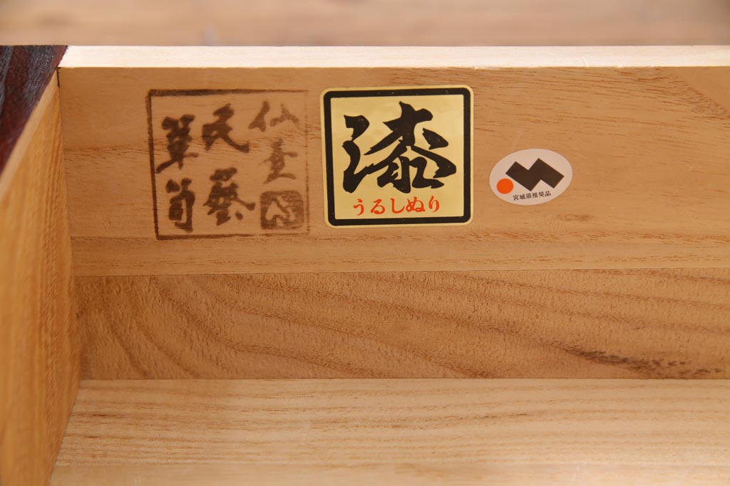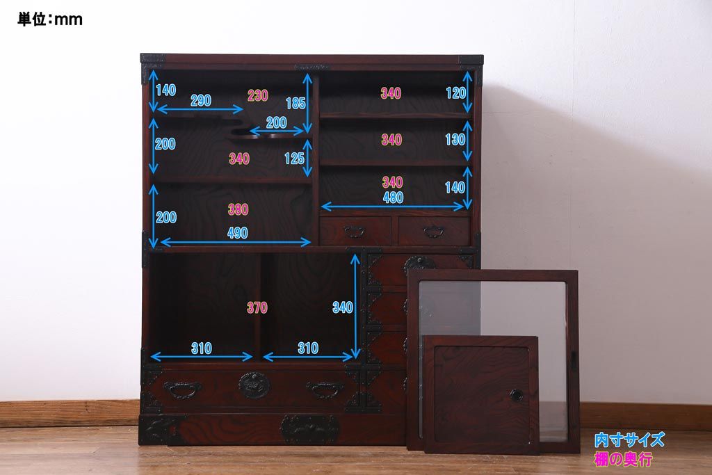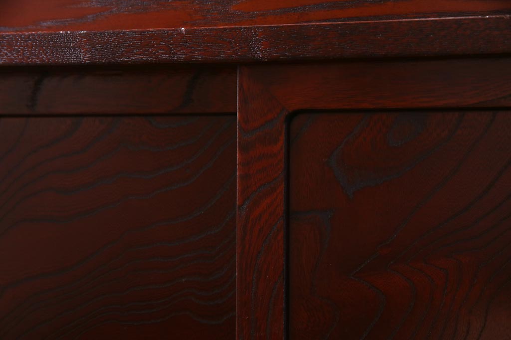 ラフジュ工房> 和箪笥 > 中古 仙台民芸箪笥(仙台箪笥) 欅産業 拭き漆塗り 華やかな金具の茶箪笥(茶棚、飾り棚)