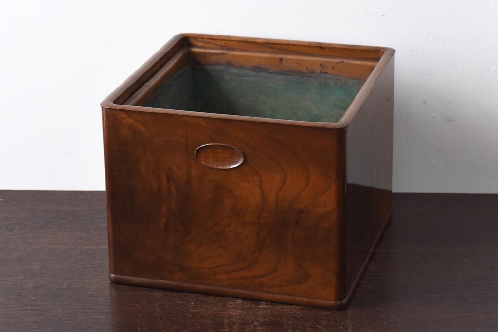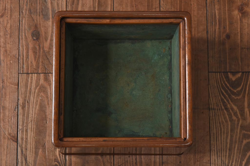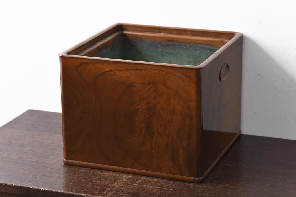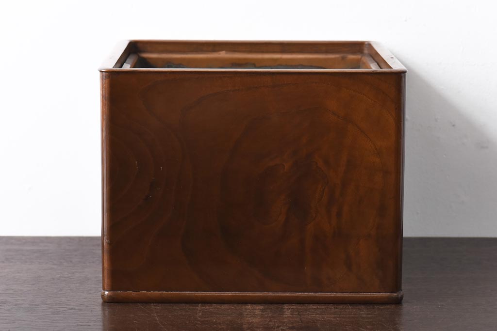火鉢> 木製火鉢 > アンティーク雑貨 指物家具 桑材 上品な佇まいの小振りな角火鉢(木製火鉢、手あぶり)