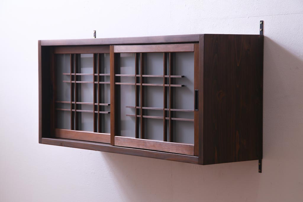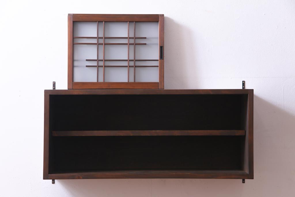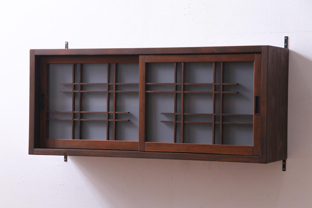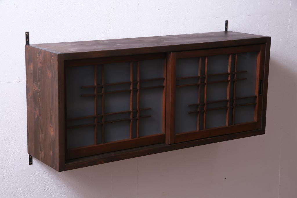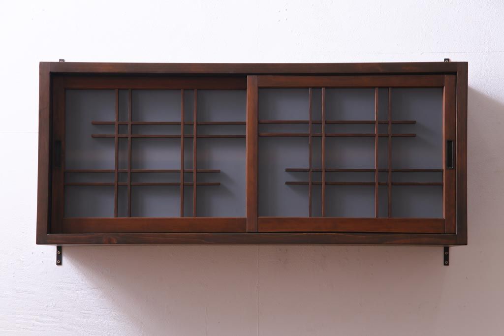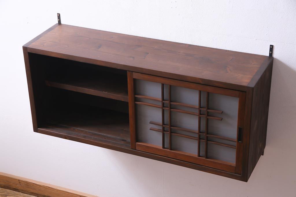 ラフジュ工房オリジナル 建具リメイク シンプルな中に渋さのある壁掛け戸棚(ウォールシェルフ、吊り戸棚)(1)