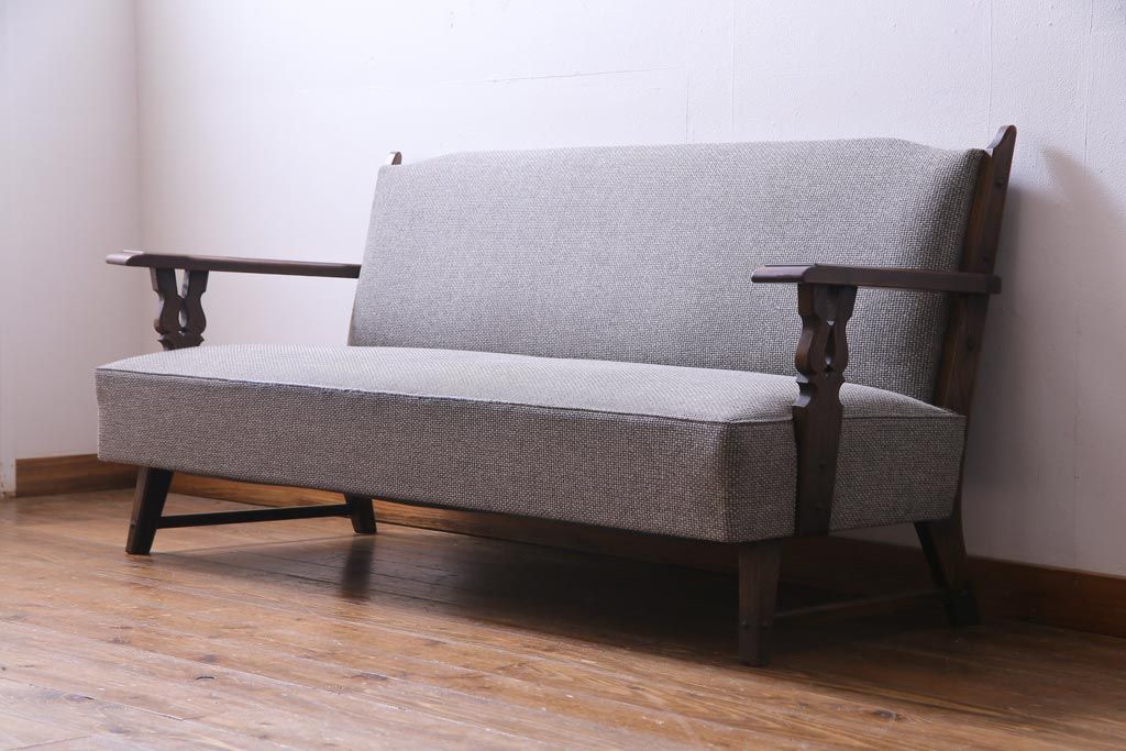 中古 神戸洋家具 永田良介商店 メンズライクにもおすすめなビンテージのチロル型ソファ(3人掛けソファ)
