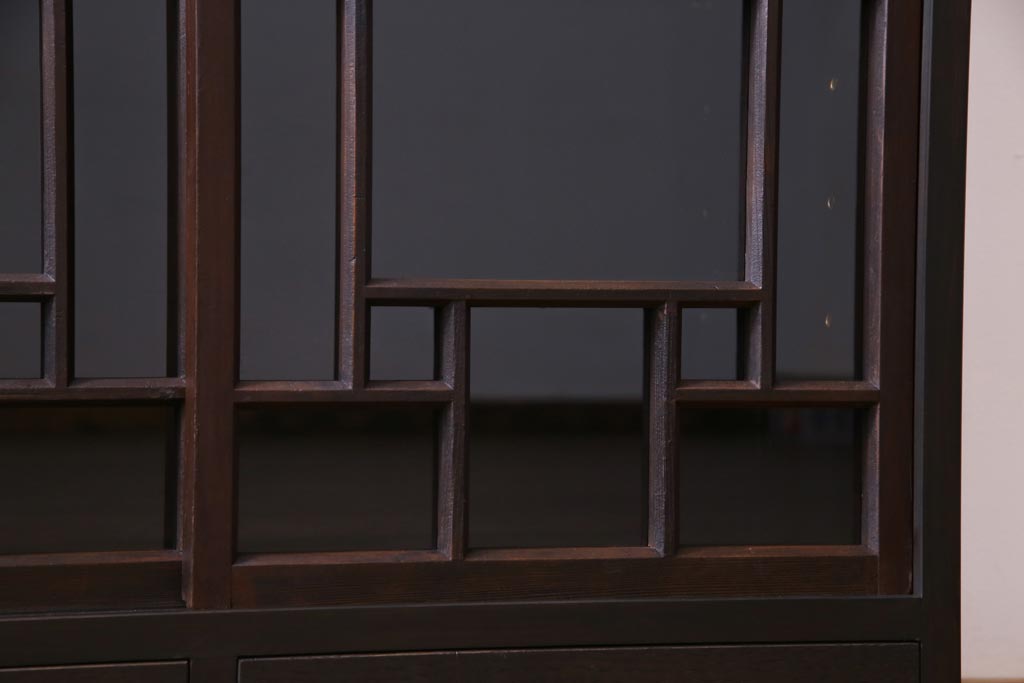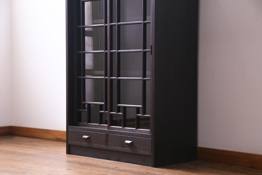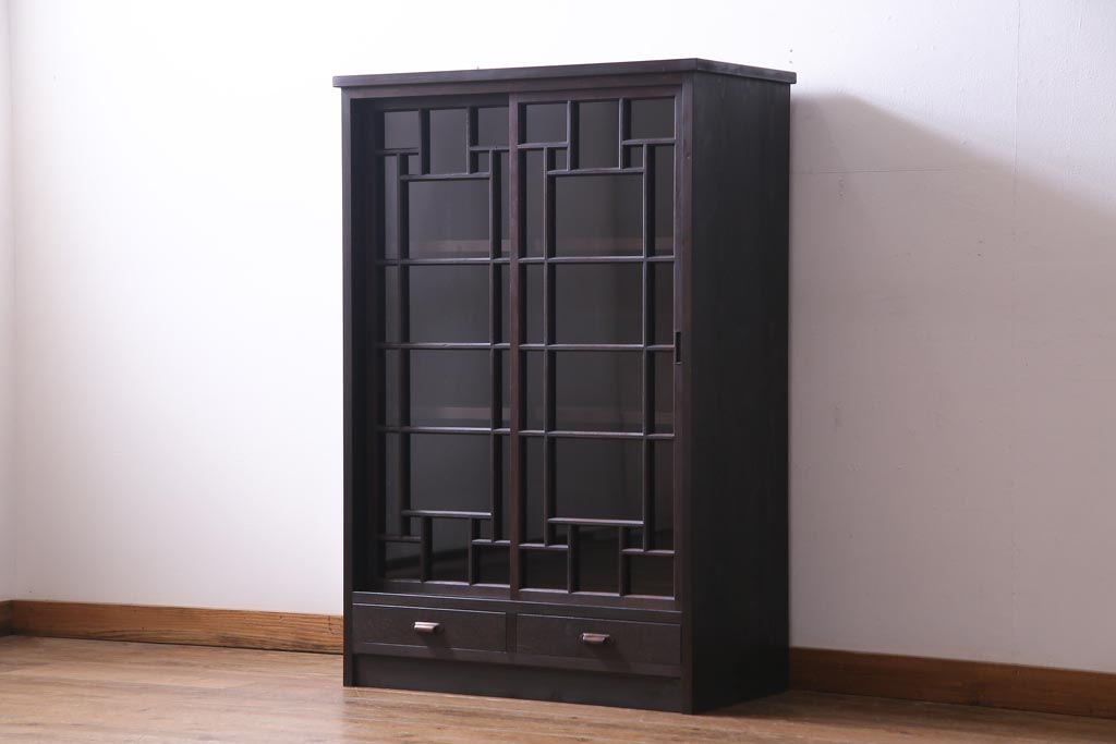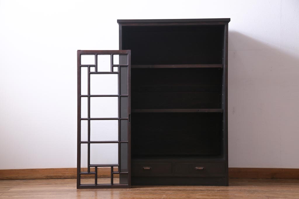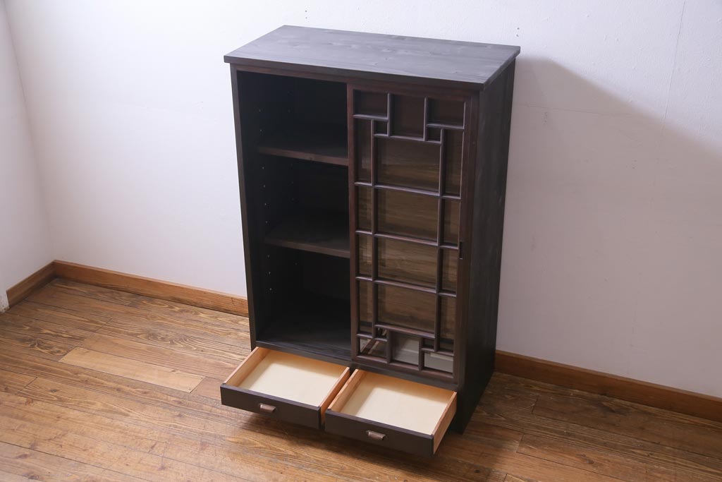 ラフジュ工房オリジナル 古建具リメイク 大正ロマンテイストの収納棚(戸棚、本箱、サイドキャビネット)です。