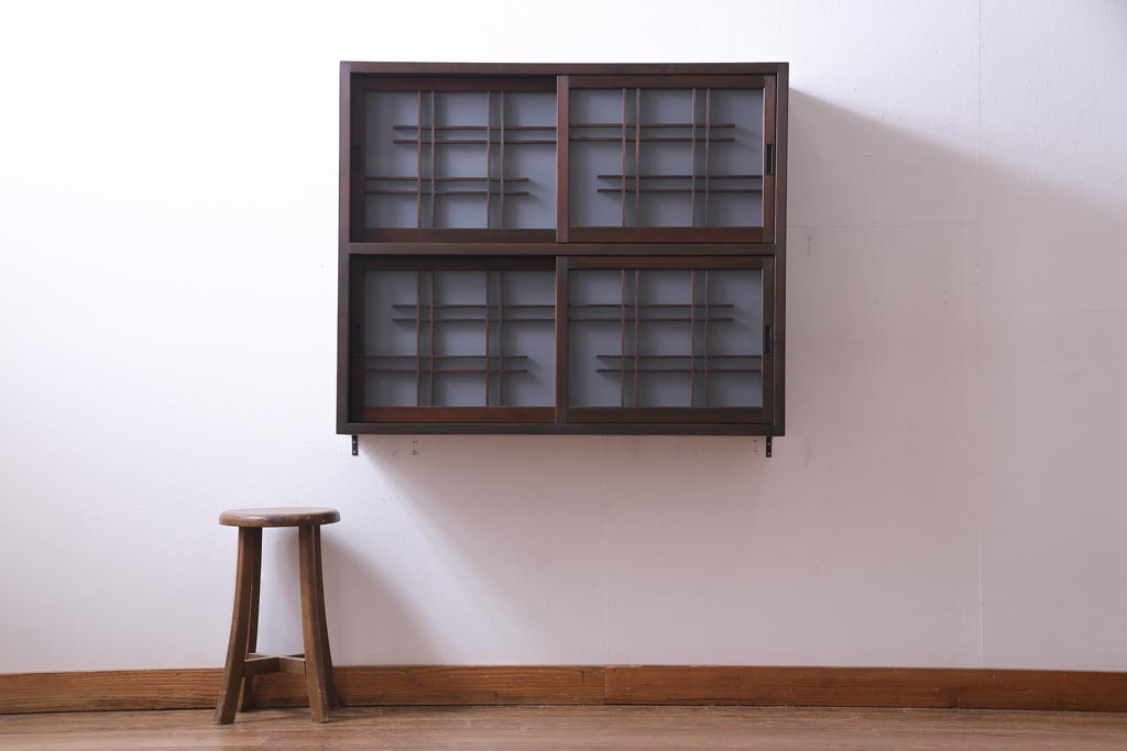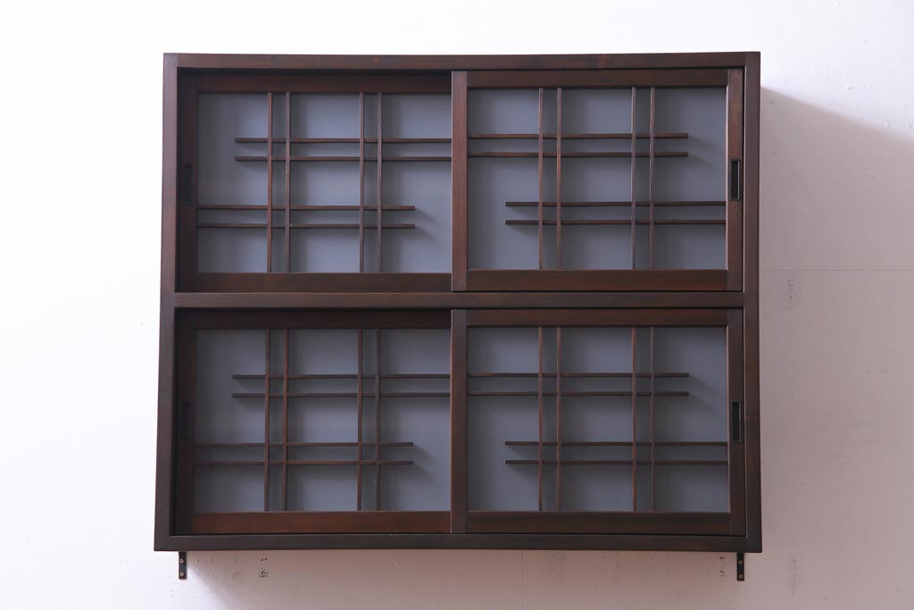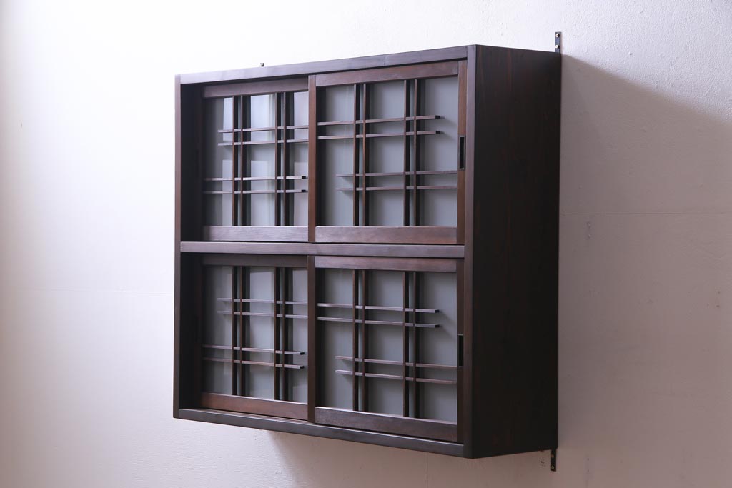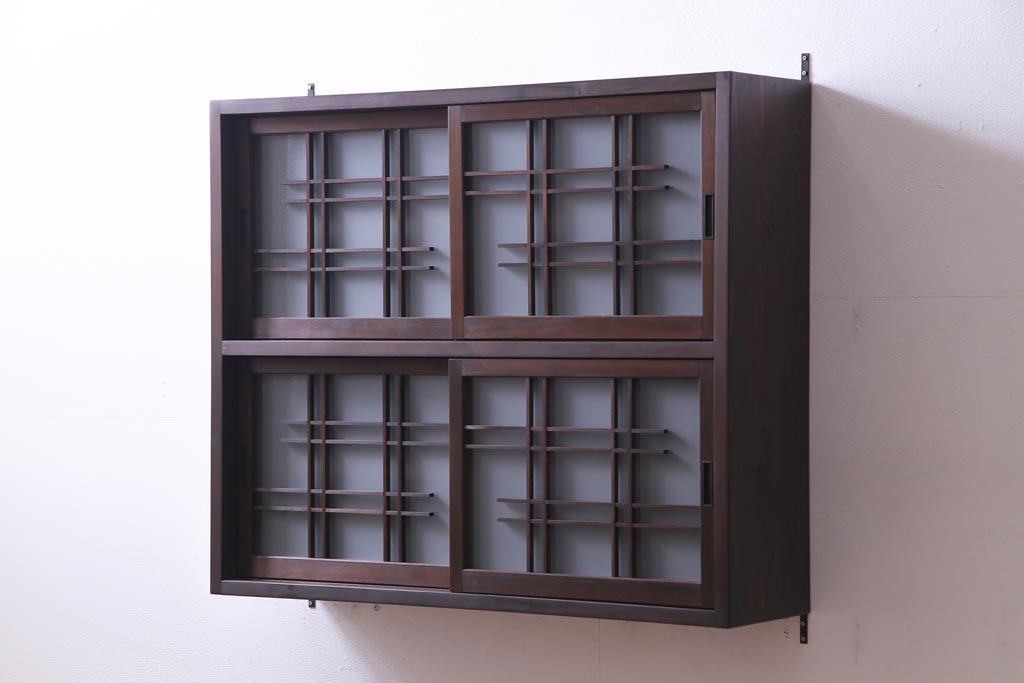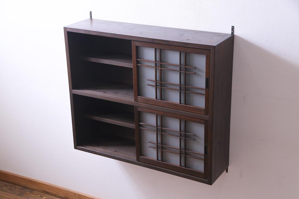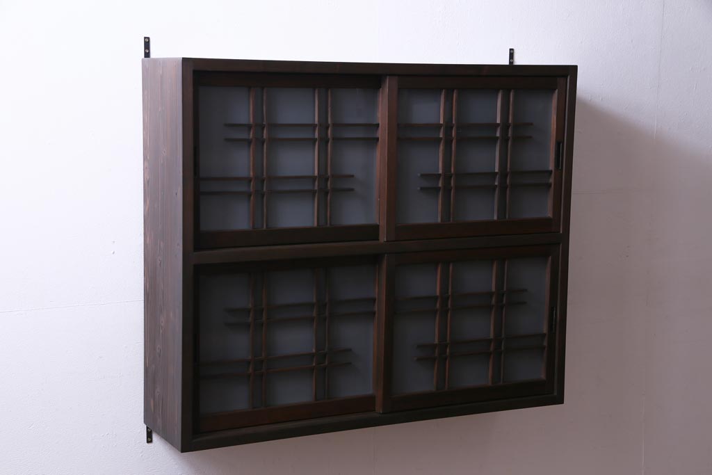 ラフジュ工房オリジナル 建具リメイク 大振り 和の風情感じるデザインが魅力的な壁掛け戸棚(ウォールシェルフ、吊り戸棚)