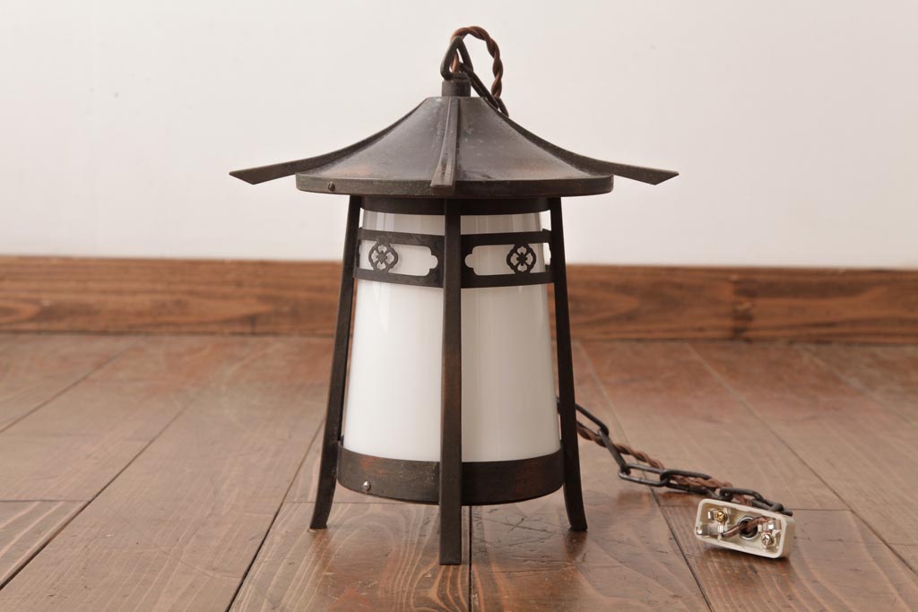 和製アンティーク 情緒あふれる佇まいが魅力的な吊り灯籠(天井照明、吊り下げ照明)です。