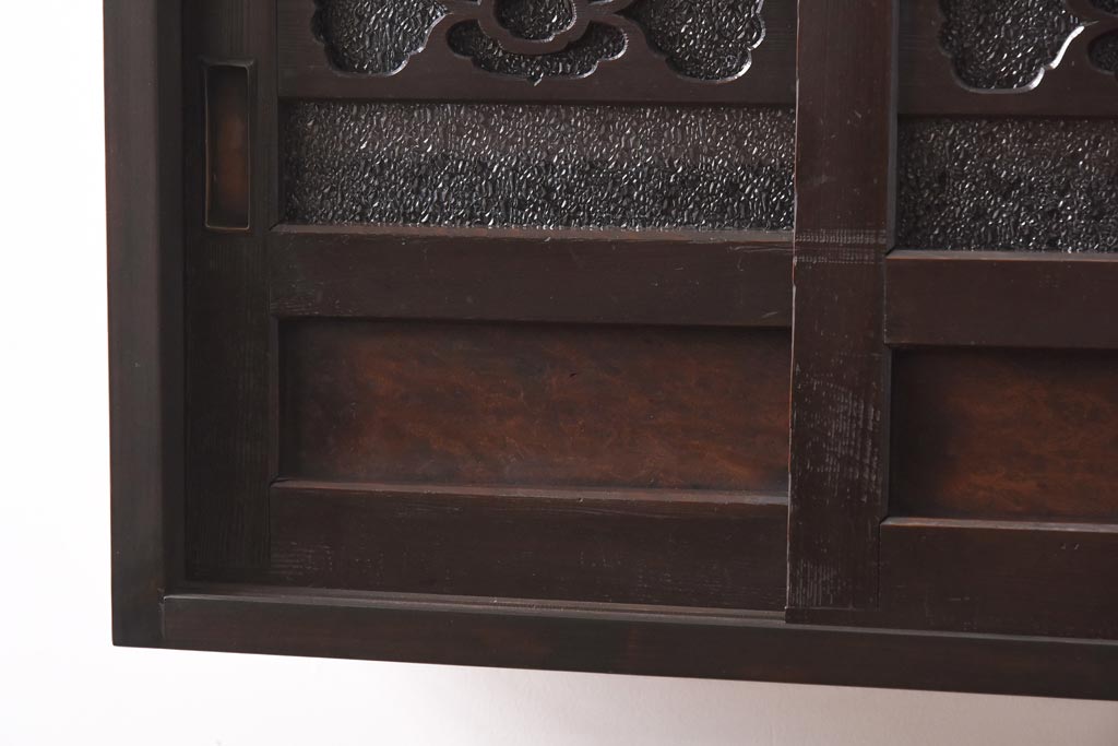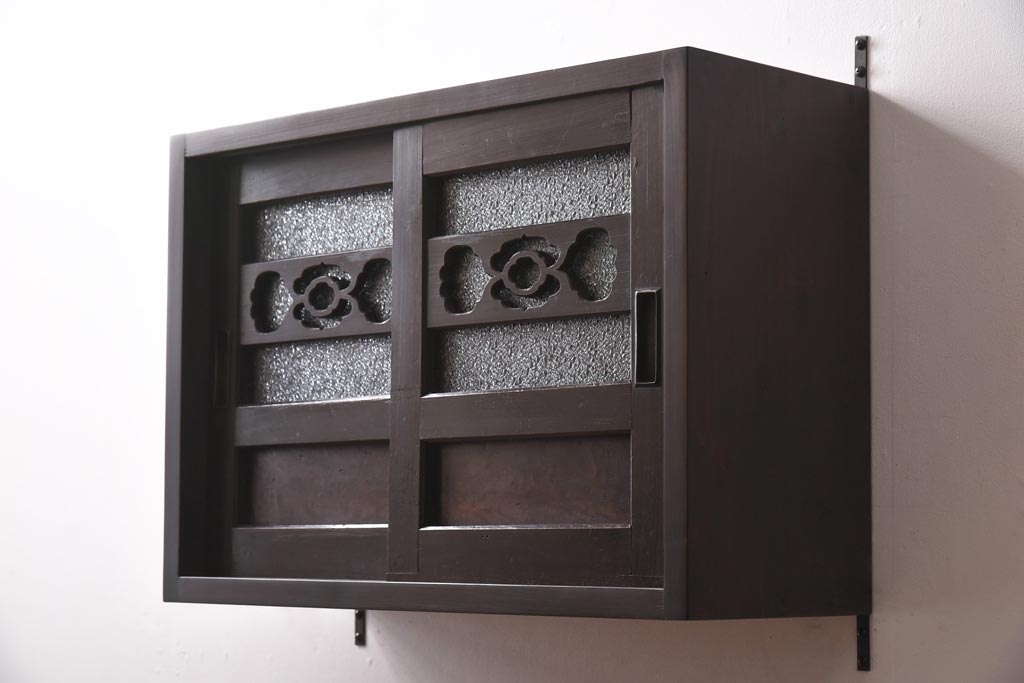 ラフジュ工房オリジナル 建具リメイク 透かし意匠が魅力的な壁掛け戸棚(収納棚、ウォールラック)(2)です。