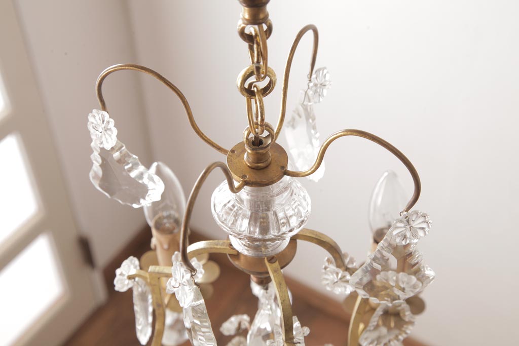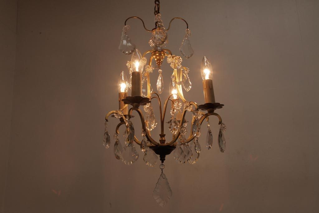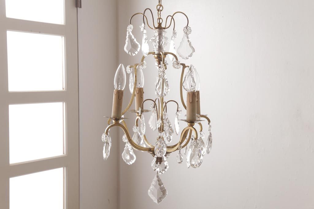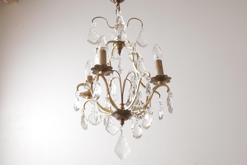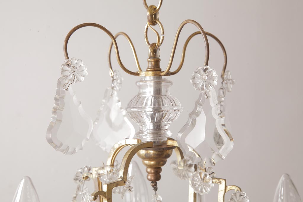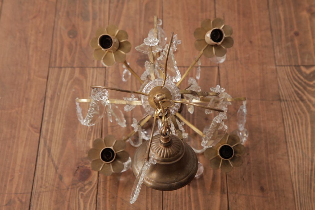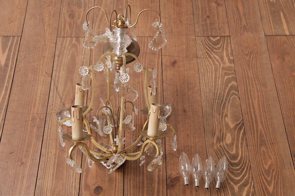 フランスビンテージ 噴水装飾付き 真鍮のフレームがシックなケージ型4灯シャンデリア(天井照明、吊り下げ照明)(R-034614)
