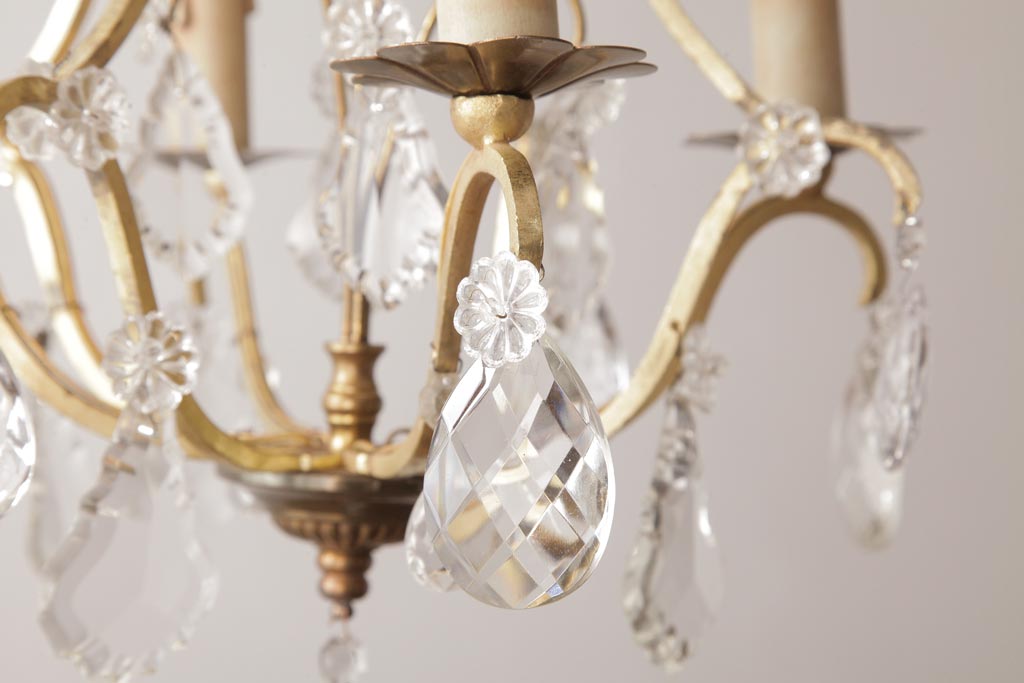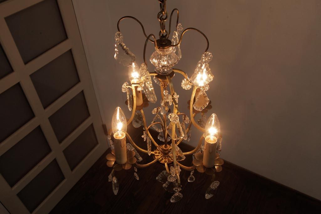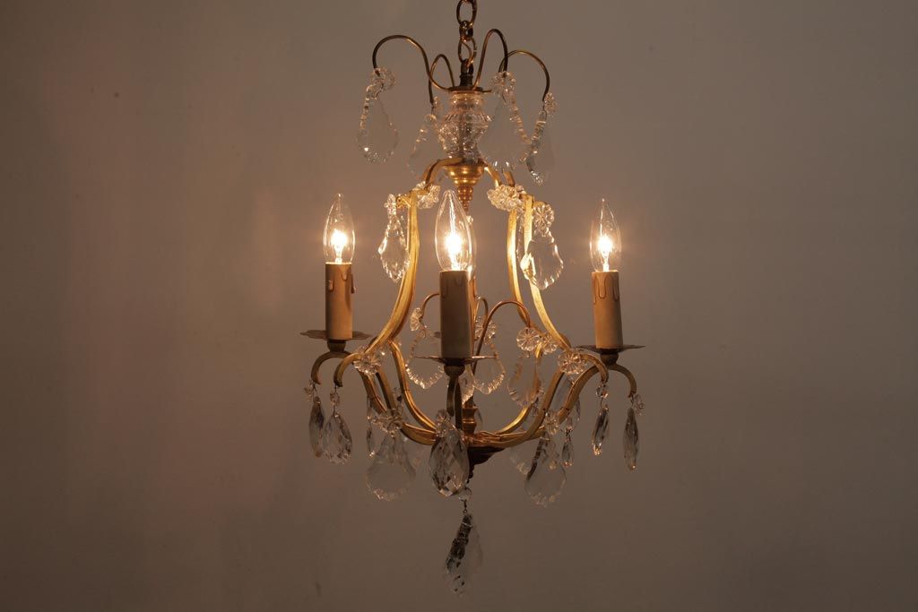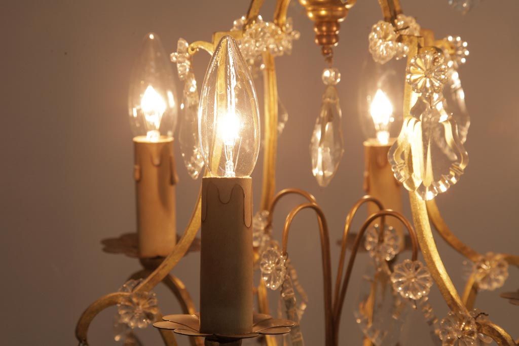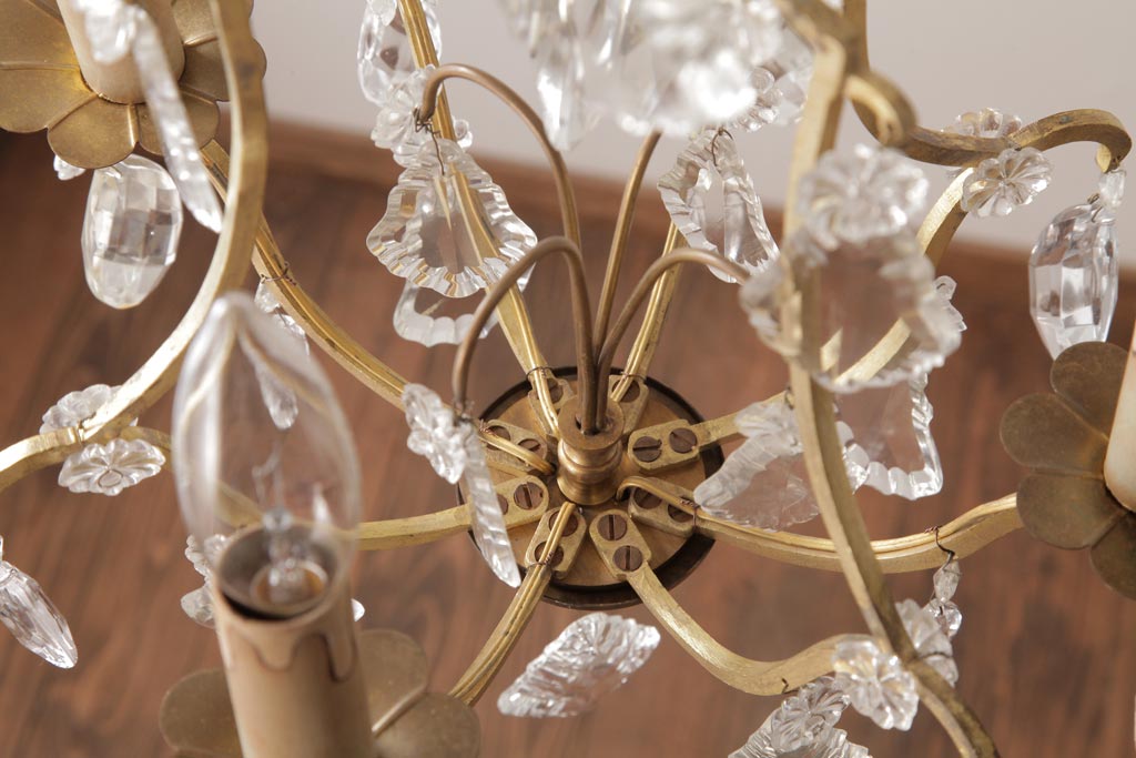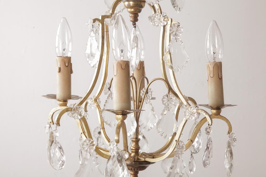 フランスビンテージ 噴水装飾付き 真鍮のフレームがシックなケージ型4灯シャンデリア(天井照明、吊り下げ照明)(R-034614)