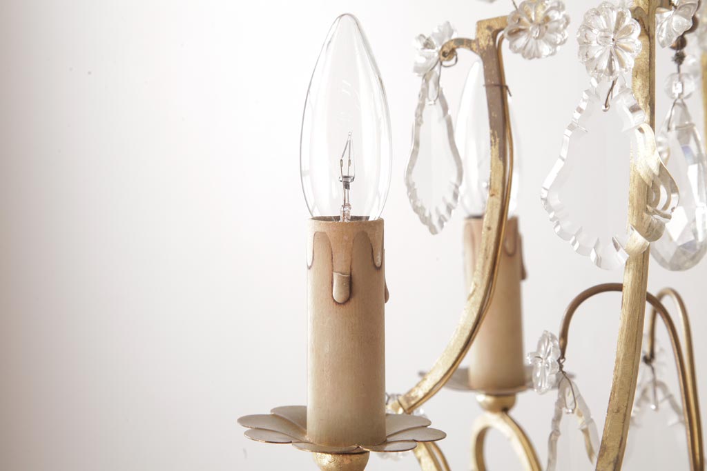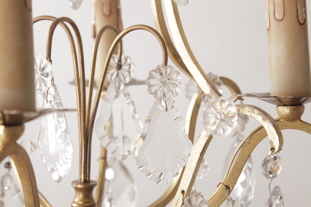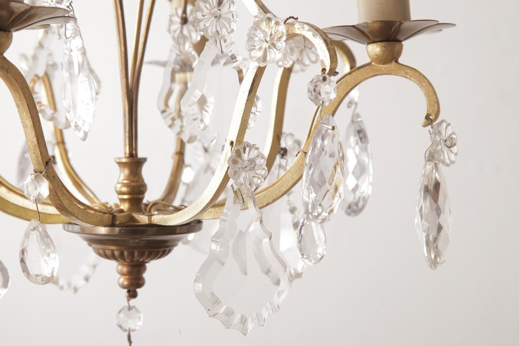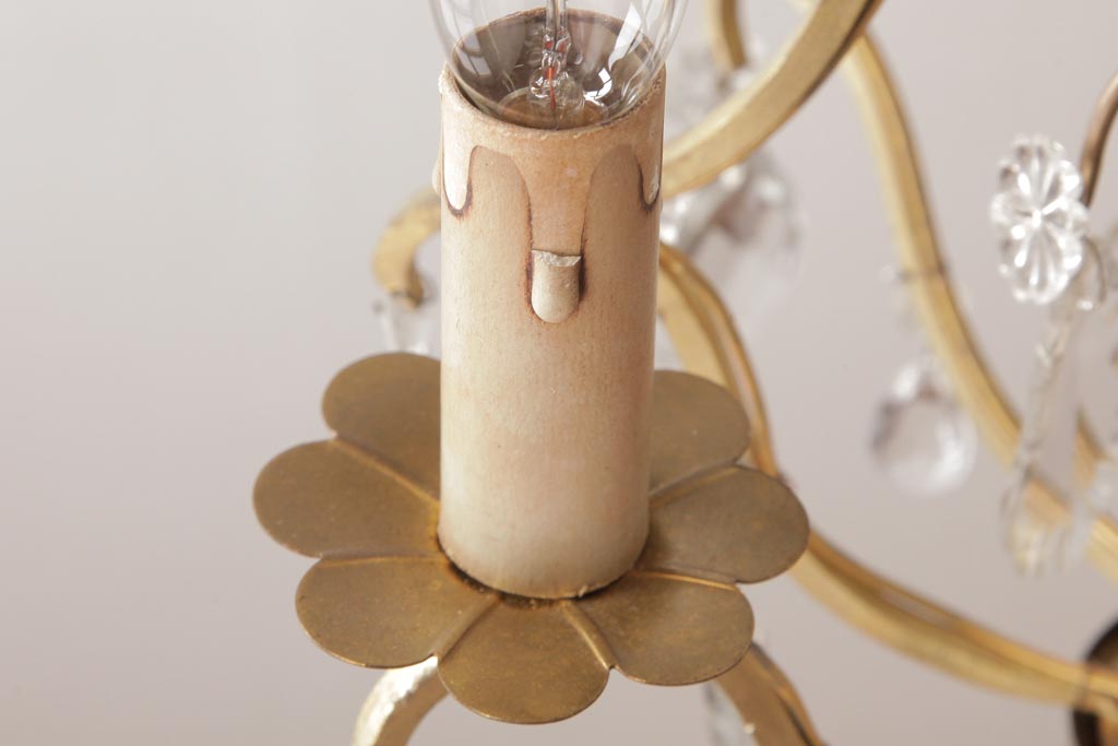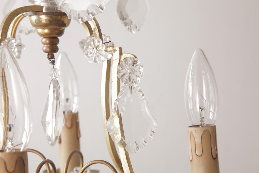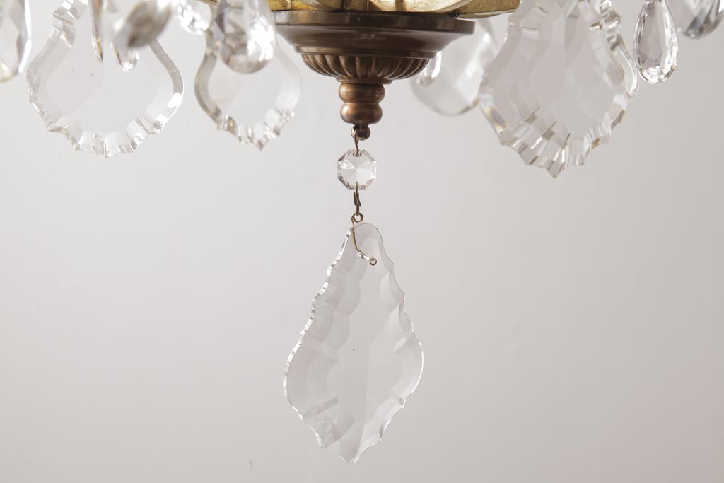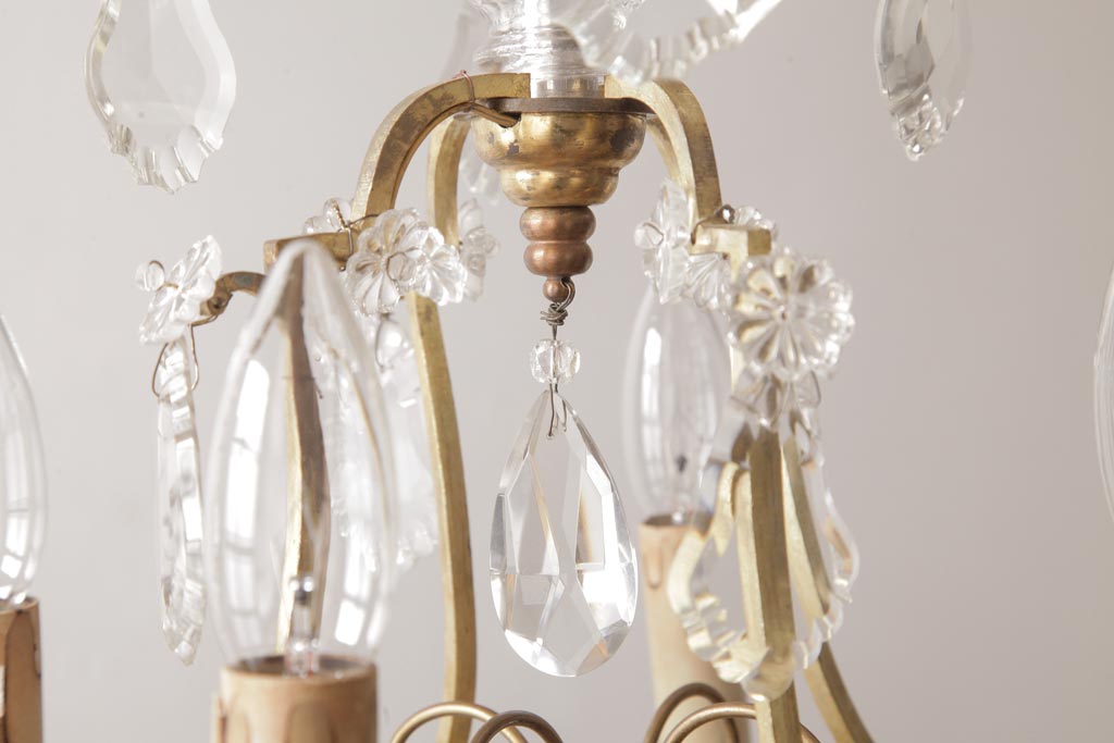 フランスビンテージ 噴水装飾付き 真鍮のフレームがシックなケージ型4灯シャンデリア(天井照明、吊り下げ照明)(R-034614)