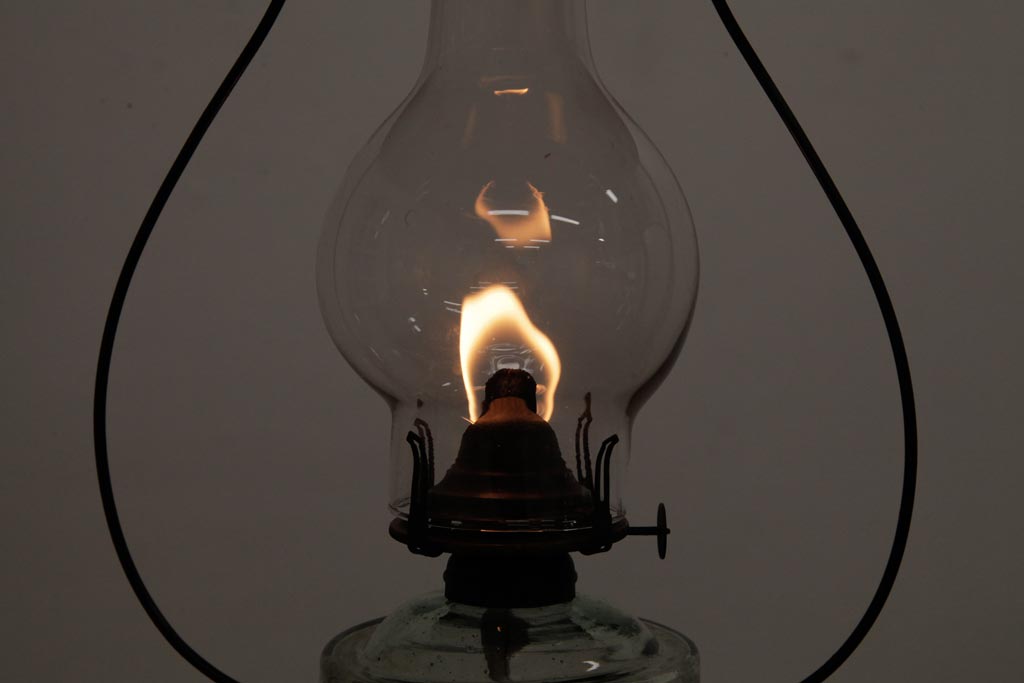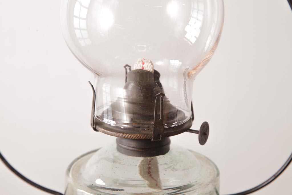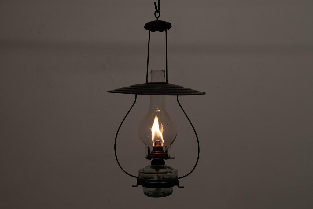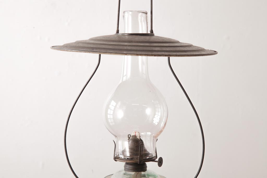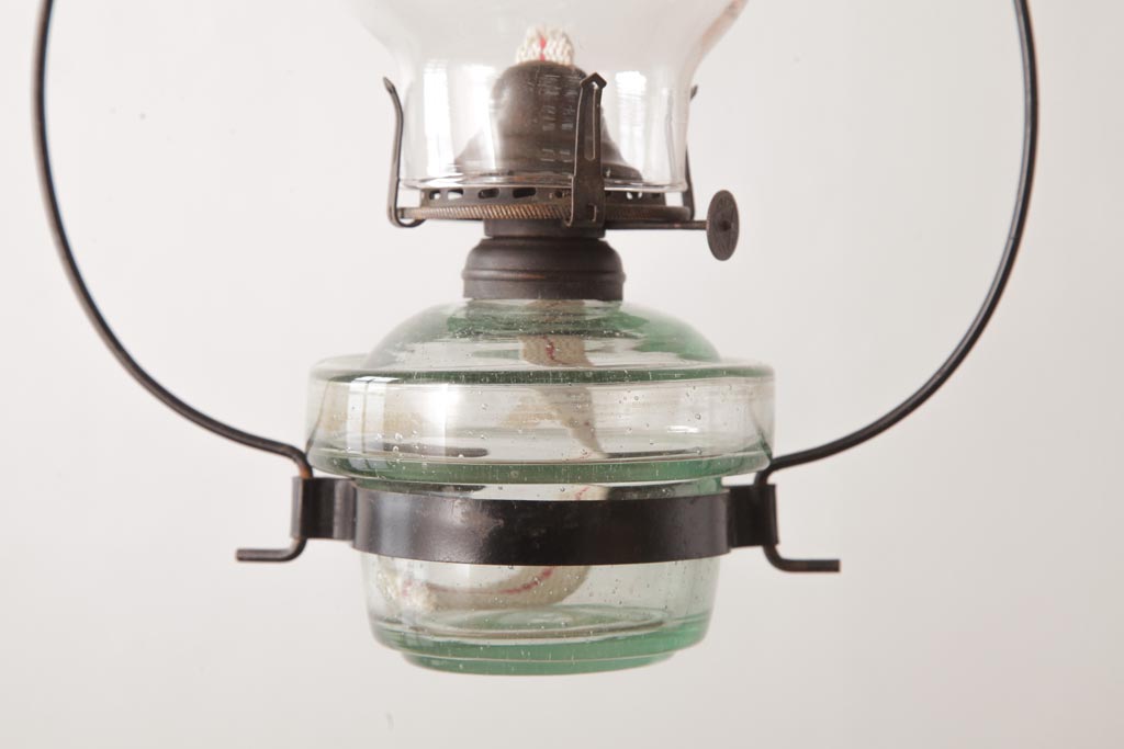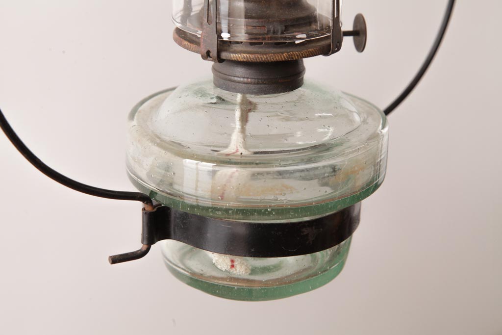 昭和レトロ くすんだ風合いが味わい深いオイルランプ(吊りランプ、5分芯)です。