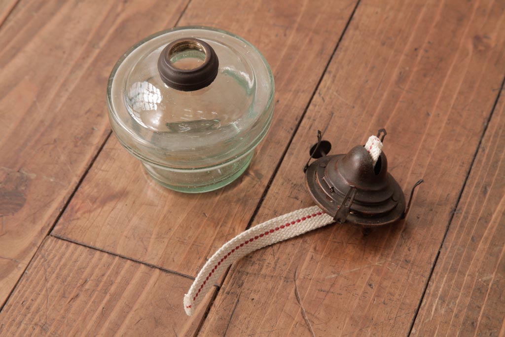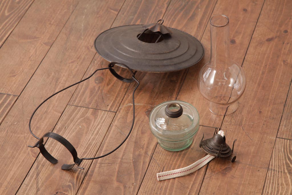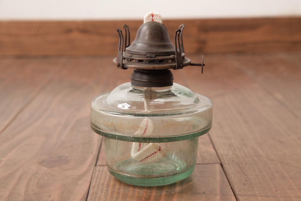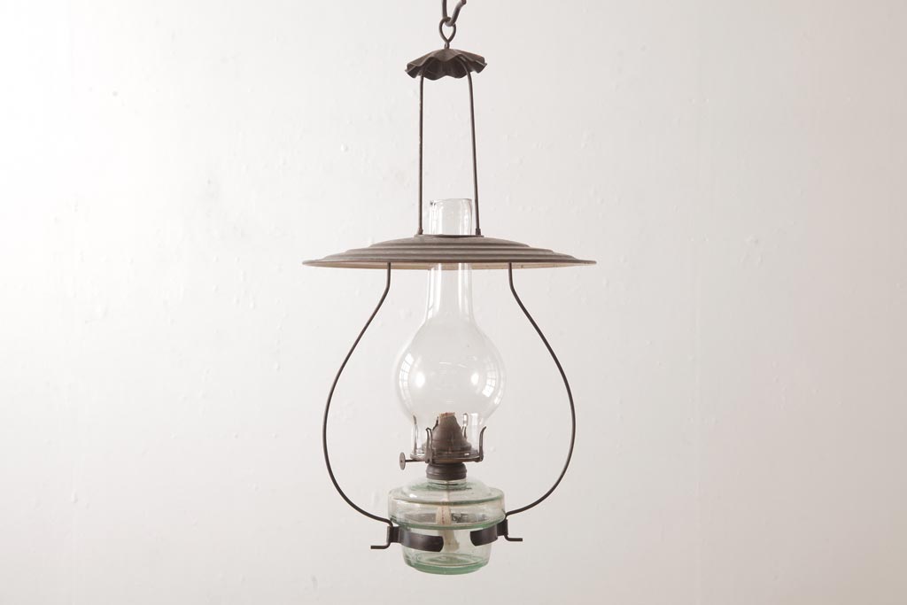 アンティーク雑貨 昭和レトロ くすんだ風合いが味わい深いオイルランプ(吊りランプ、5分芯)