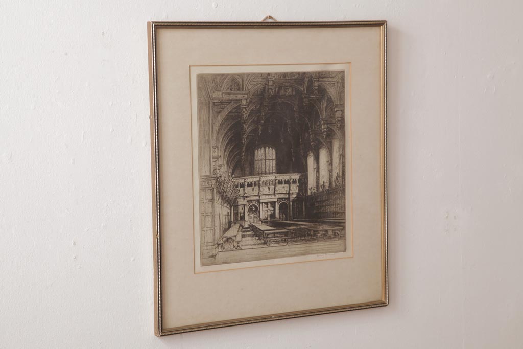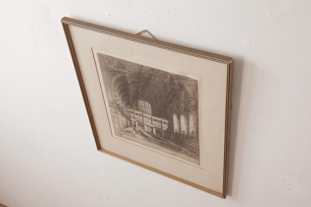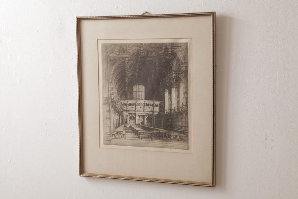 アンティーク雑貨 イギリスビンテージ 細かなスケッチが目を引くアートフレーム