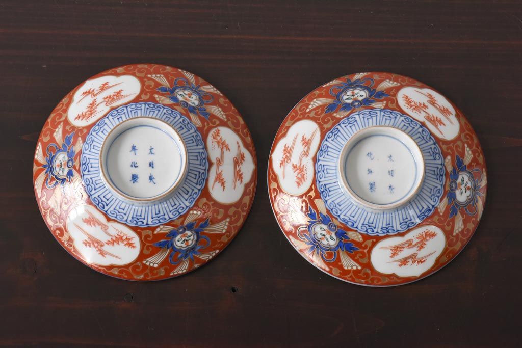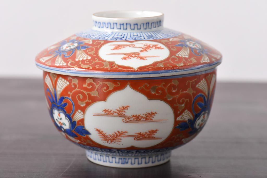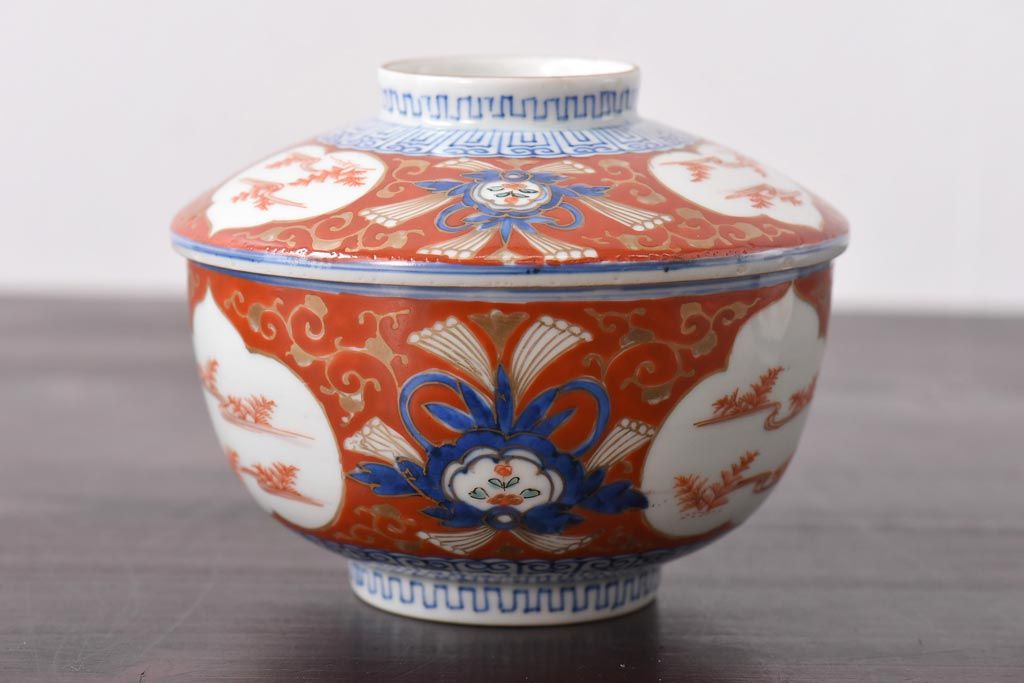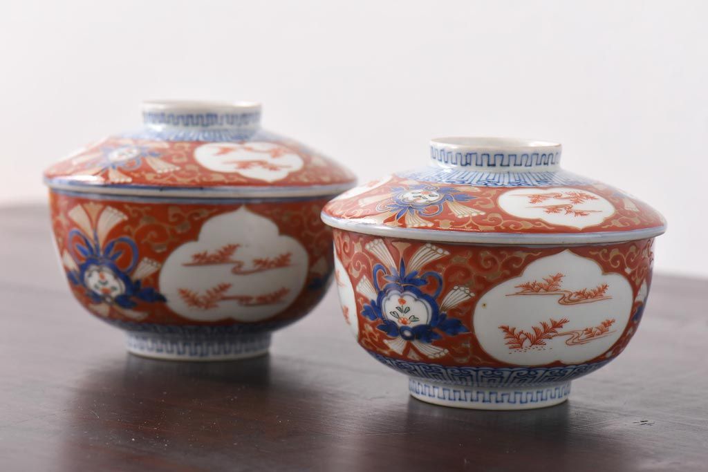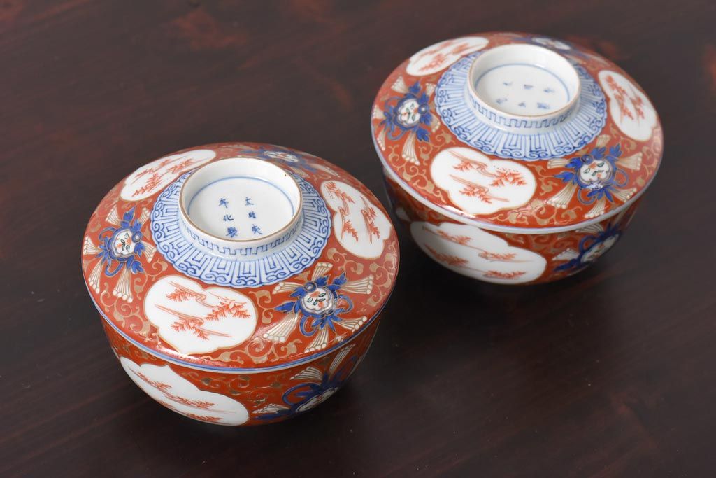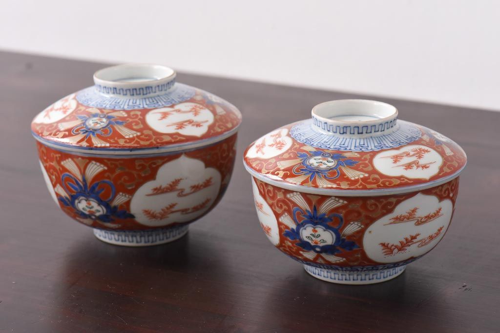 ラフジュ工房> 骨董・美術品> 骨董-陶磁器 > 江戸期 大明成化年製 古伊万里 赤絵南蛮図染付 蓋茶碗2個セット(2)