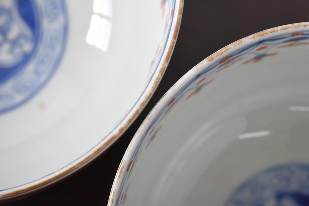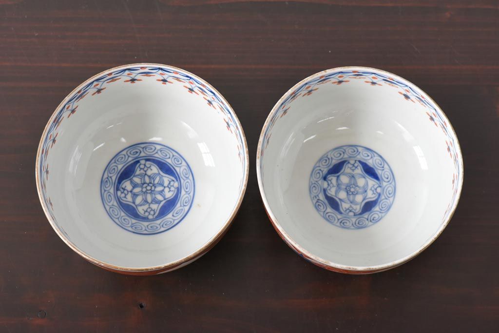 ラフジュ工房> 和食器・茶道具> お椀・茶碗 > 江戸期 大明成化年製 古伊万里 赤絵南蛮図染付 蓋茶碗2個セット(2)