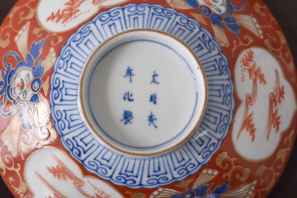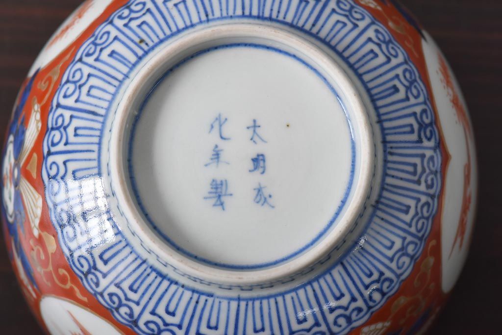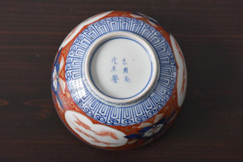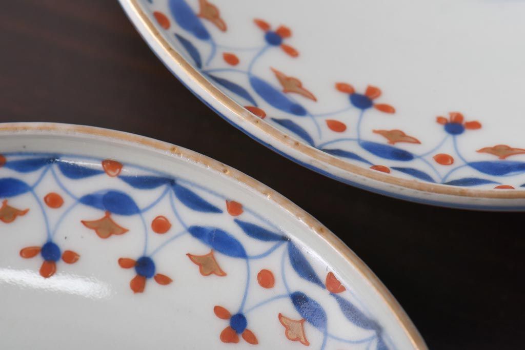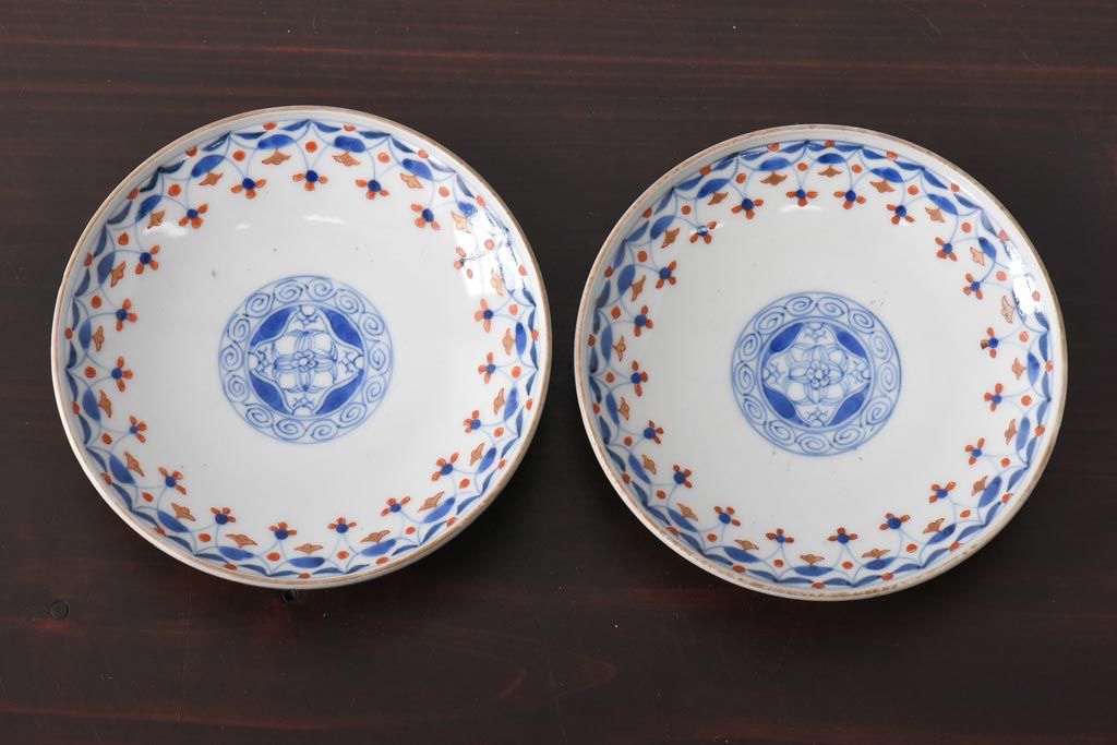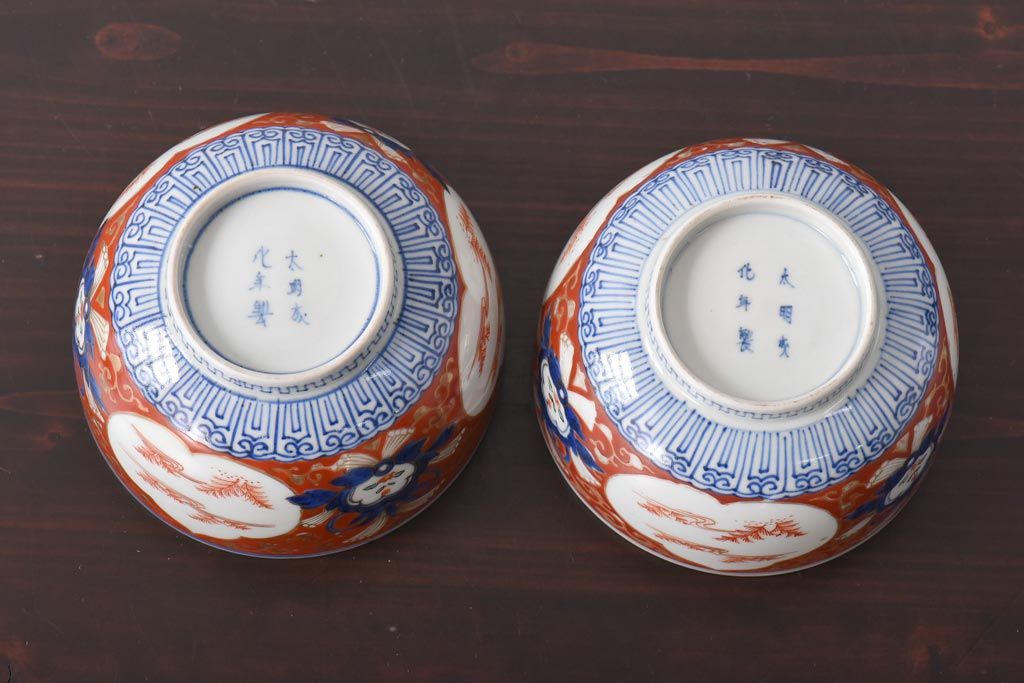 ラフジュ工房> 和食器・茶道具 > 江戸期 大明成化年製 古伊万里 赤絵南蛮図染付 蓋茶碗2個セット(2)