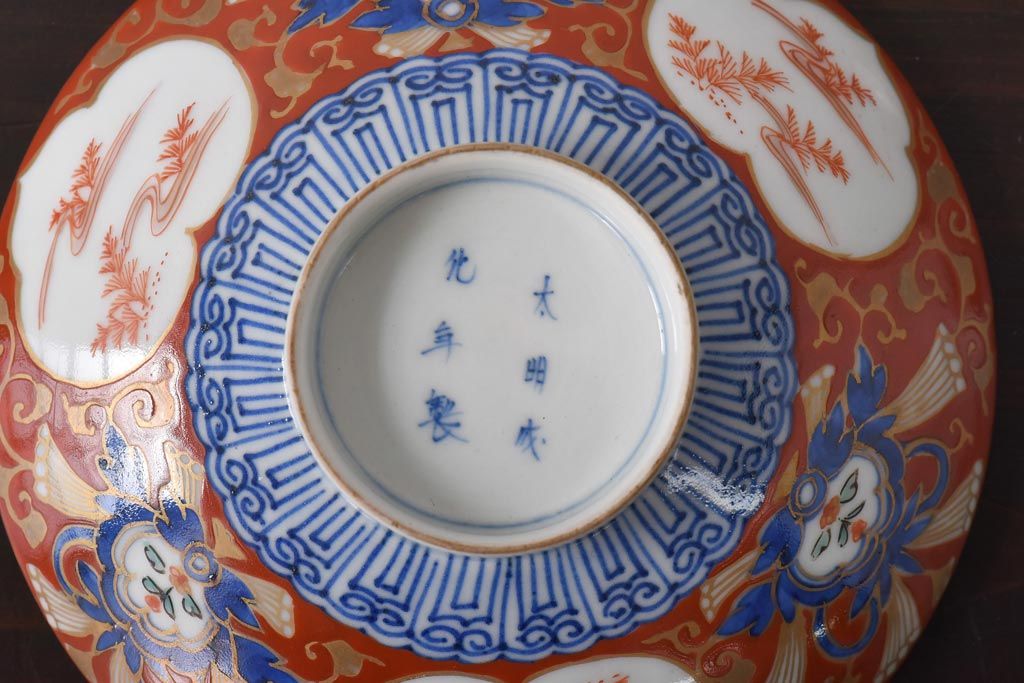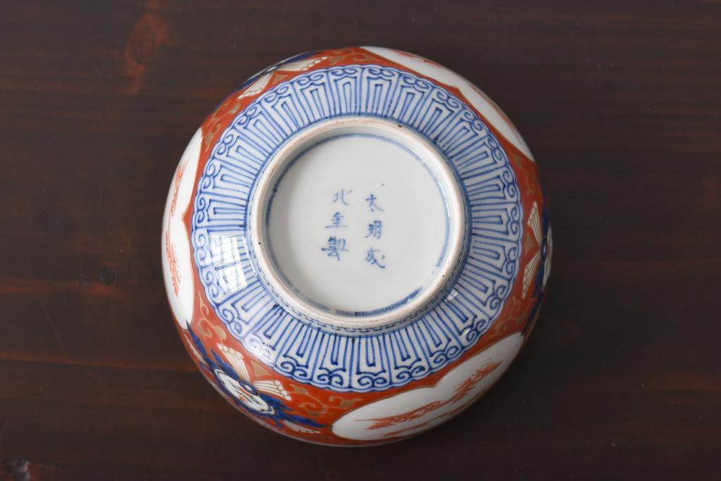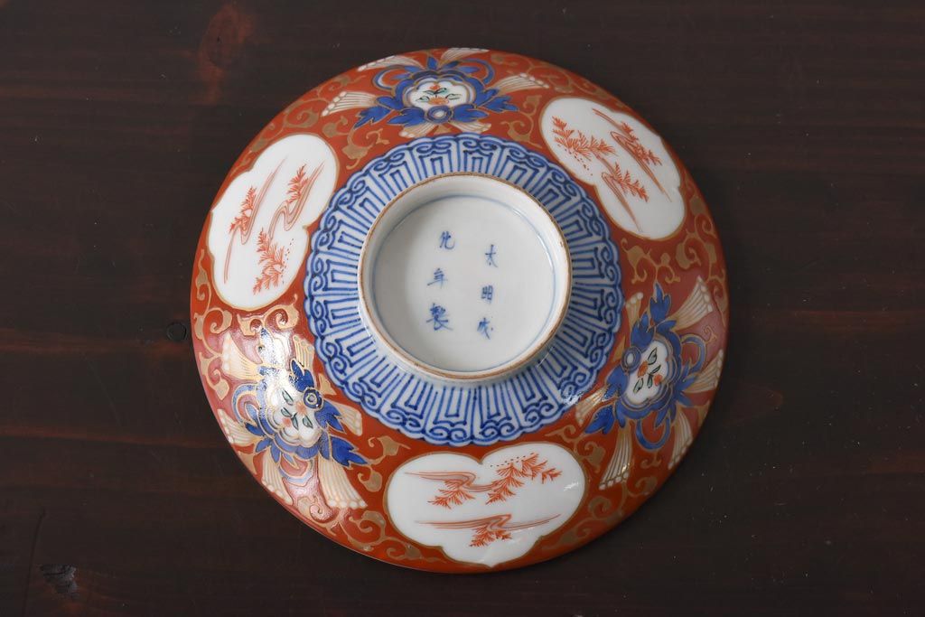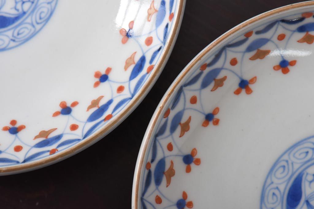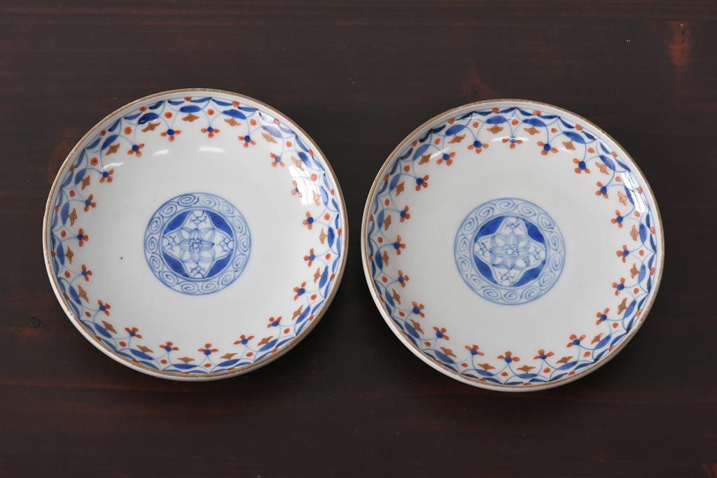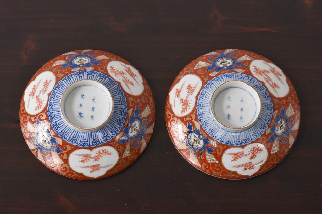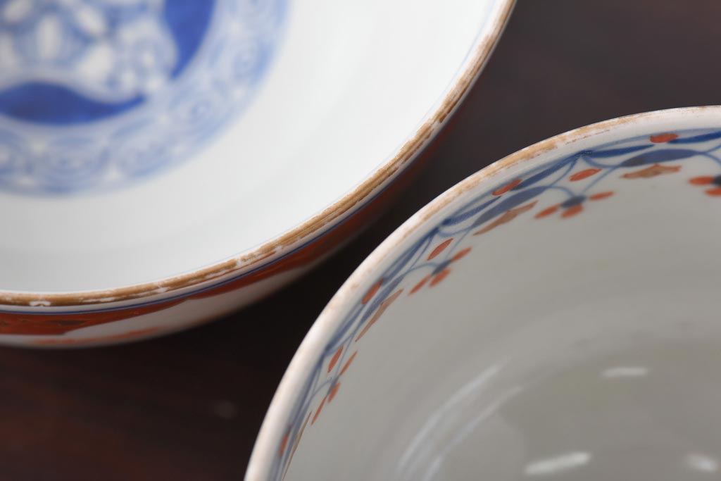 ラフジュ工房> 和食器・茶道具 > 江戸期 大明成化年製 古伊万里 赤絵南蛮図染付 蓋茶碗2個セット(1)