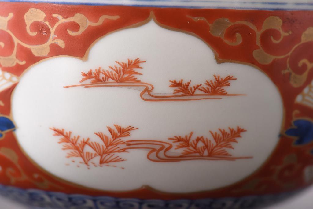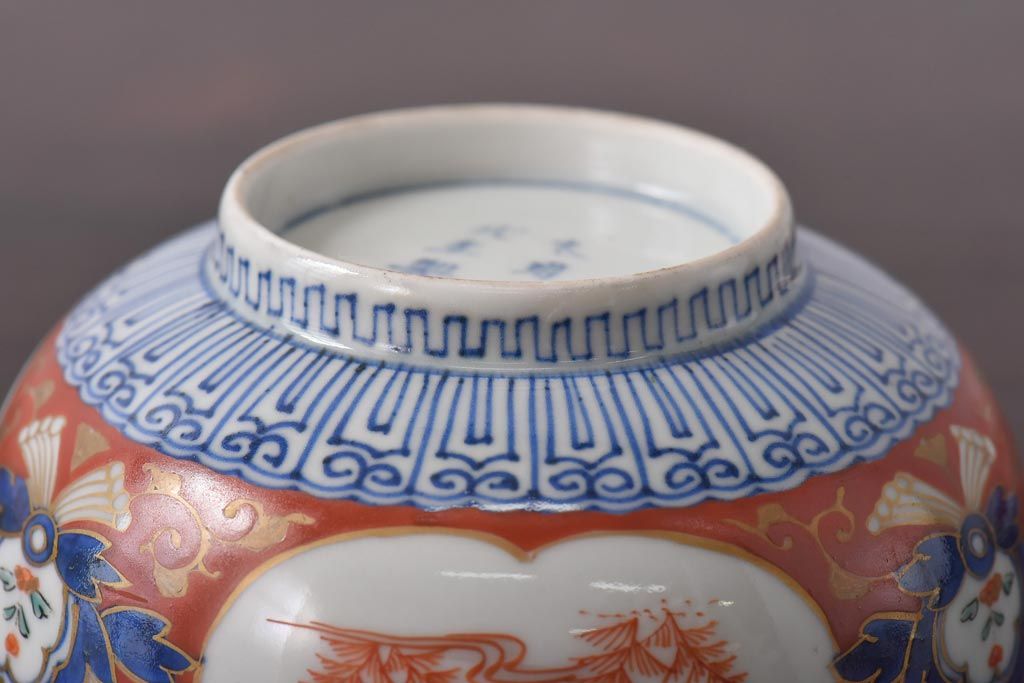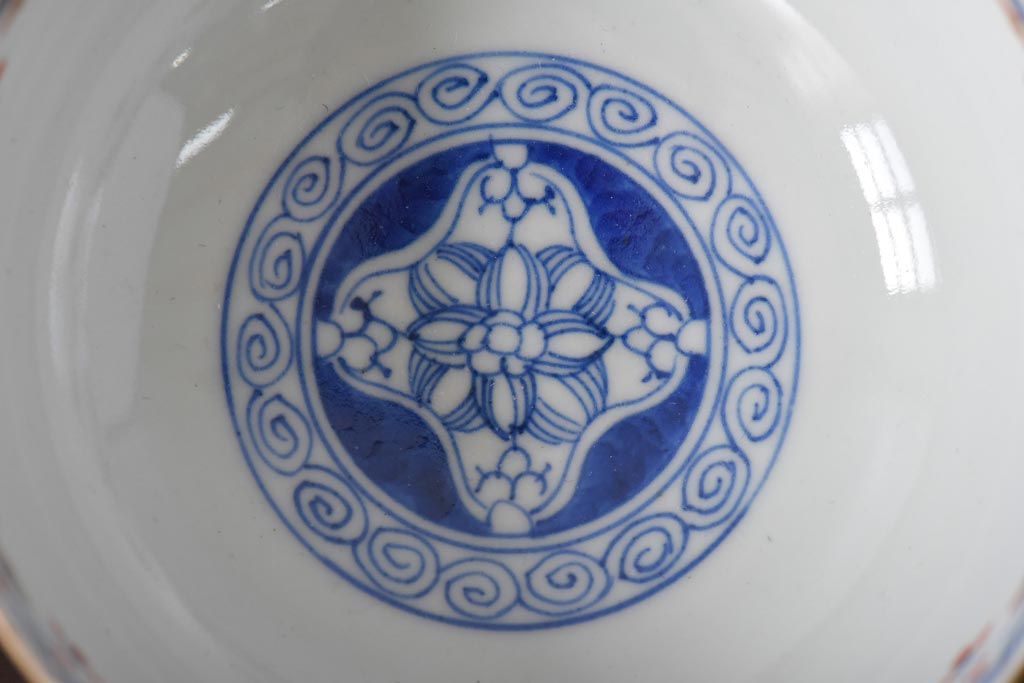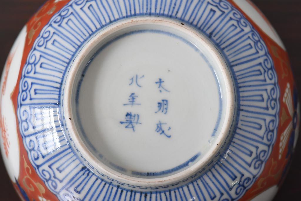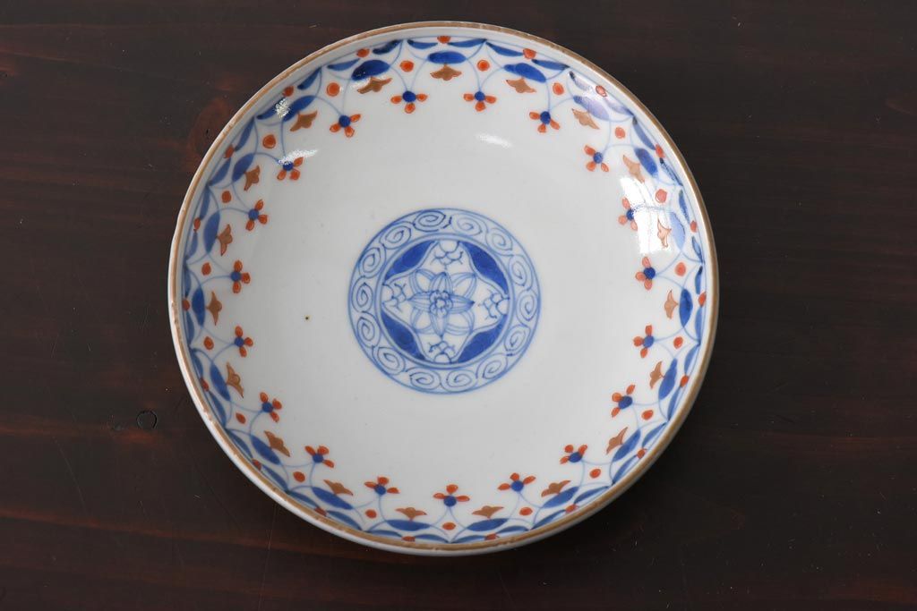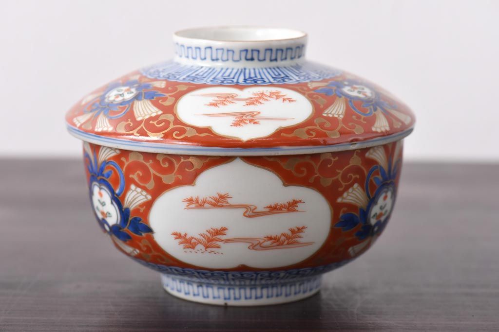 ラフジュ工房> 骨董・美術品> 骨董-陶磁器 > 江戸期 大明成化年製 古伊万里 赤絵南蛮図染付 蓋茶碗2個セット(1)