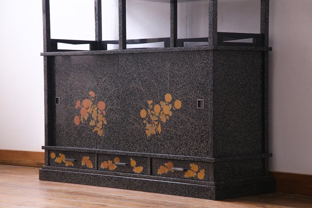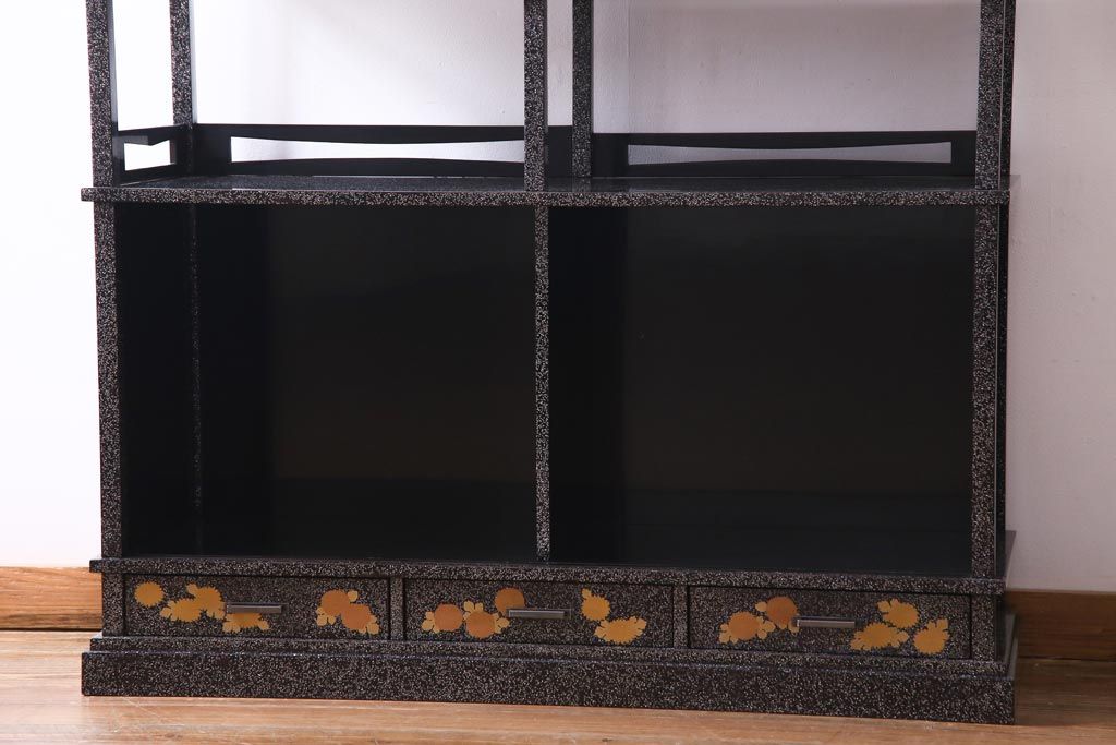 民芸家具 > アンティーク家具 最高級品! 漆塗り 煌びやかな意匠が目を引く総散螺鈿蒔絵飾り棚 (R-034689)