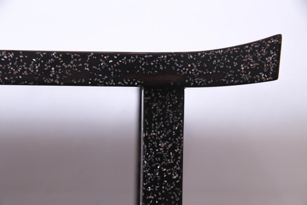 貝殻を薄く加工したものを1枚ずつ貼り付け研ぎ出した、「螺鈿」が施された贅沢かつ非常に繊細なお品です。