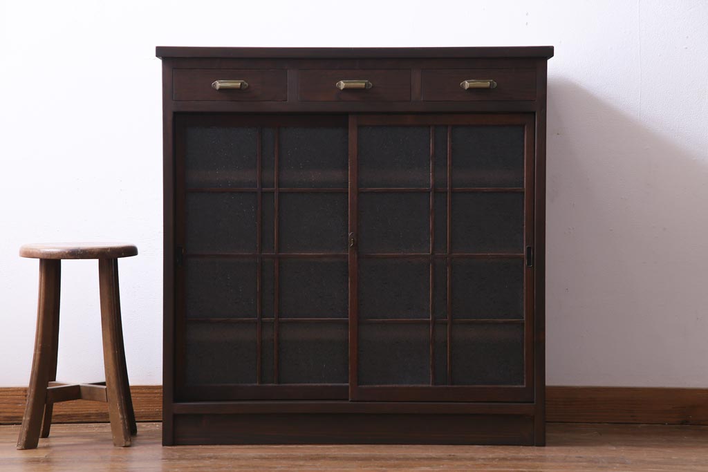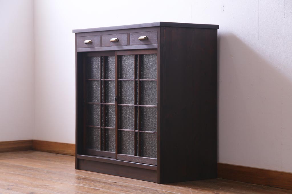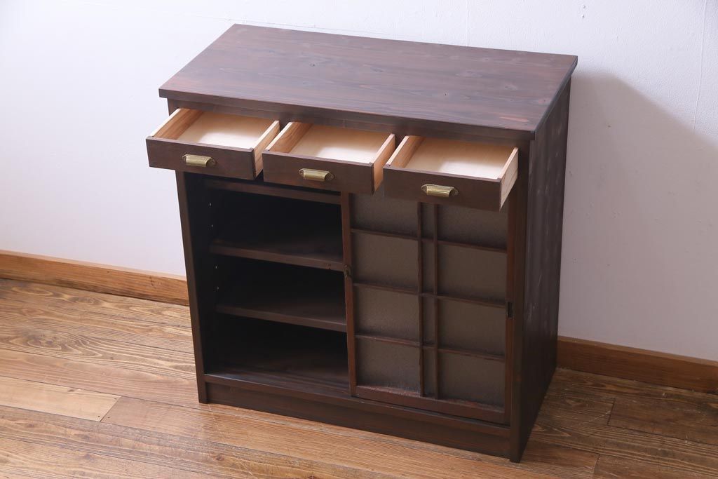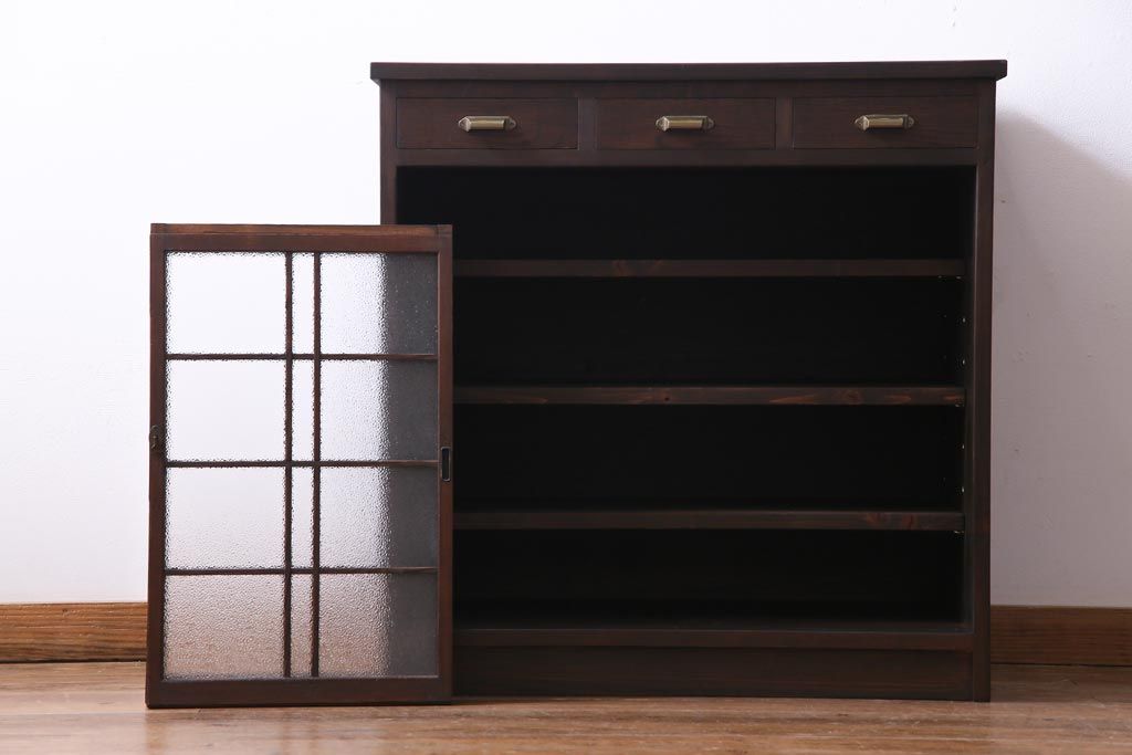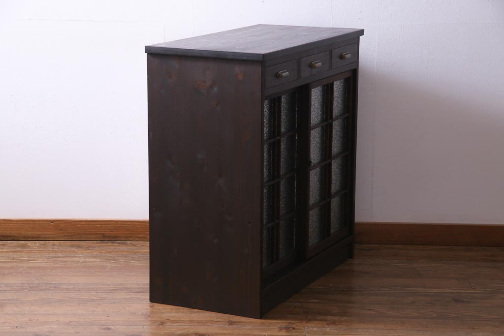 ラフジュ工房オリジナル ダイヤガラス ノスタルジックな佇まいがお洒落なリメイク収納棚(戸棚、サイドボード)