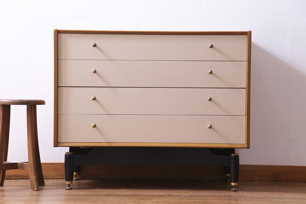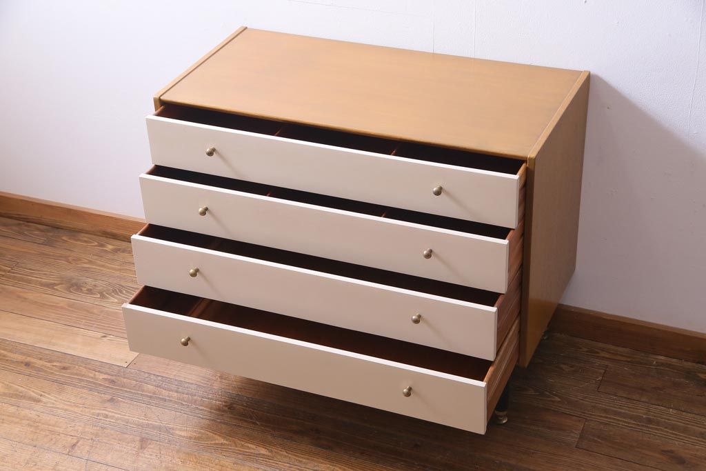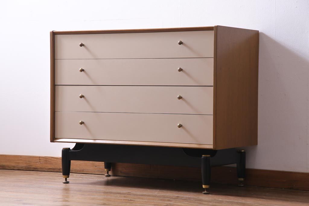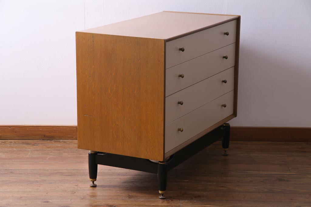 ヴィンテージ家具 北欧ビンテージ イギリス製 G-PLAN サニーオーク&チャイニーズホワイト 4段チェスト(引き出し)