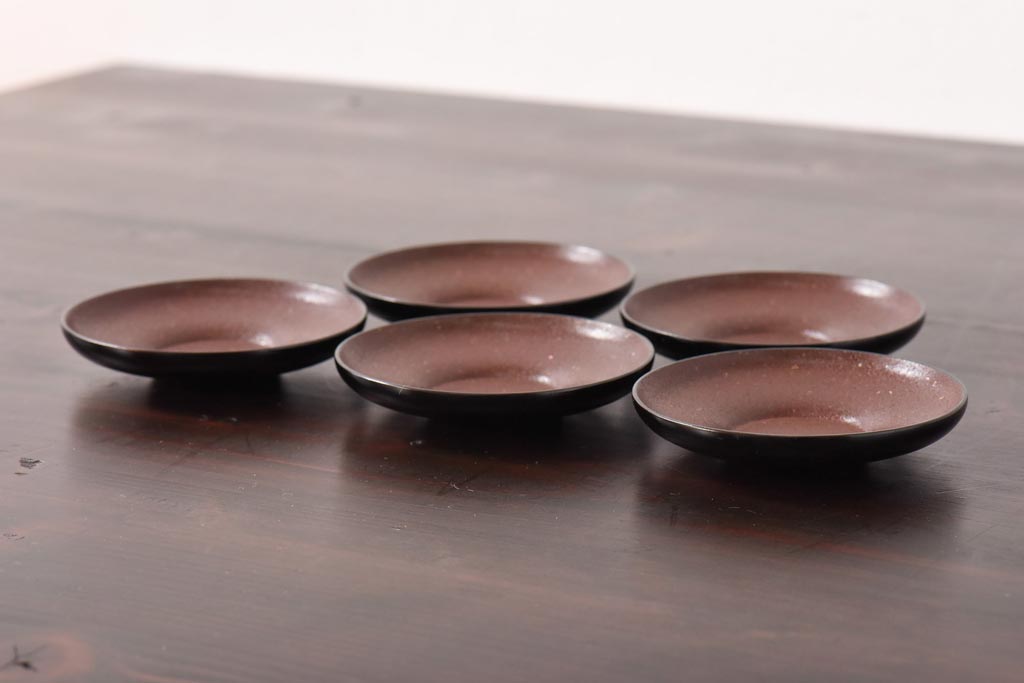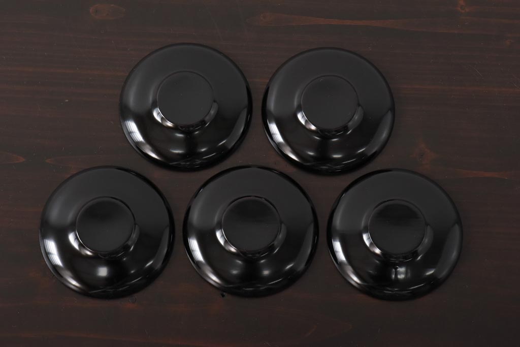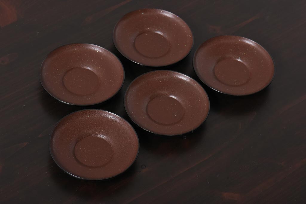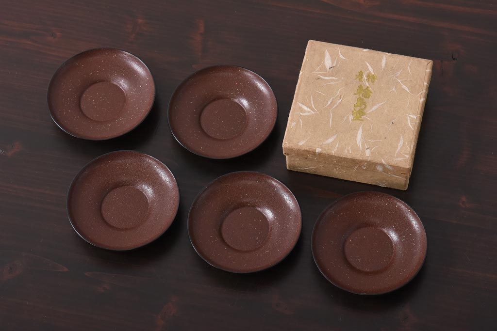 アンティーク雑貨 和製アンティーク 石目塗り 味のある風合いに仕上げられた輪島塗の茶托5客セット(漆器)