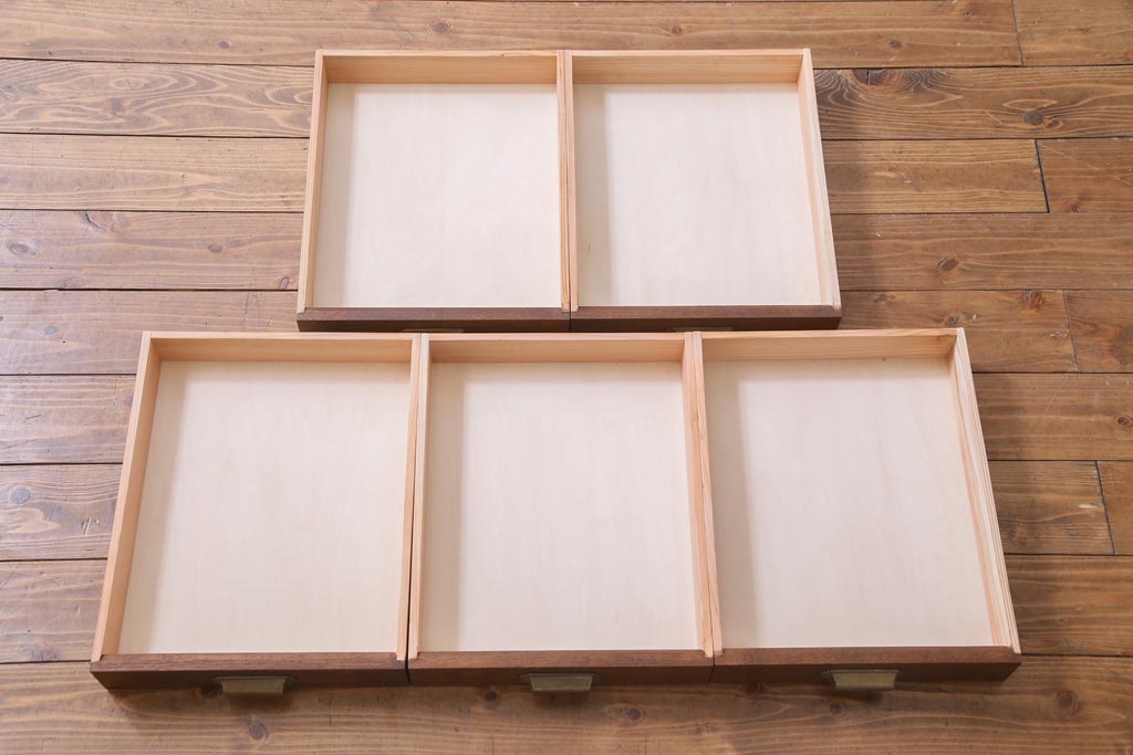 薄い引き出しが5杯付いているので、
