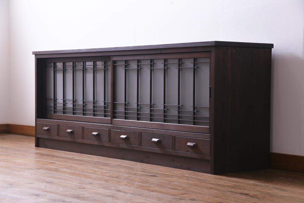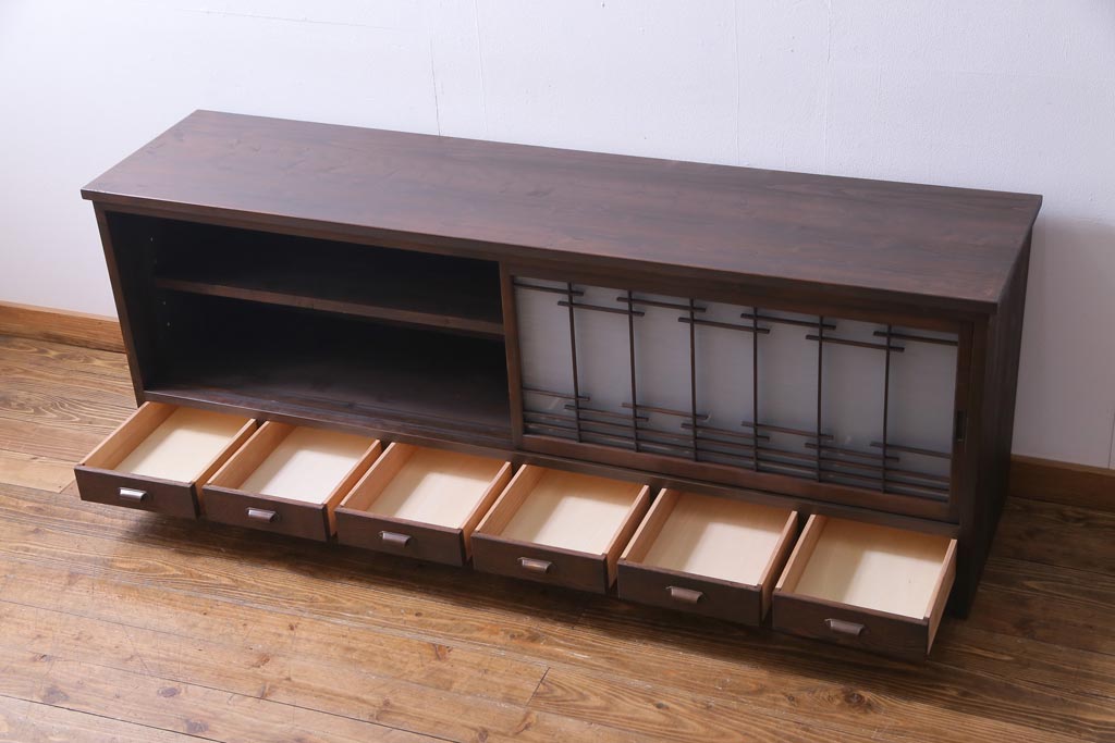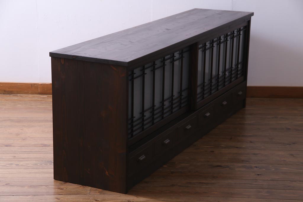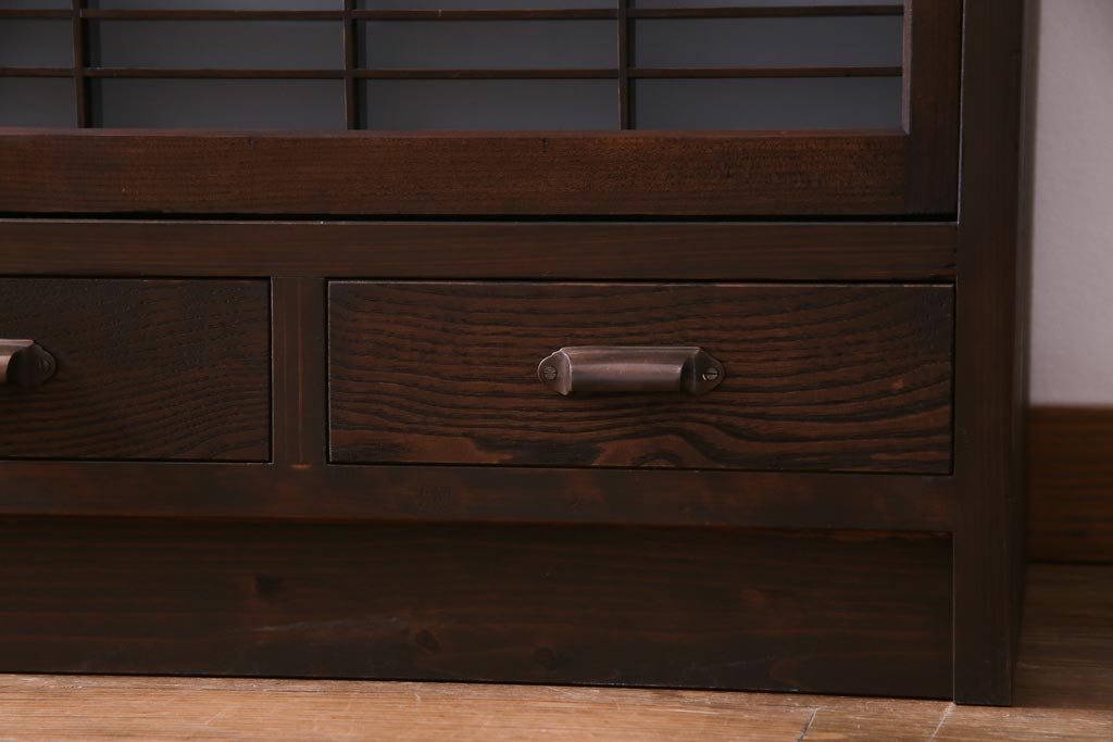 ラフジュ工房オリジナル 引き出し付き 和の風情を感じる古建具をリメイクした戸棚(収納棚、リビングボード)