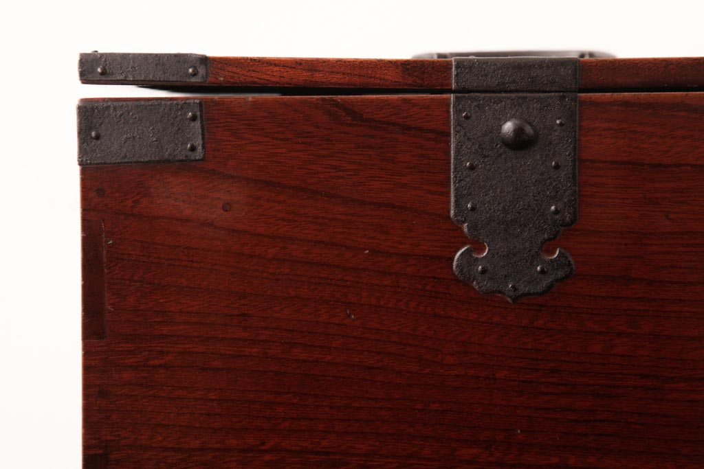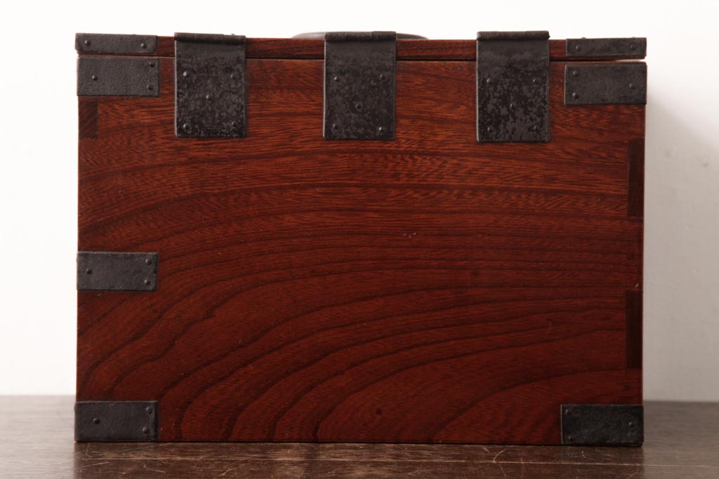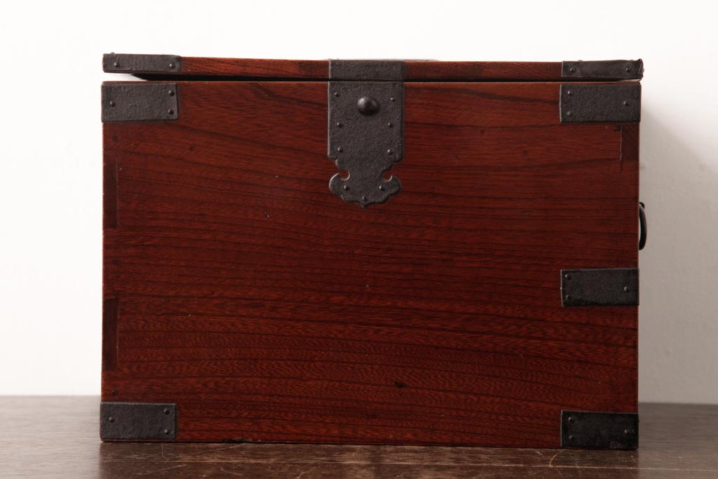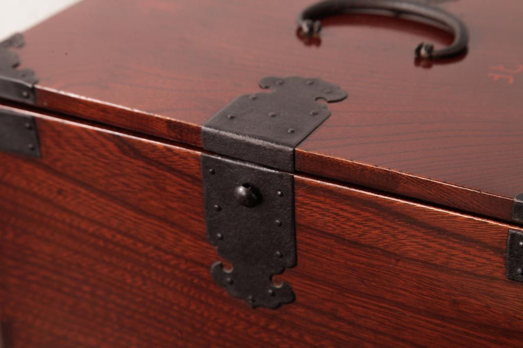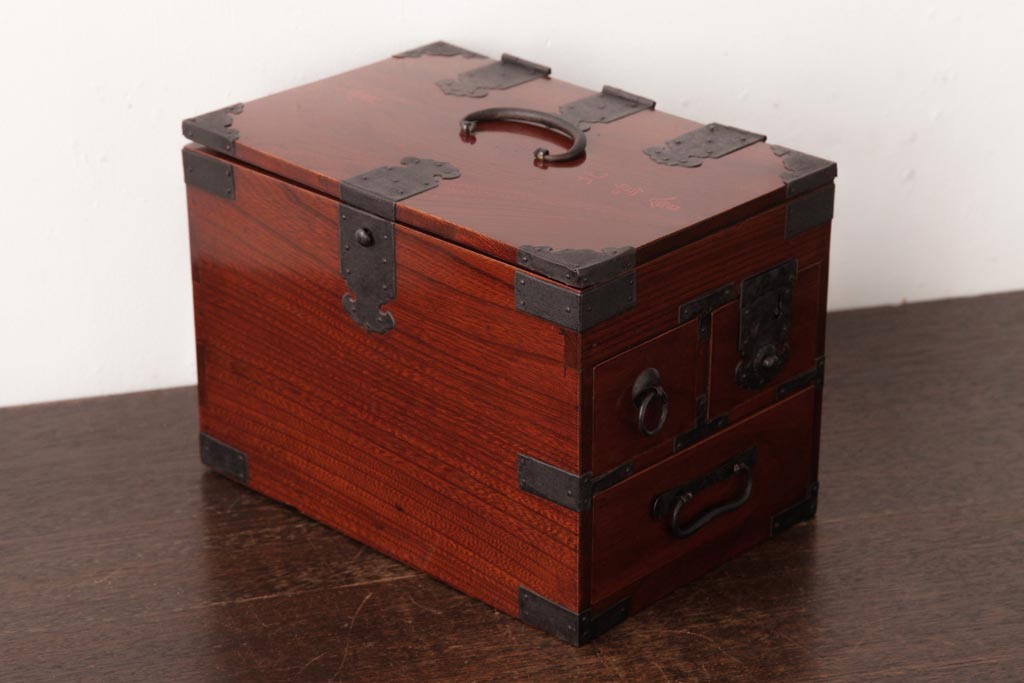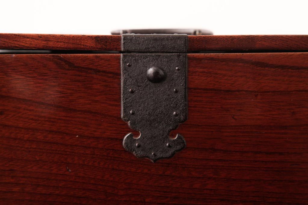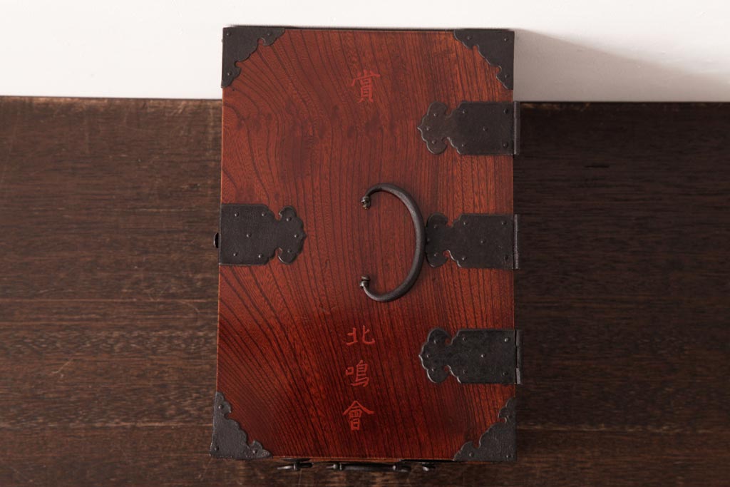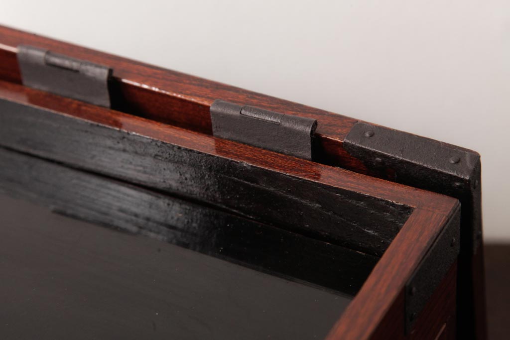 和箪笥> 船箪笥 > アンティーク雑貨 古民具・骨董 極美品 総ケヤキ材 漆の光沢が美しい硯箱(船箪笥、懸硯、木箱)