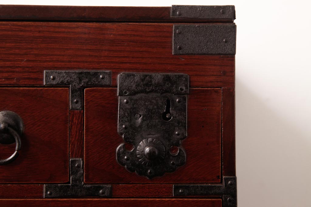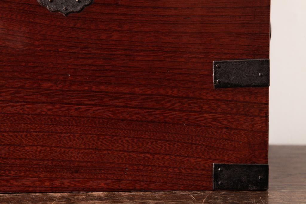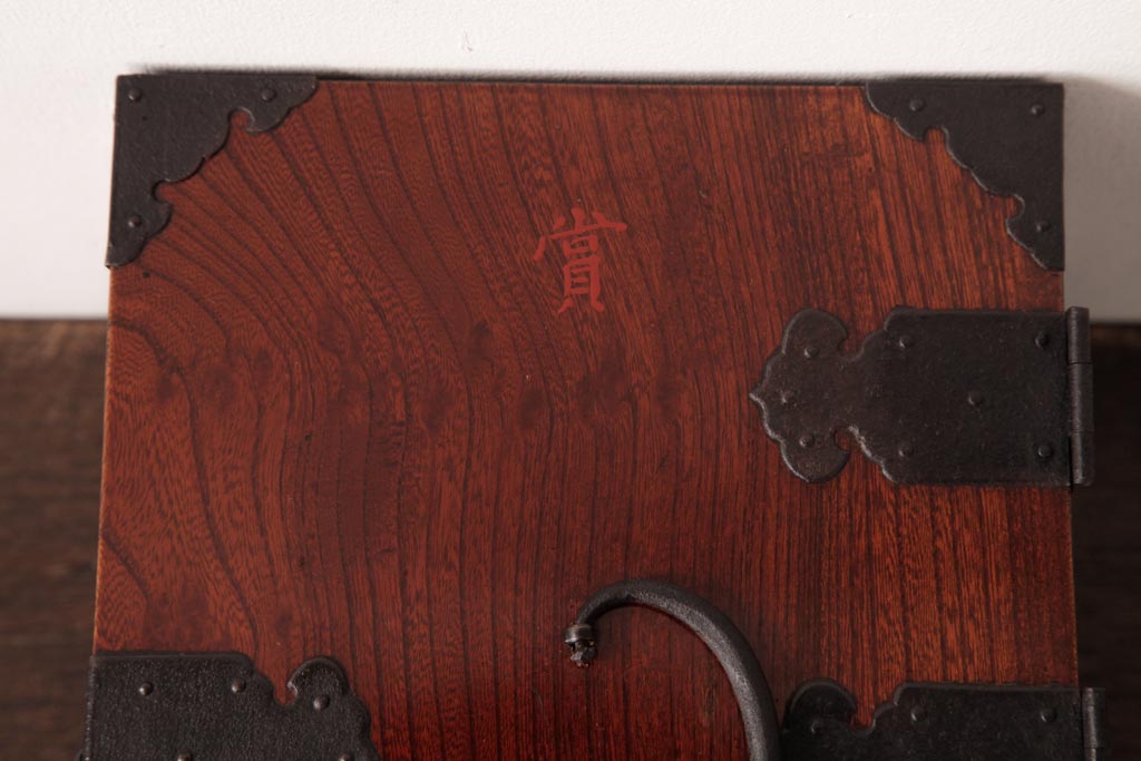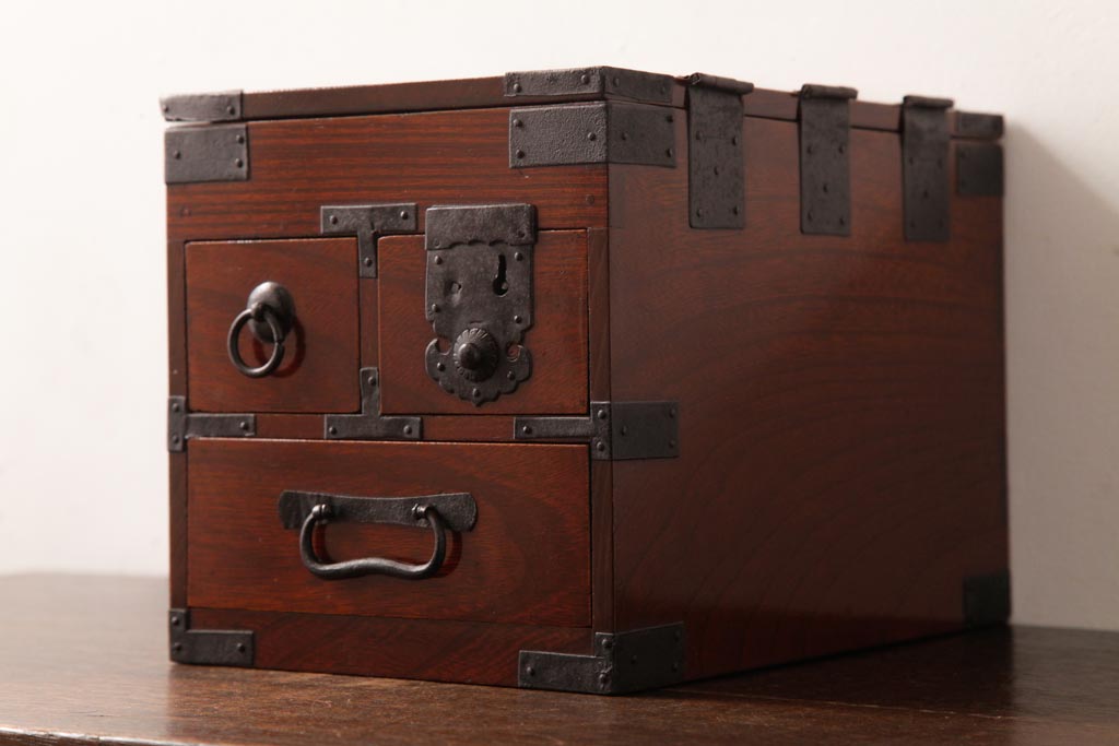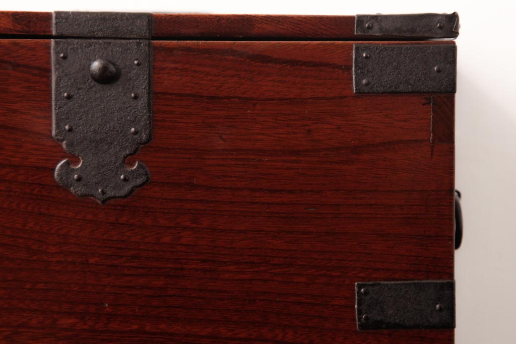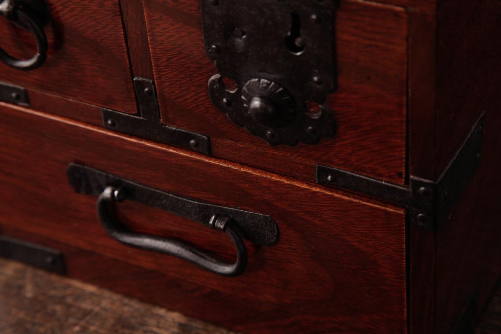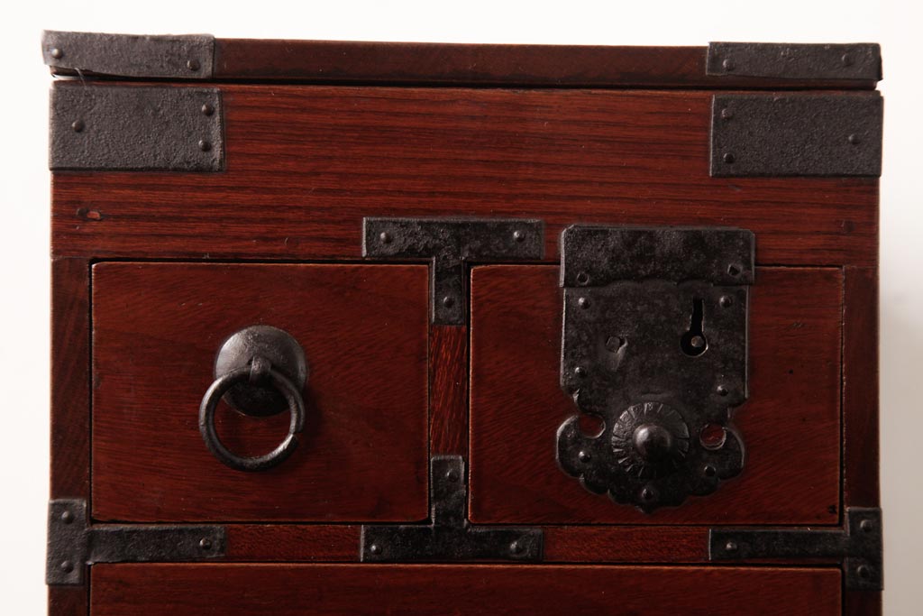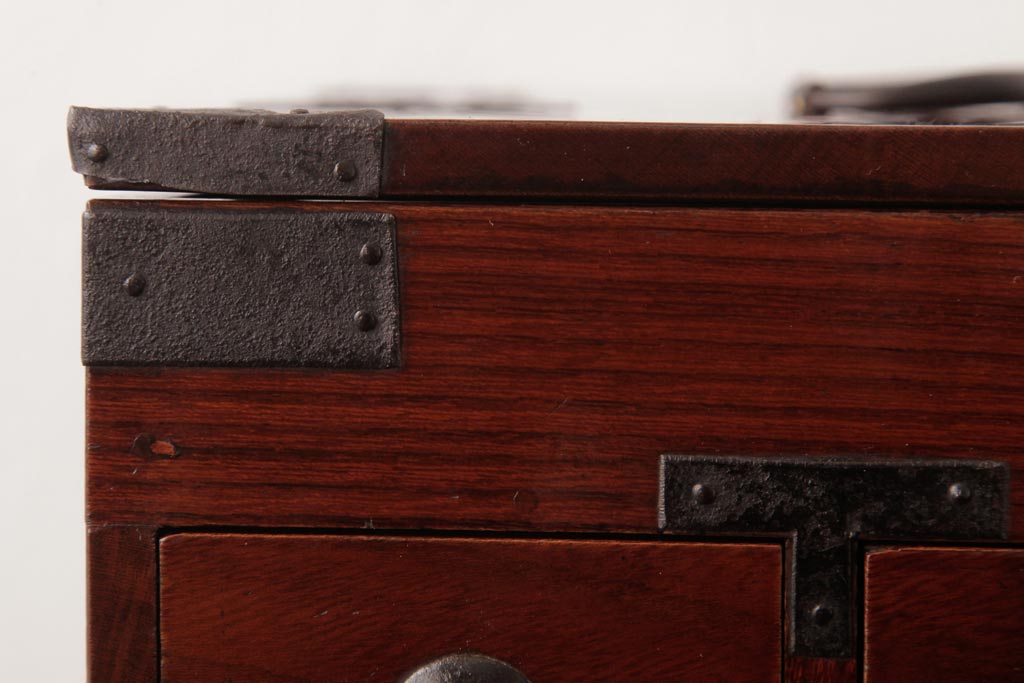 和箪笥> 船箪笥 > アンティーク雑貨 古民具・骨董 極美品 総ケヤキ材 漆の光沢が美しい硯箱(船箪笥、懸硯、木箱)