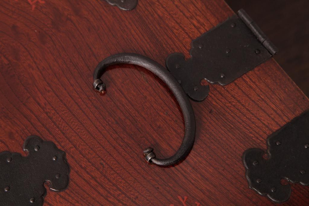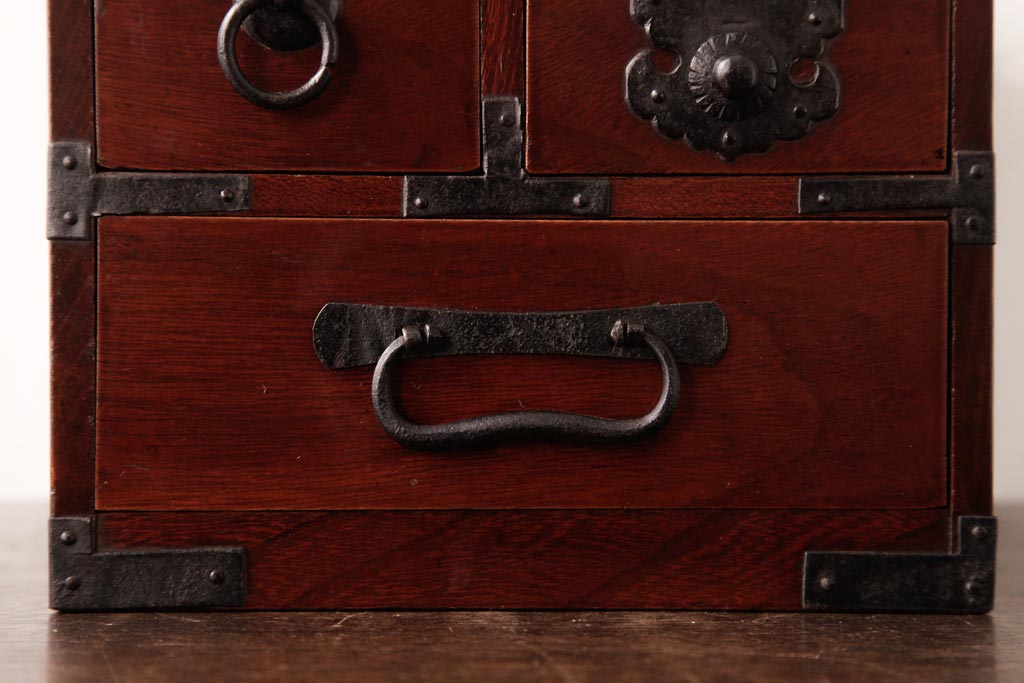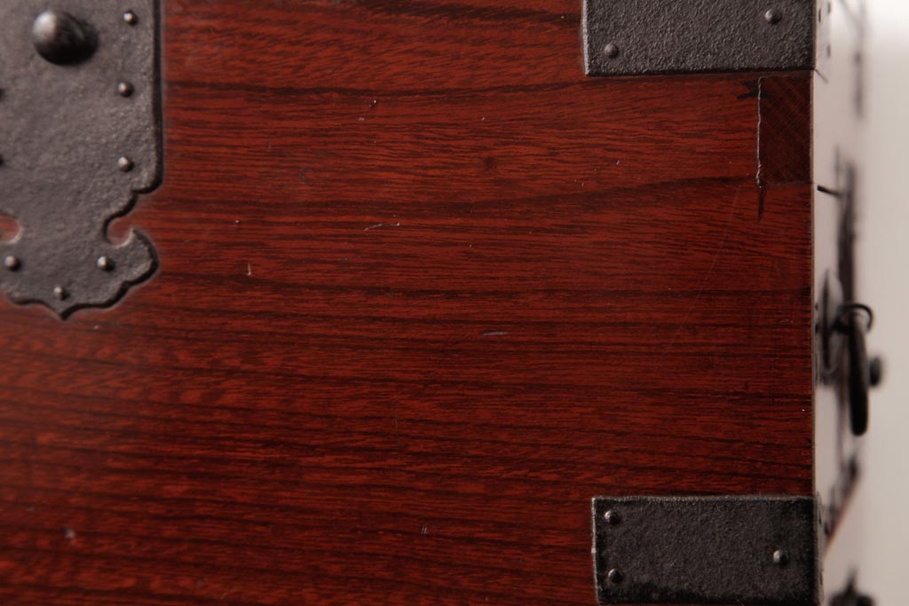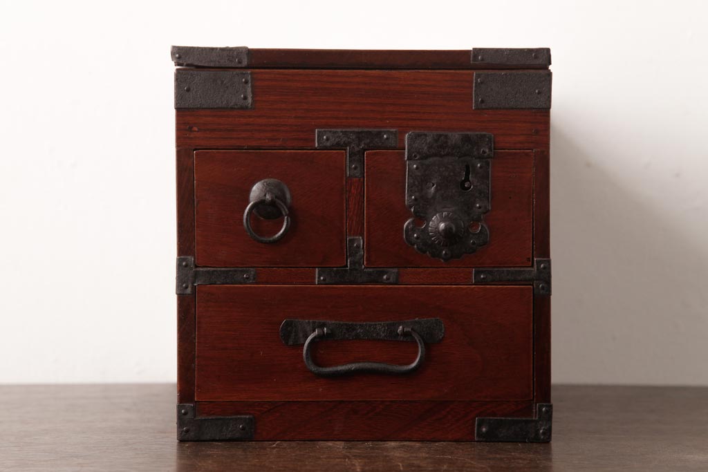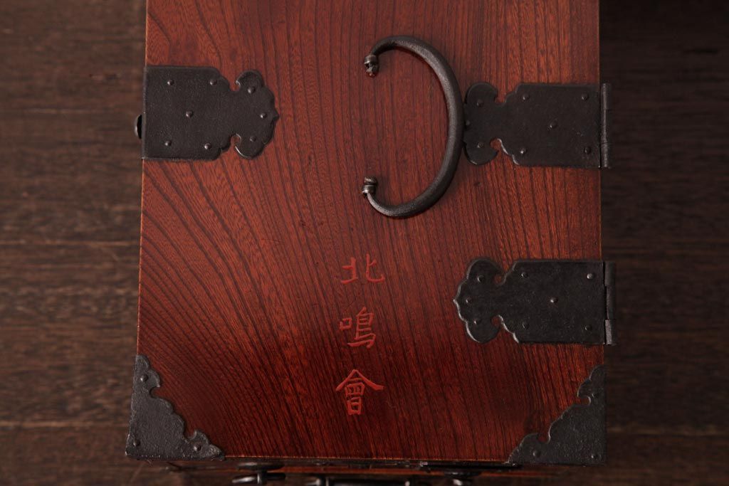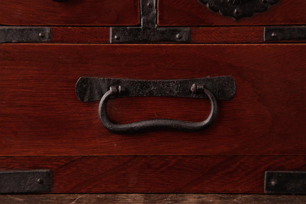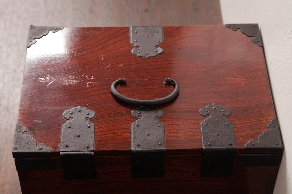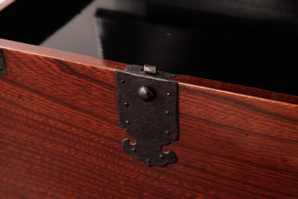 和箪笥> 船箪笥 > アンティーク雑貨 古民具・骨董 極美品 総ケヤキ材 漆の光沢が美しい硯箱(船箪笥、懸硯、木箱)