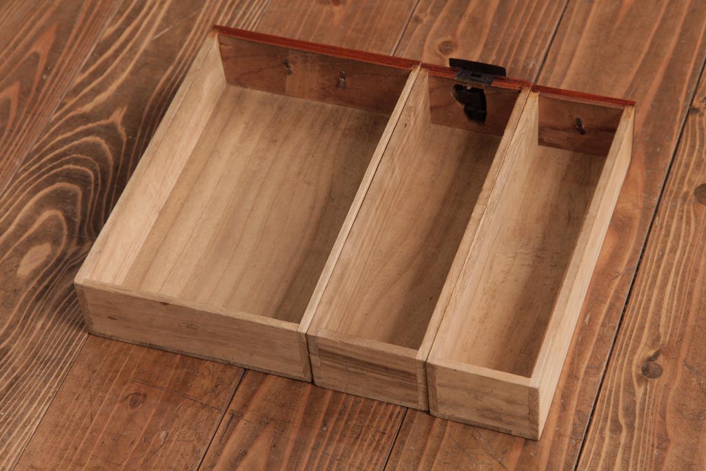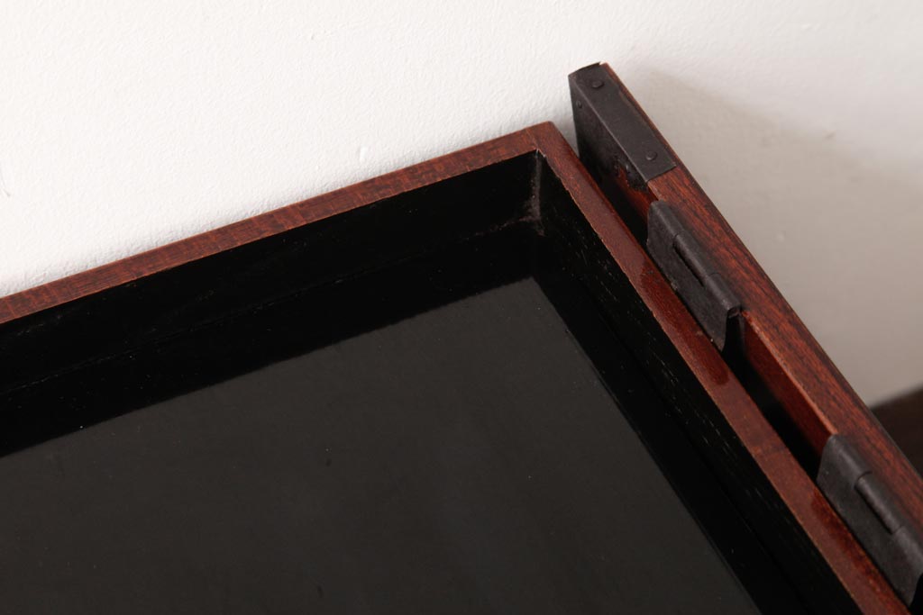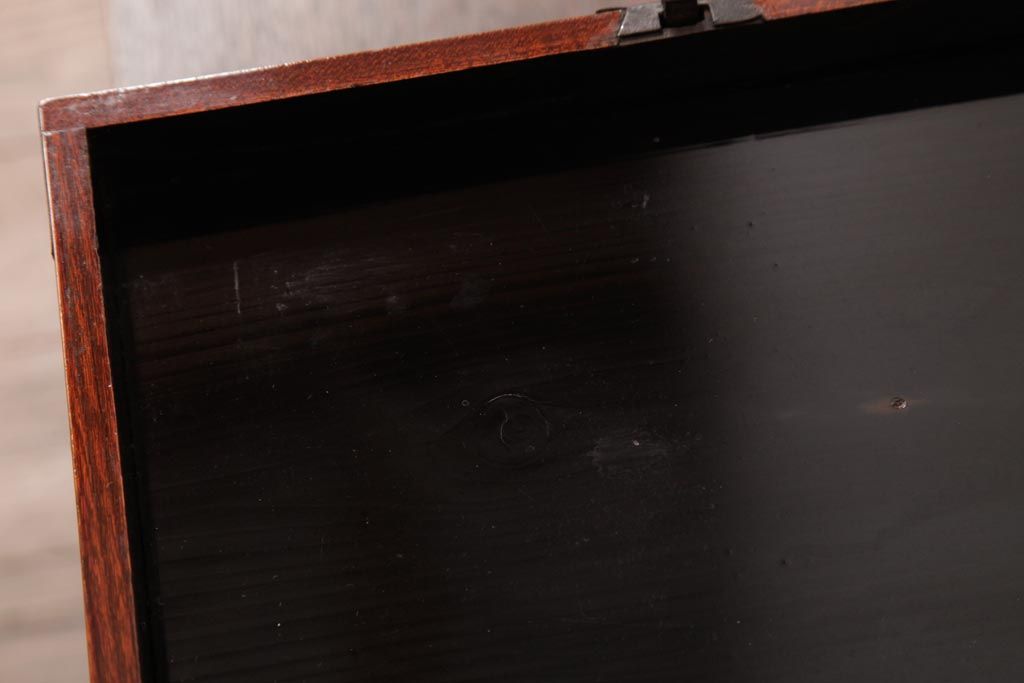 小物収納・トランク> 木箱 > アンティーク雑貨 古民具・骨董 極美品 総ケヤキ材 漆の光沢が美しい硯箱(船箪笥、懸硯、木箱)