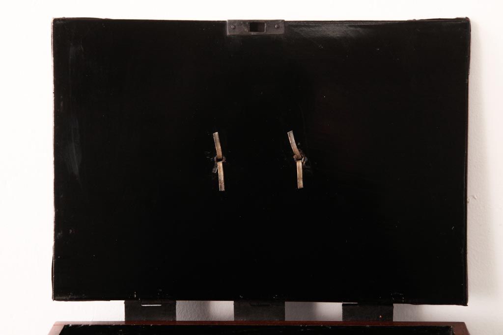 骨董・美術品> 書道具 > アンティーク雑貨 古民具・骨董 極美品 総ケヤキ材 漆の光沢が美しい硯箱(船箪笥、懸硯、木箱)