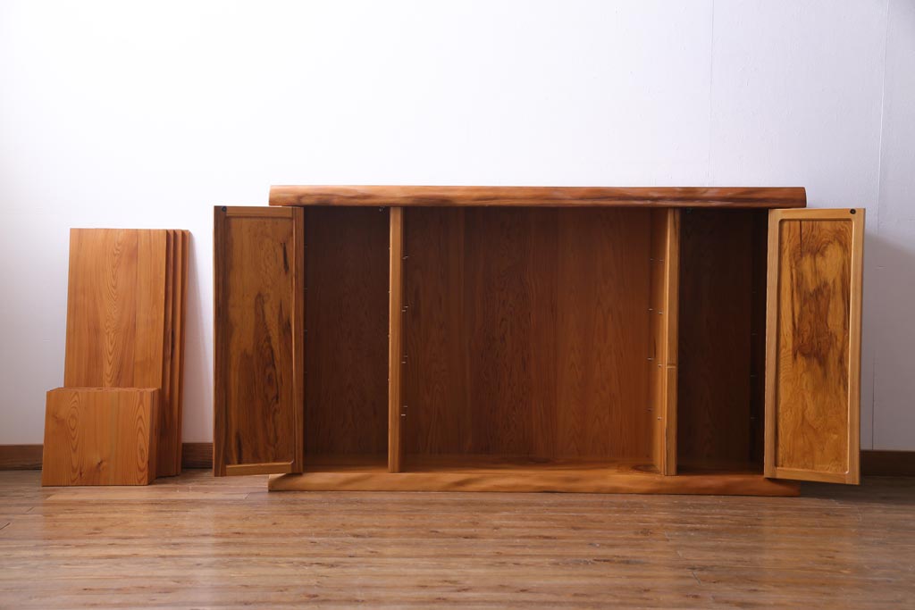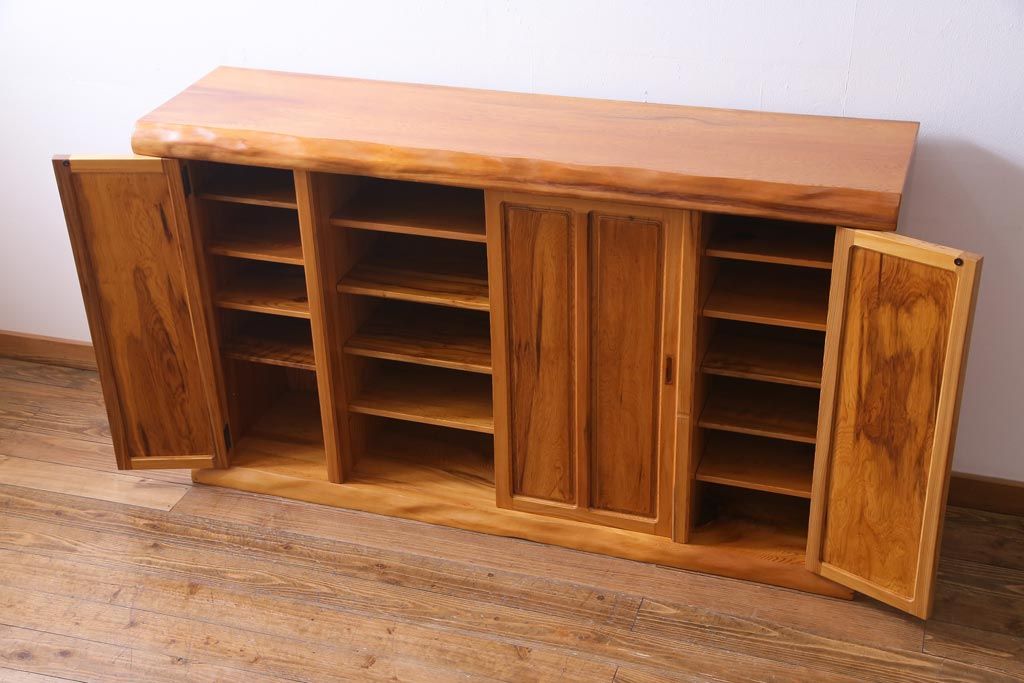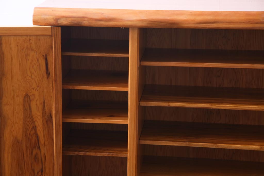 ラフジュ工房> 民芸家具 > 中古 民芸家具 屋久杉 堂々たる佇まいが目を引く収納棚(サイドボード、下駄箱)(定価約200万円)