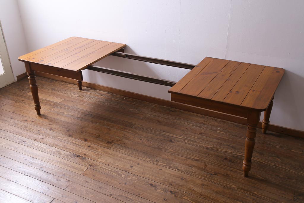中古 ETHAN ALLEN(イーセンアーレン) FARMHOUSE PINE カントリースタイルのダイニングテーブル(エクステンションテーブル)です。