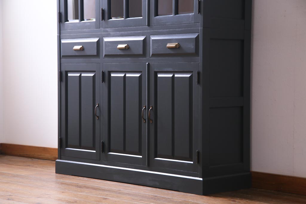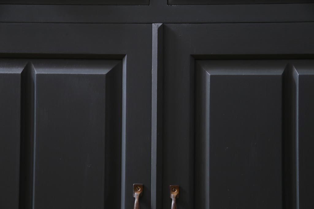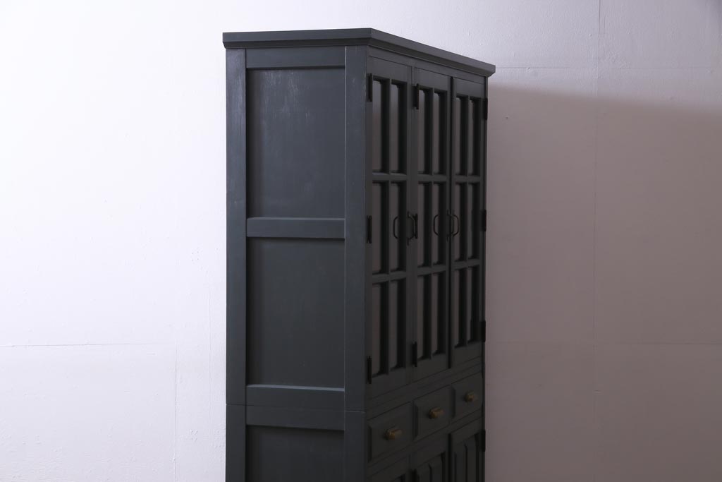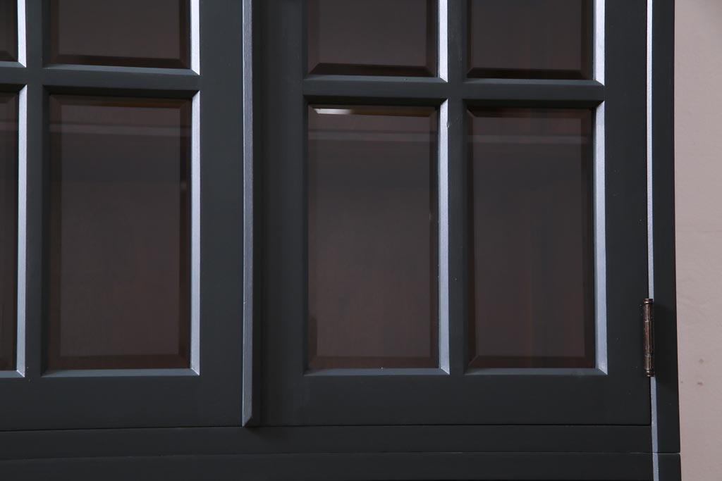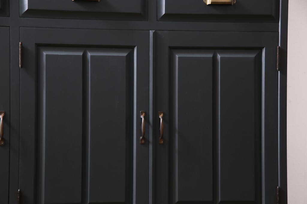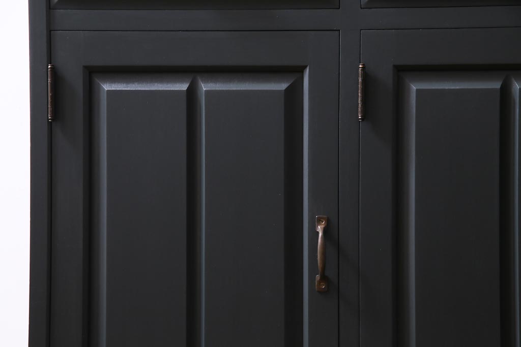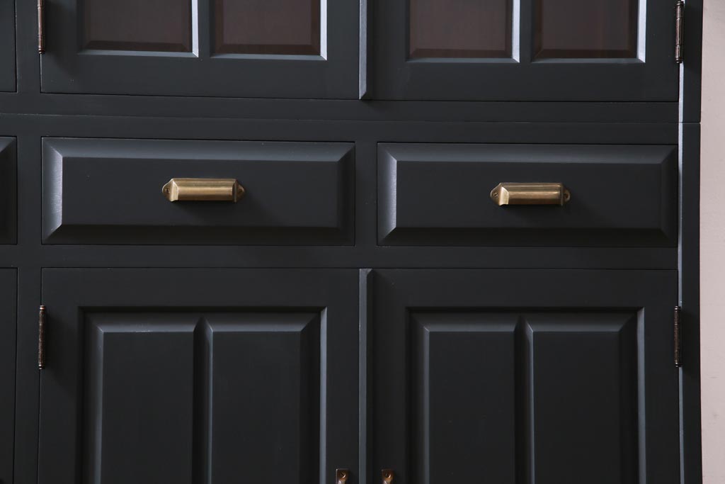 ペイント家具 当店リメイク 北海道民芸家具 収納力抜群!シックなキャビネット(カップボード、食器棚)です。