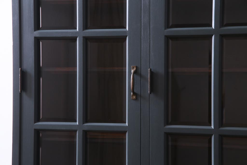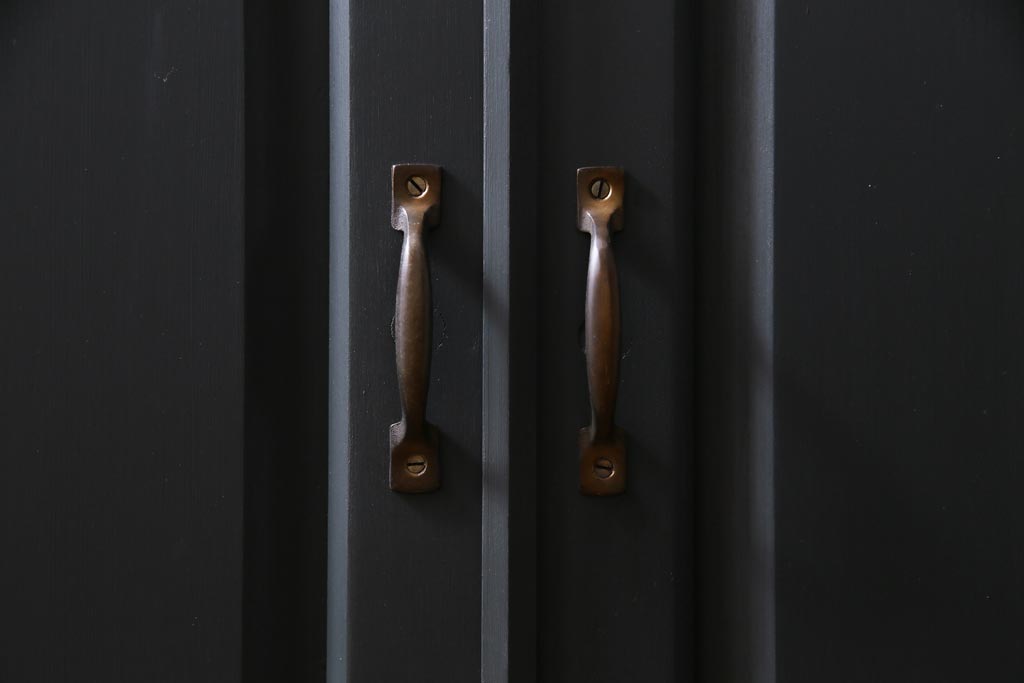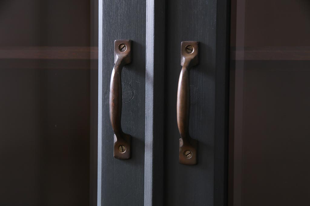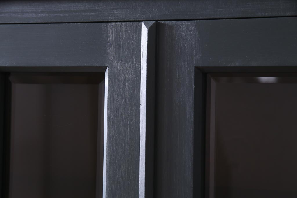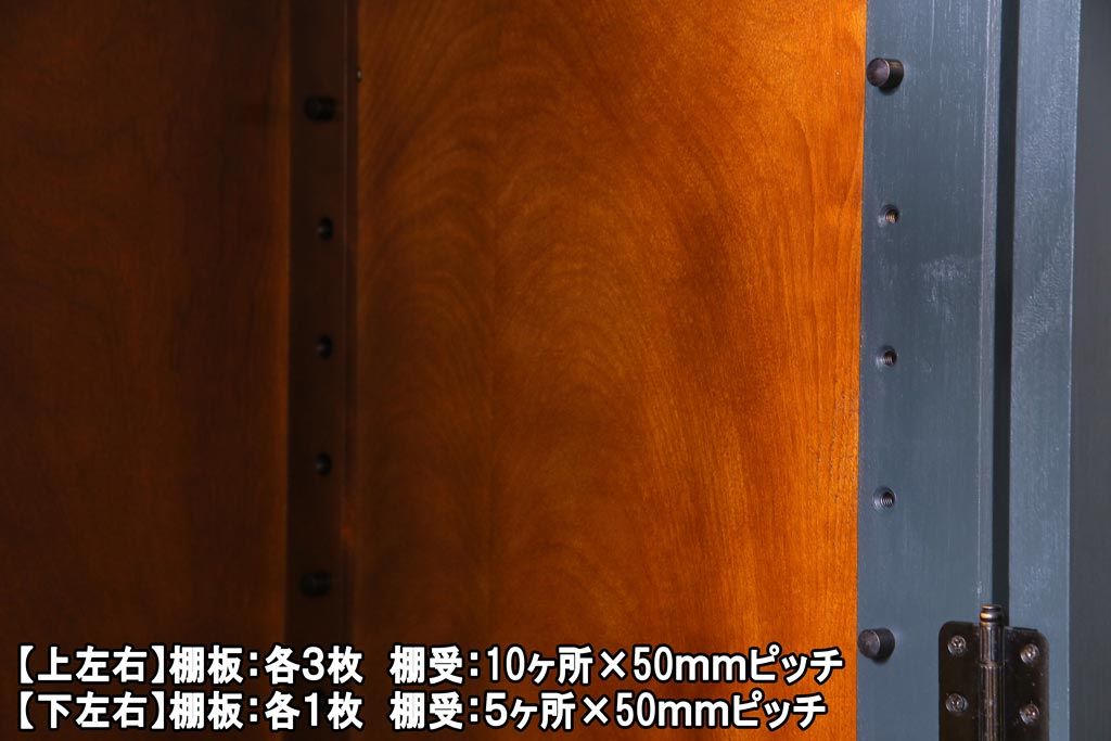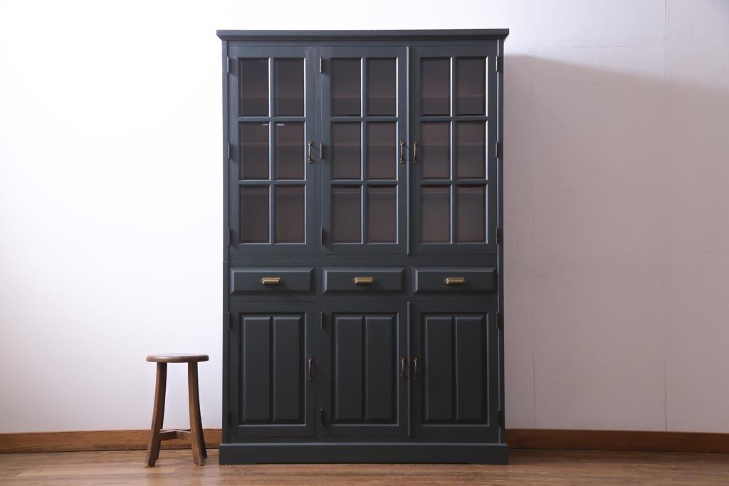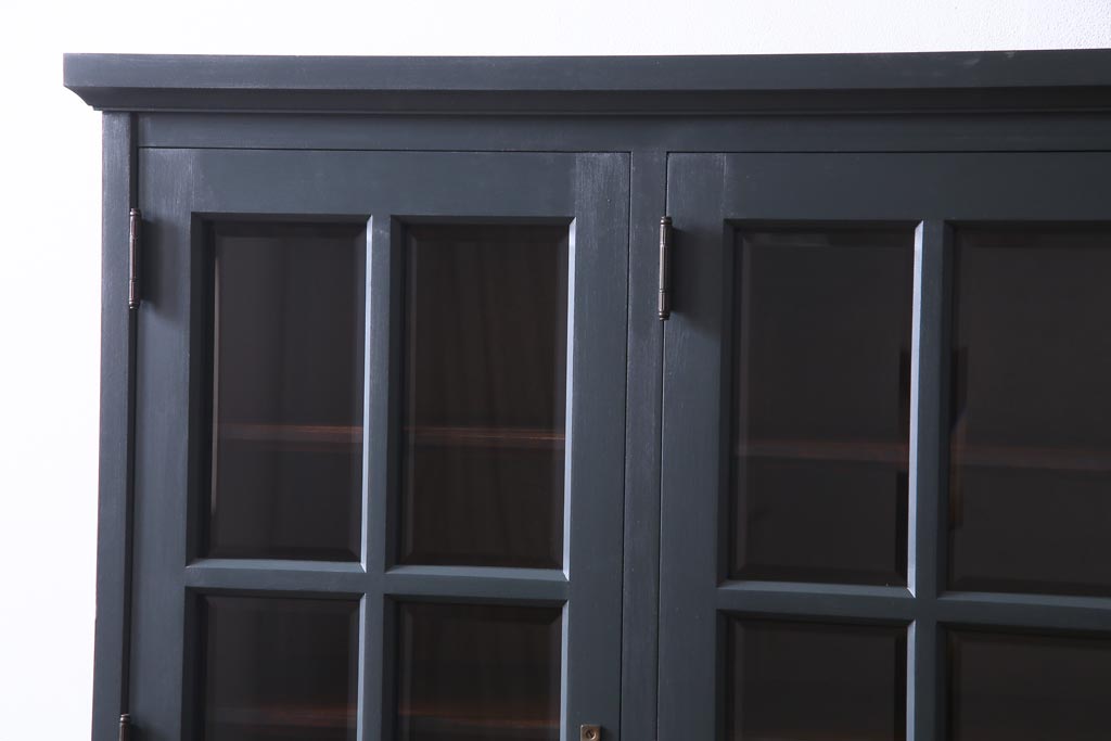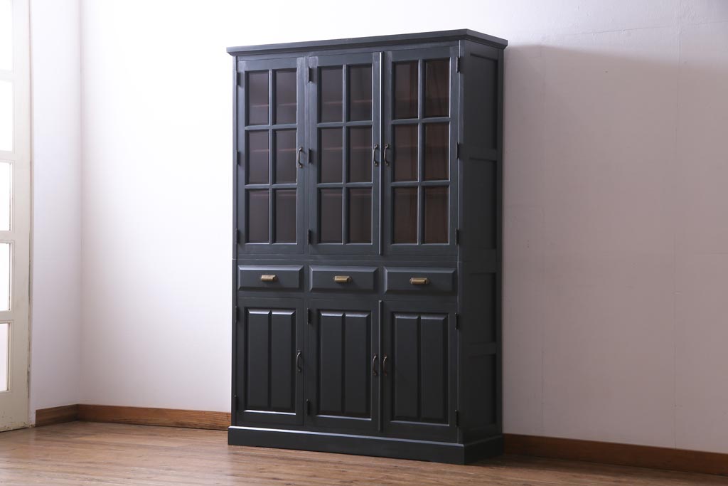 ペイント家具 当店リメイク 北海道民芸家具 収納力抜群!シックなキャビネット(カップボード、食器棚)です。
