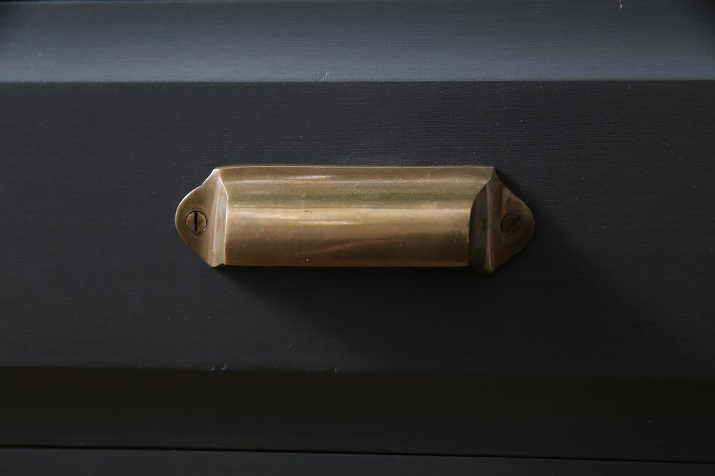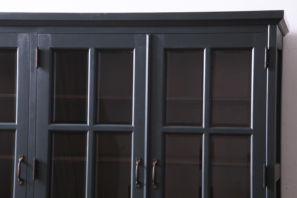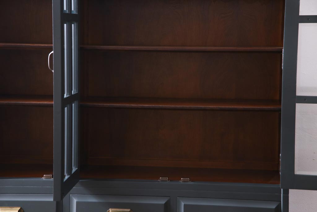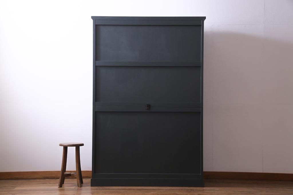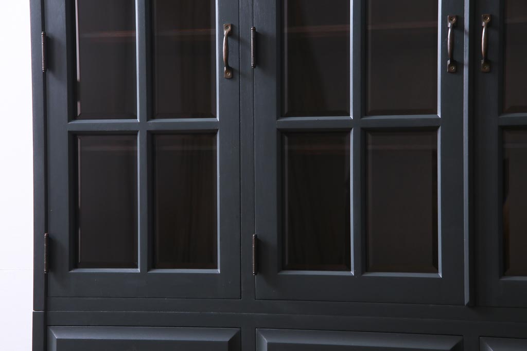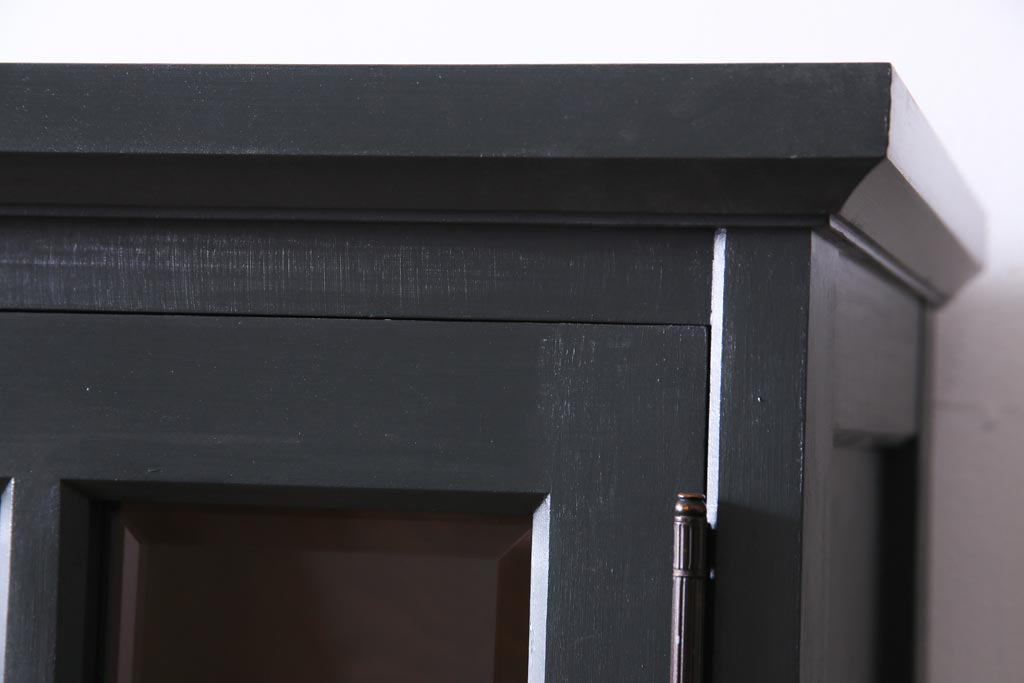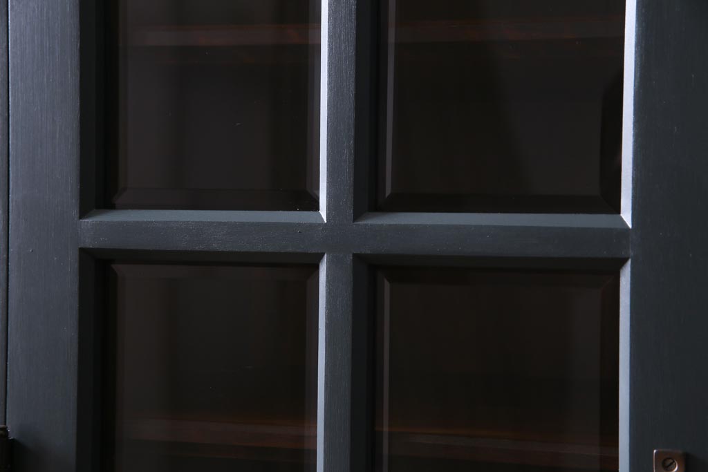 ペイント家具 当店リメイク 北海道民芸家具 収納力抜群!シックなキャビネット(カップボード、食器棚)です。