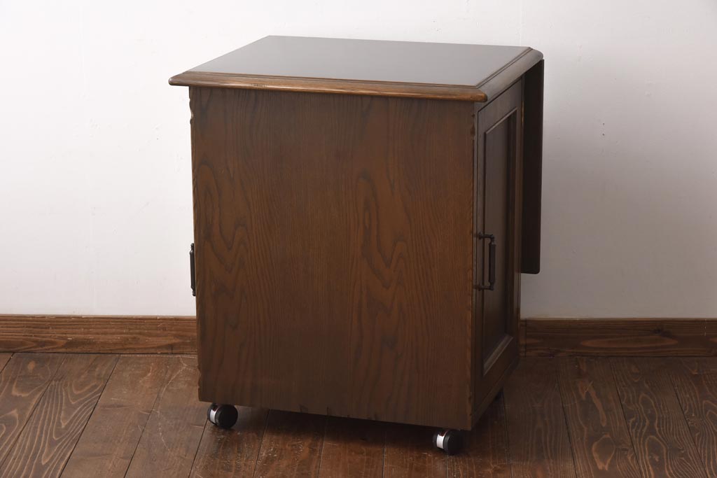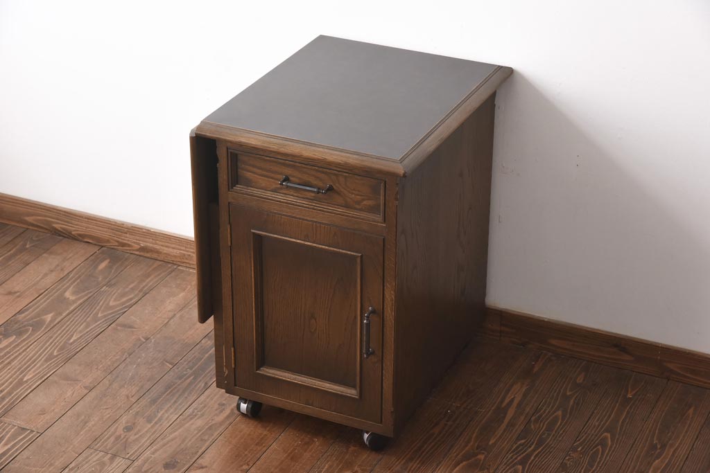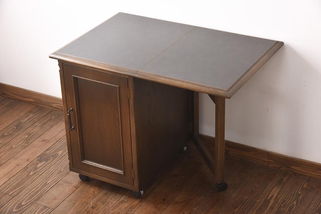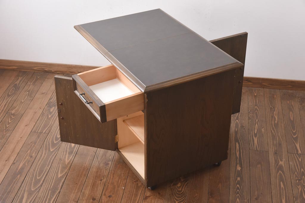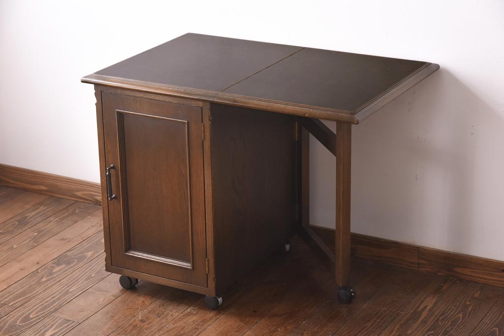 中古 神戸家具 永田良介商店 天板本革貼り 大人の高級感漂う袖机(バタフライテーブル)(定価28万円)