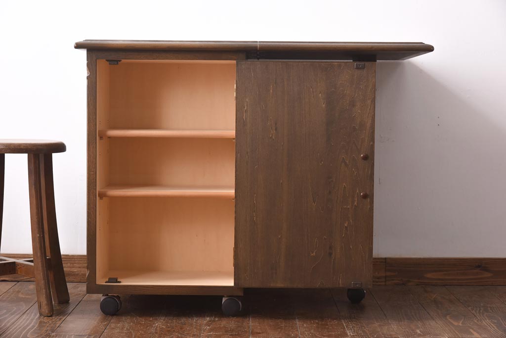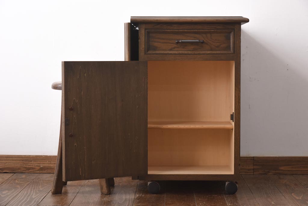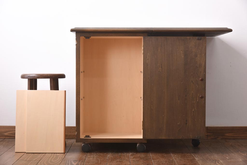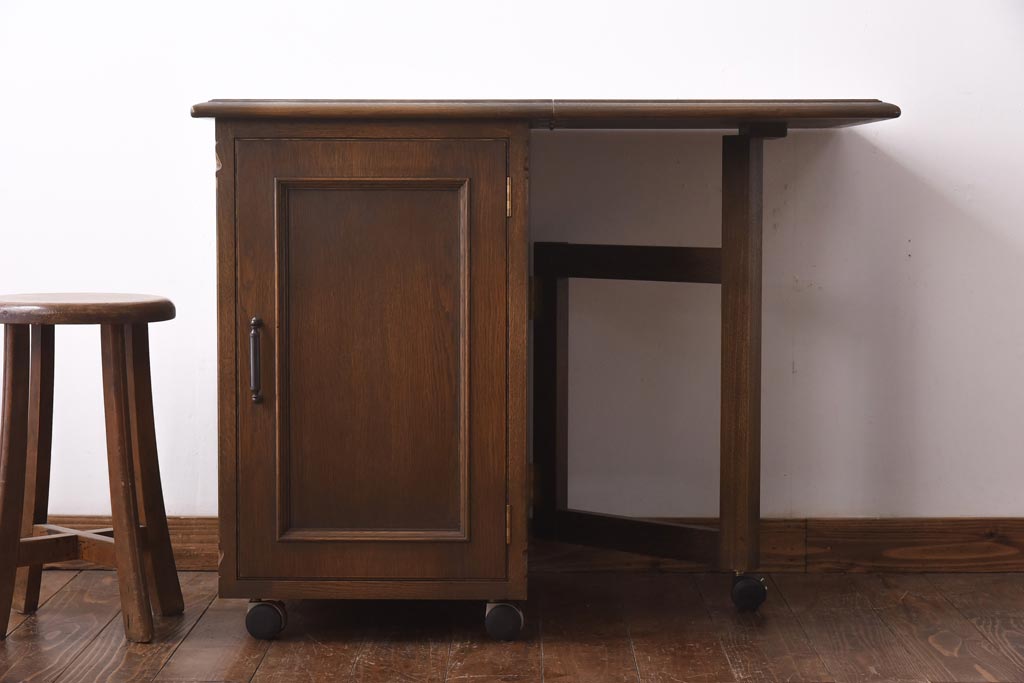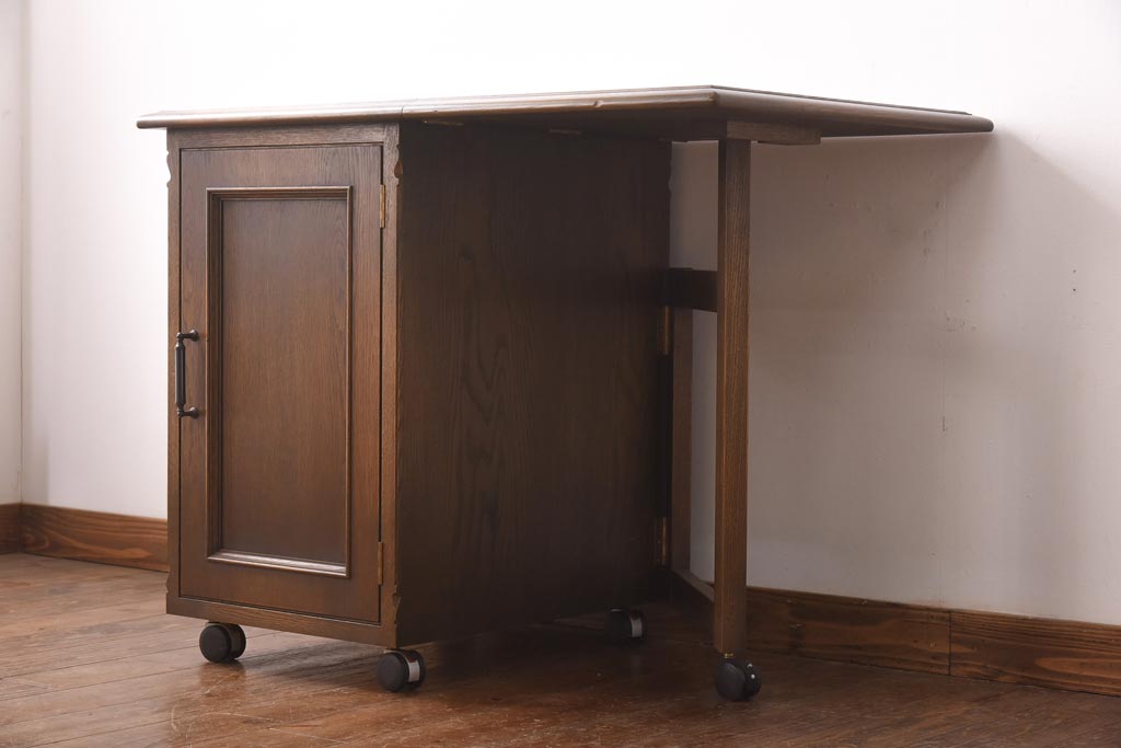 中古 神戸家具 永田良介商店 天板本革貼り 大人の高級感漂う袖机(バタフライテーブル)(定価28万円)