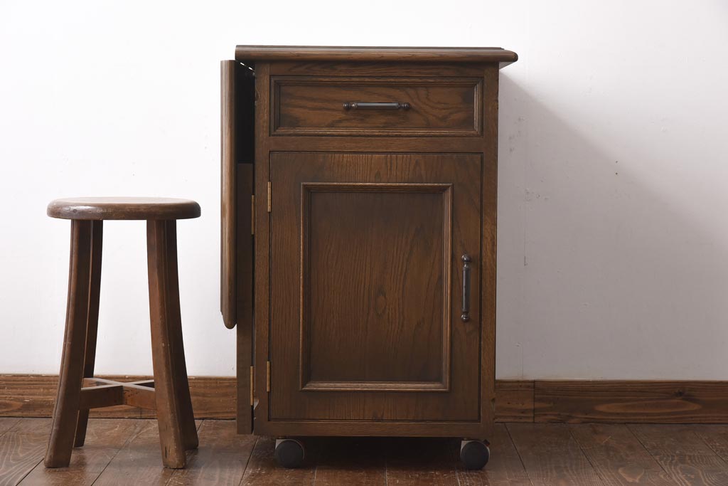 中古 神戸家具 永田良介商店 天板本革貼り 大人の高級感漂う袖机(バタフライテーブル)(定価28万円)です。